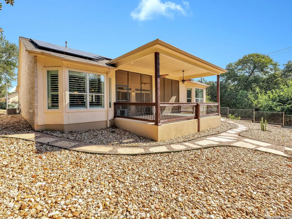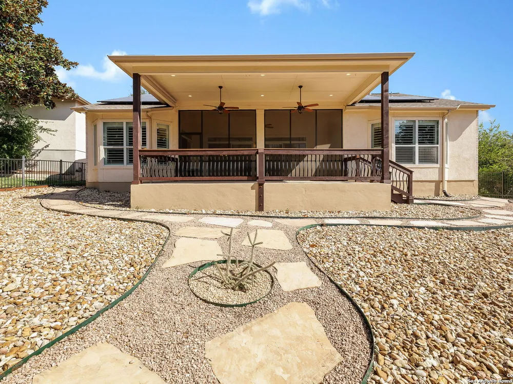 OPEN HOUSE SATURDAY OCTOBER 18, 1-3 PM. Fabulous home on secluded greenbelt lot with xeriscape for low maintenance. Open plan with soaring ceilings and 8' doors. Beautiful oak and tile flooring throughout, no carpet here! Plantation shutters add a touch of elegance. Large chef's kitchen with island and built in stainless appliances. Spacious master suite overlooks greenbelt and features trey ceiling and wonderful walk in shower. Paid in full solar panels provide utility $avings! The back yard features a huge screened in patio with even larger extended patio surrounded by nature. The community Resort Center features ballroom, library, state of the art gym, indoor pool, 2 outdoor pools, spa, Pickle Ball, Tennis, and much much more. What are you waiting for? Pack your bags and get ready to enjoy the good life!