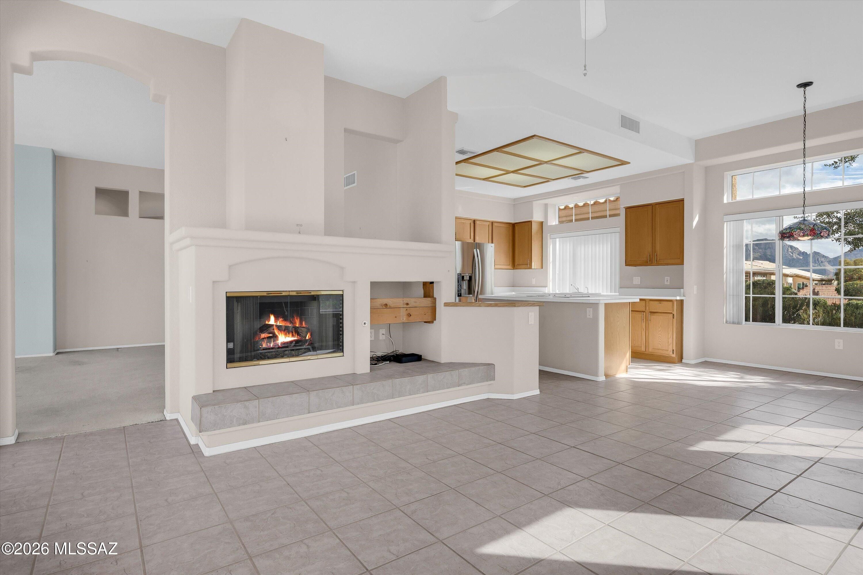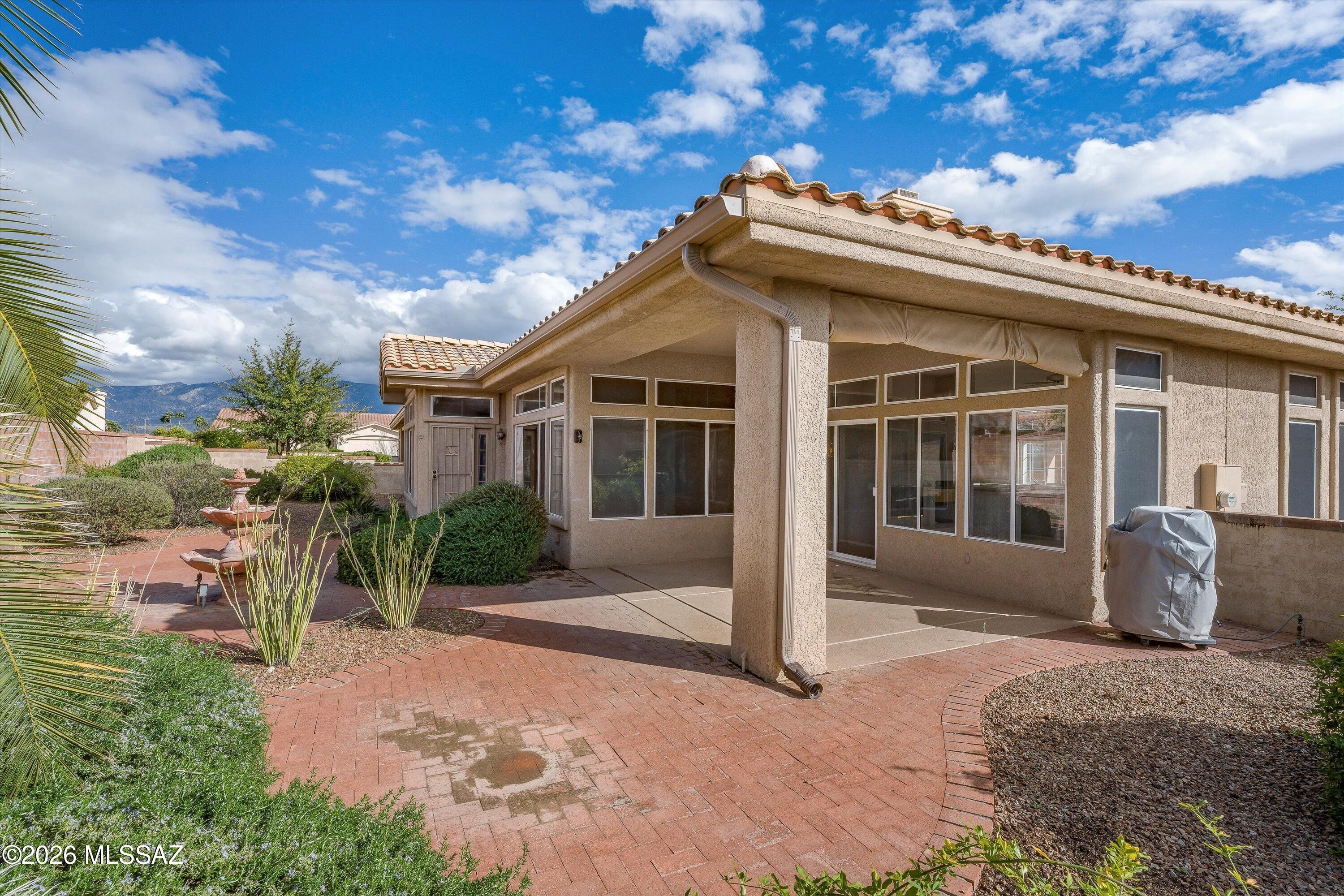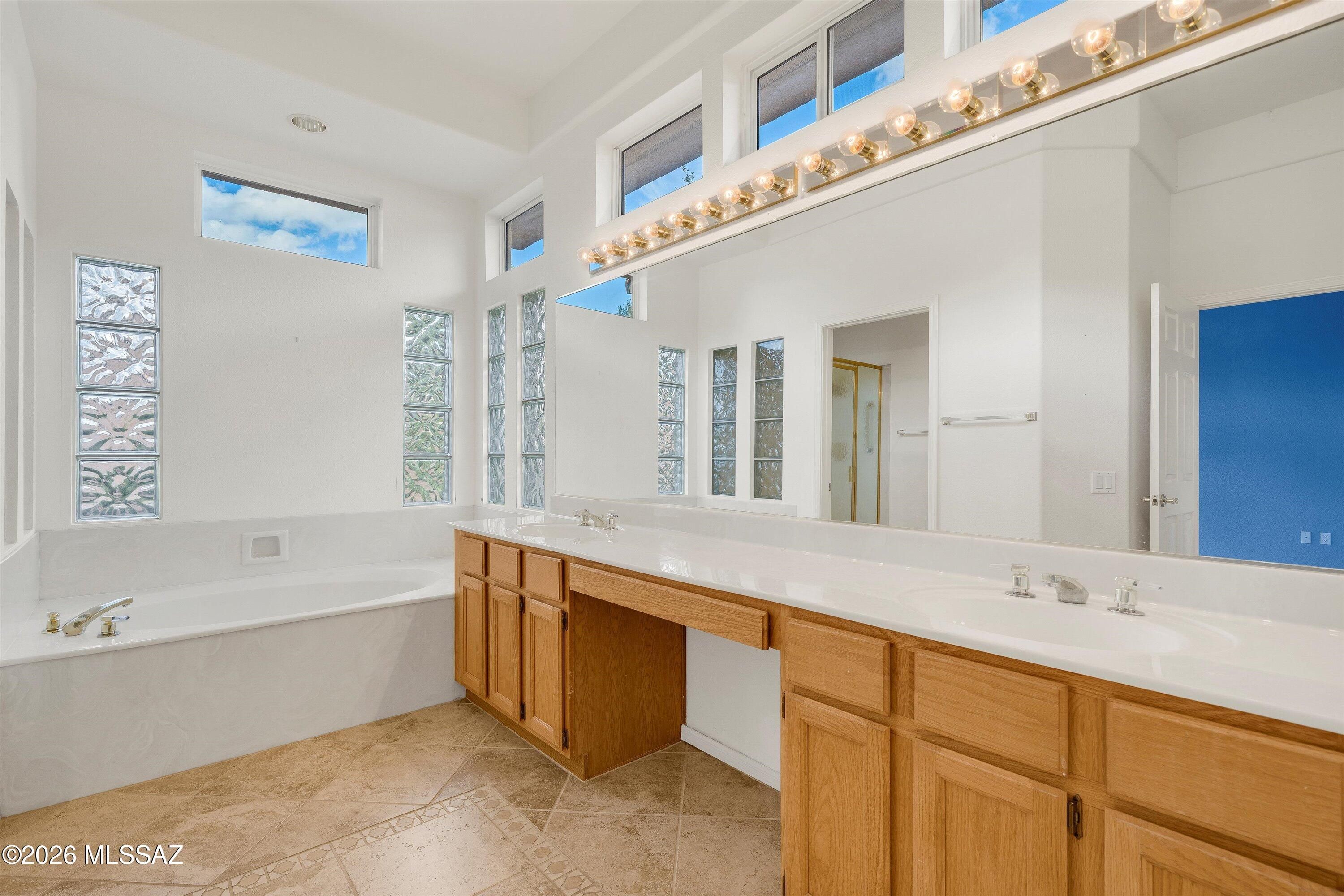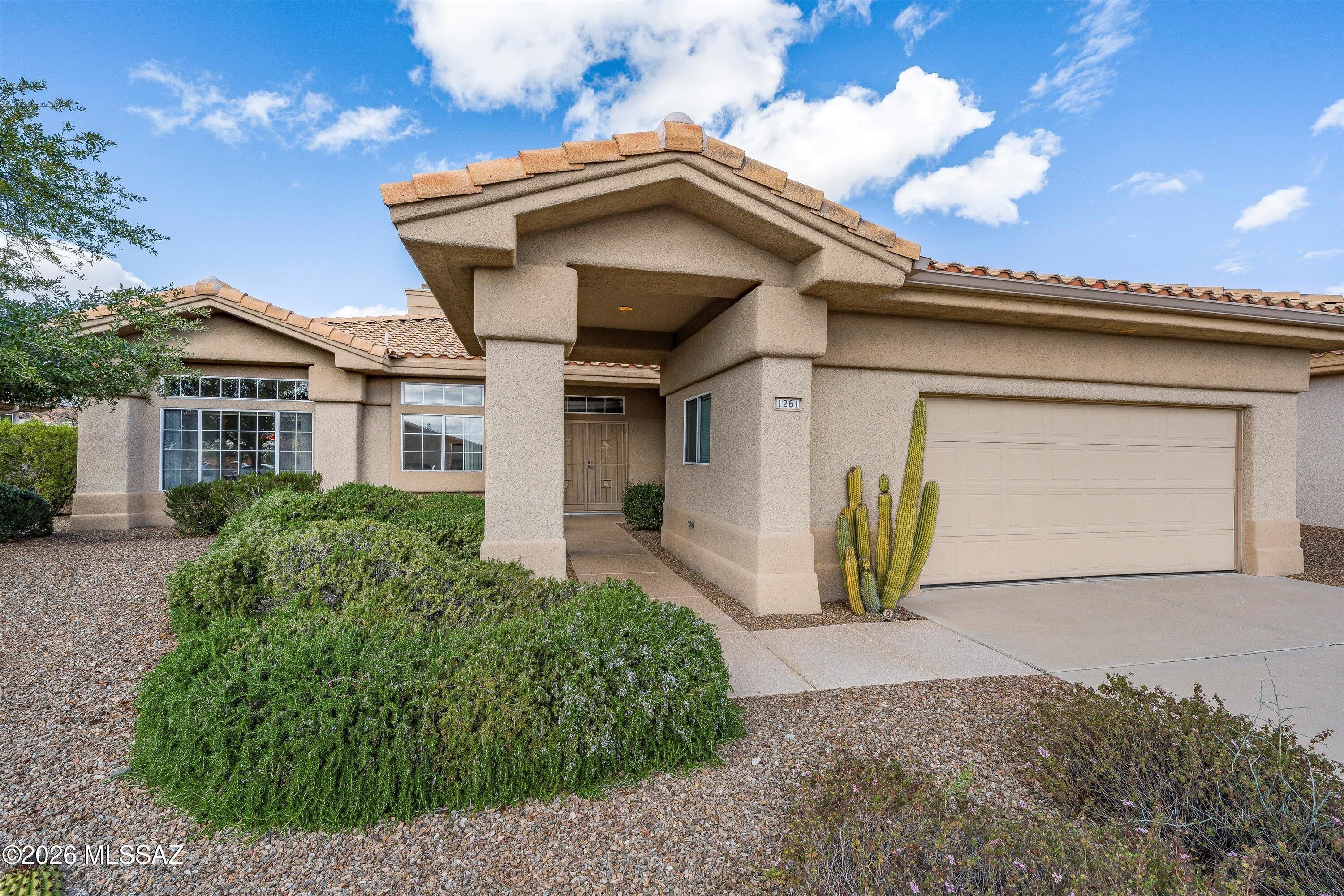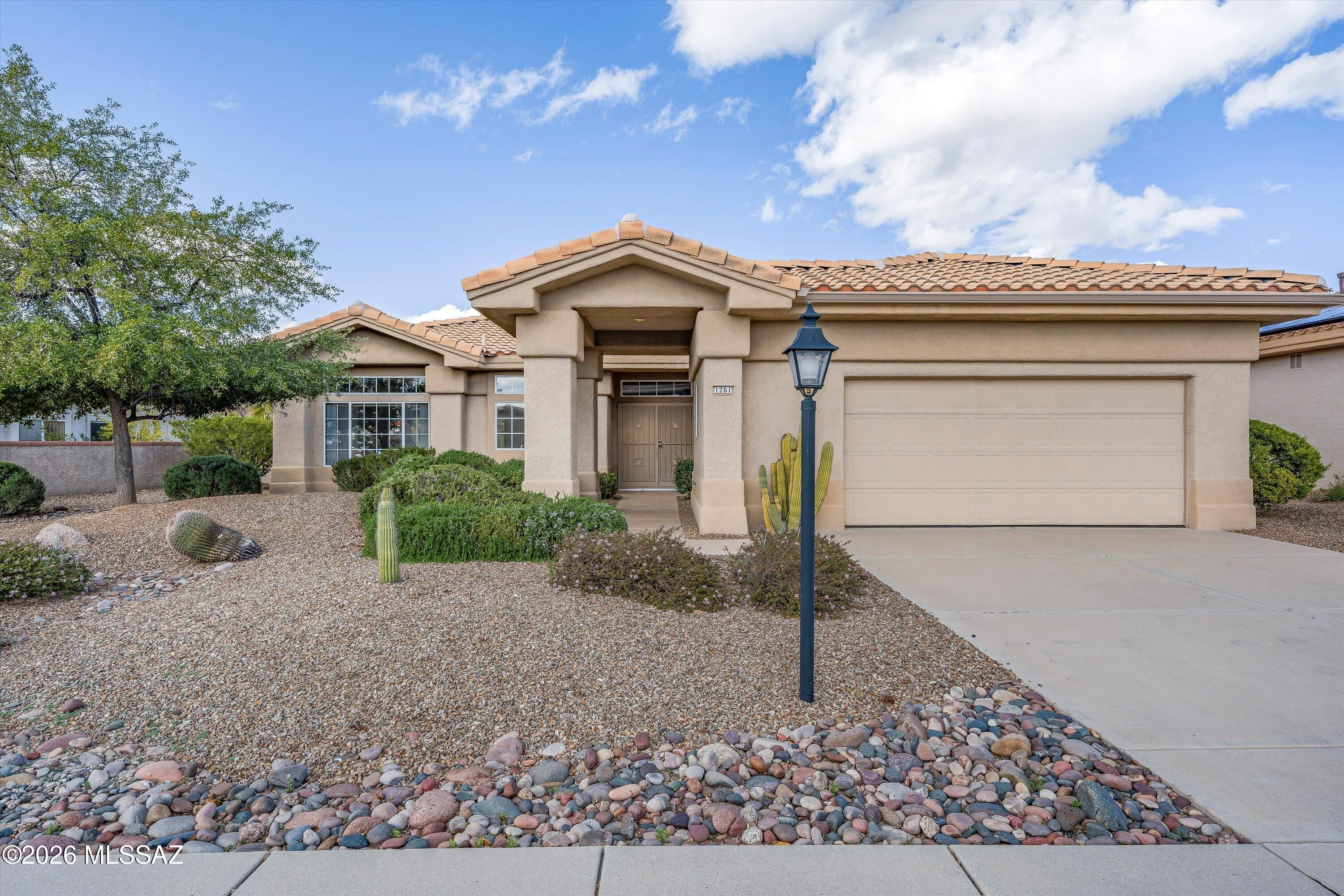 Located in the highly desirable Sun City Rancho Vistoso active adult community, this beautiful home will be hitting the market in late February. Residents enjoy a championship golf course, resort-style clubhouse, fitness center, walking trails, and a full calendar of social activities that define Arizona resort living. Inside, tall 10-foot ceilings enhance the open floor plan with a spacious kitchen featuring an island, stainless steel appliances, and 42-inch cabinets with roll-out shelving. The home offers both a formal living area and a family room with gas fireplace. The large primary suite includes a private door to the backyard and a spa-style bathroom with dual sinks, separate garden tub, and walk-in shower with seat. The private backyard offers a covered patio and extensive pavers