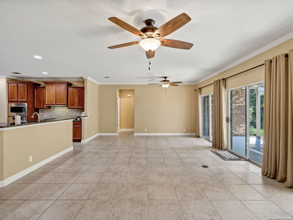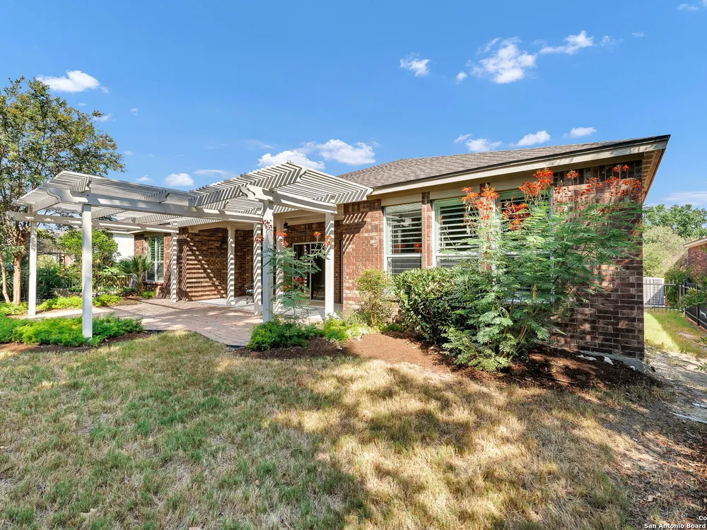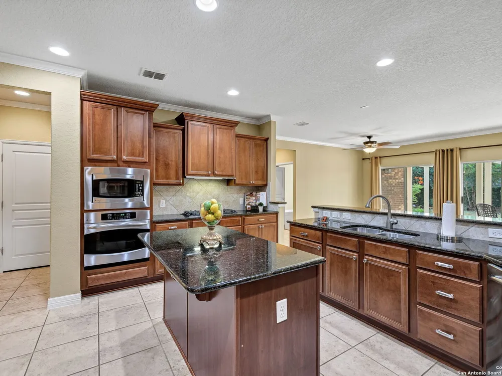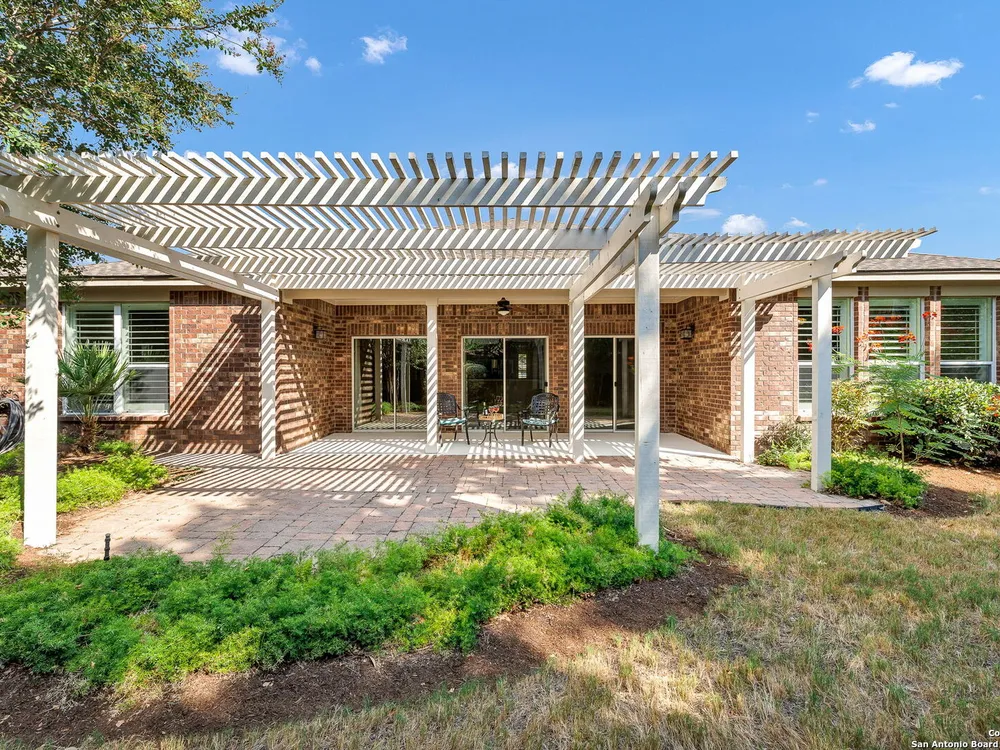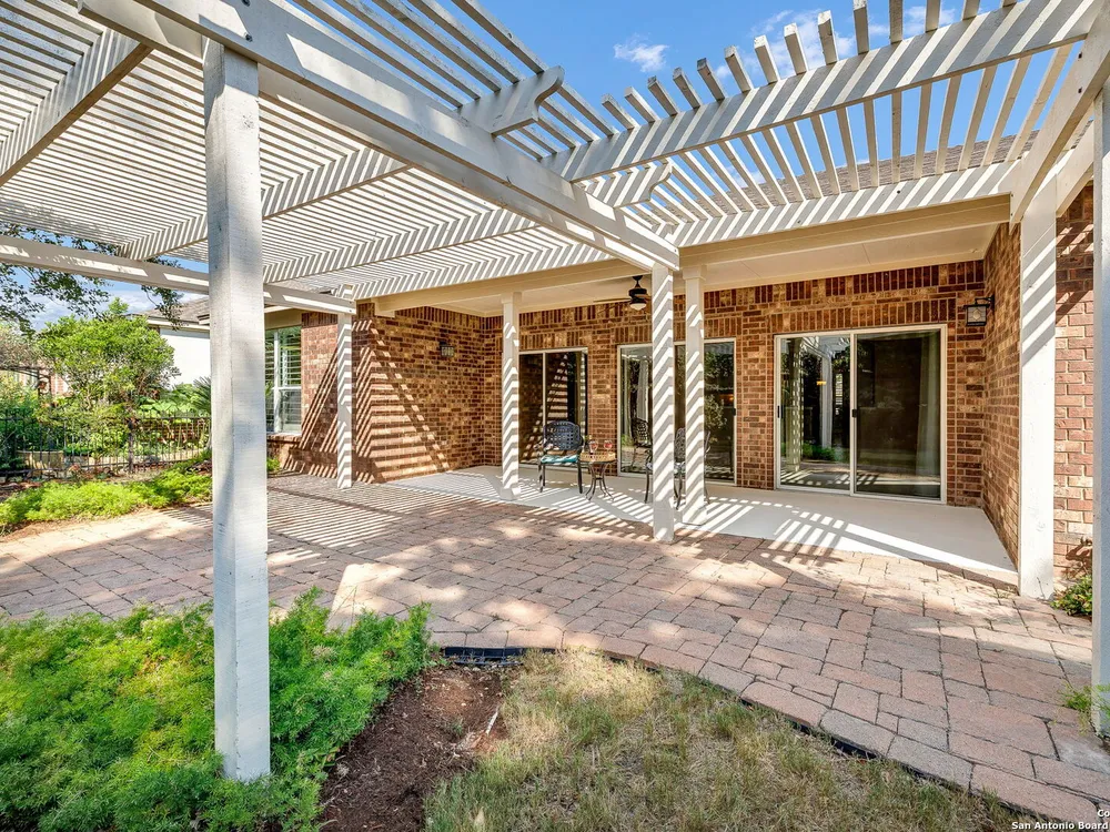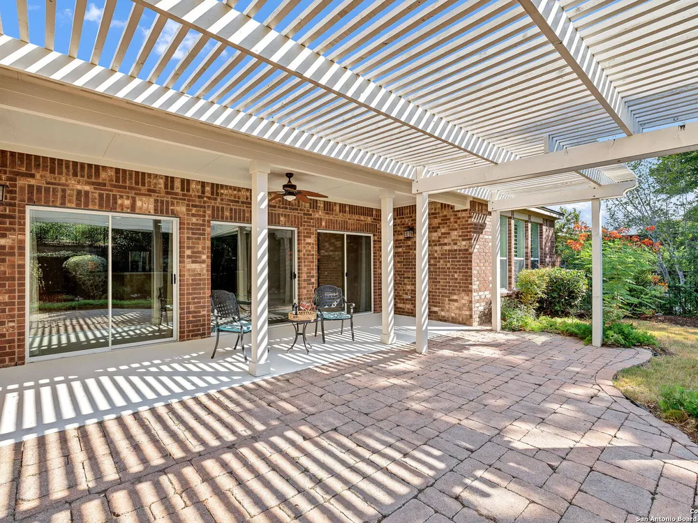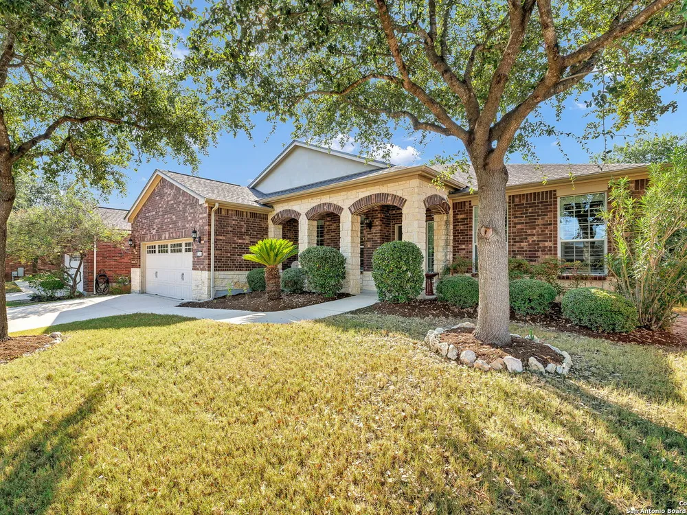 OPEN HOUSE SUNDAY OCTOBER 12, 1-3 PM. IMPECCABLY MAINTAINED HOME IN PRESTIGIOUS DEL WEBB 55+ PREMIER ADULT COMMUNITY. THIS 2678 SQ/FT HOME BOASTS 3 BEDROOMS EACH WITH ITS OWN ON-SUITE BATH; AND ADDITIONAL 1/2 BATH. ELEGANT LARGE TILE FLOORS IN LIVING AREAS, LAMINATE IN BEDROOMS AND DEN, NO CARPET HERE! ELEGANT PLANTATION SHUTTERS THROUGHOUT. SPACIOUS CHEF'S DELIGHT KITCHEN WITH CENTER ISLAND, GRANITE COUNTERS AND AN AMAZING WALK IN PANTRY. NESTLED ON SPRAWLING PRIVATE LOT ON PEACEFUL STREET. OVERSIZED GARAGE, MOVE-IN READY! ROOF AND HVAC REPLACED IN 2021. THE COMMUNITY RESORT CENTER FEATURES BALLROOM, MEETING ROOMS, LIBRARY, STATE OF THE ART GYM, INDOOR POOL AND SPA, 2 OUTDOOR POOLS, PICKLE BALL AND MUCH MORE! IT'S TIME TO PACK YOUR BAGS AND GET READY TO ENJOY THE GOOD LIFE AT DEL WEBB SAN ANTONIO HILL COUNTRY RETREAT!
