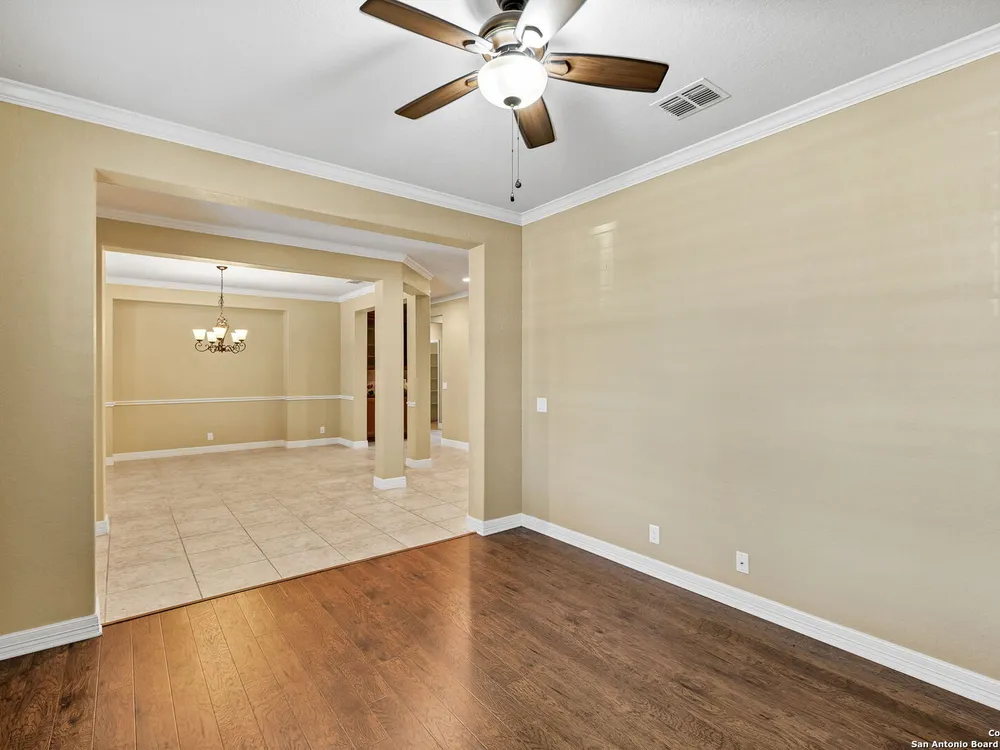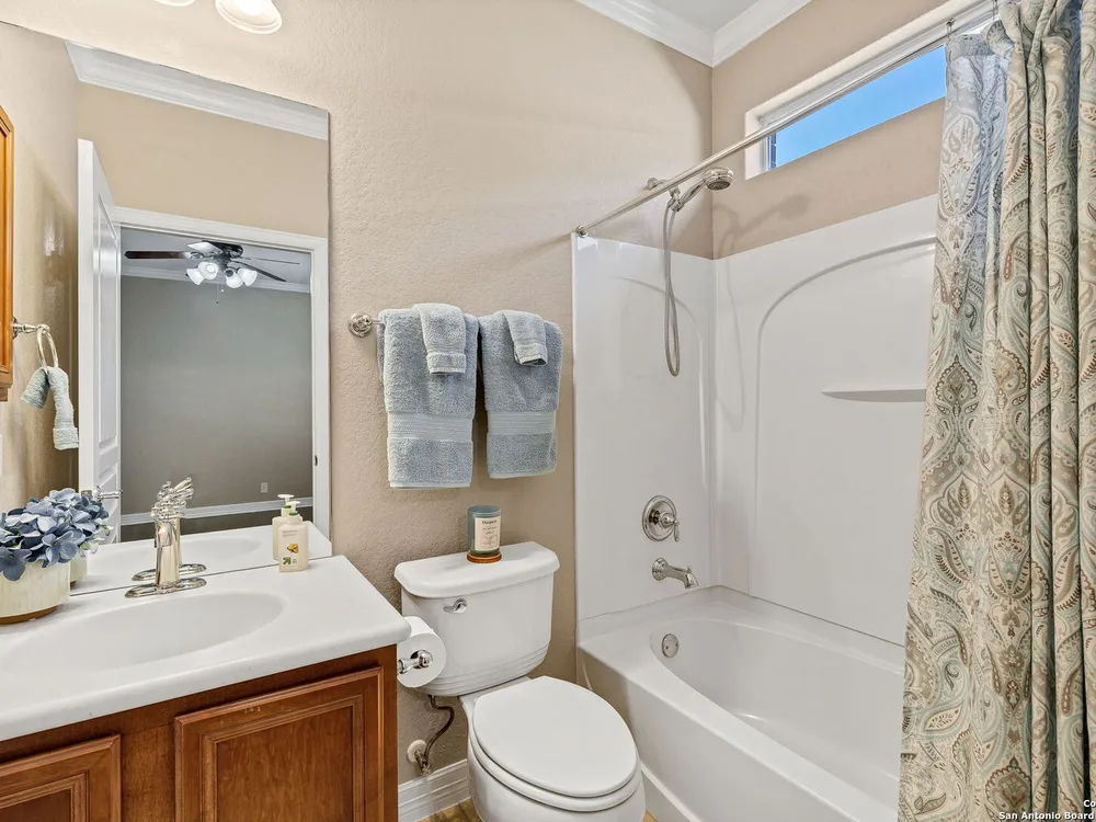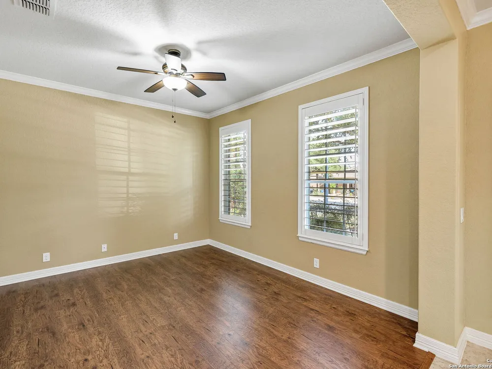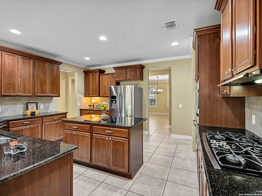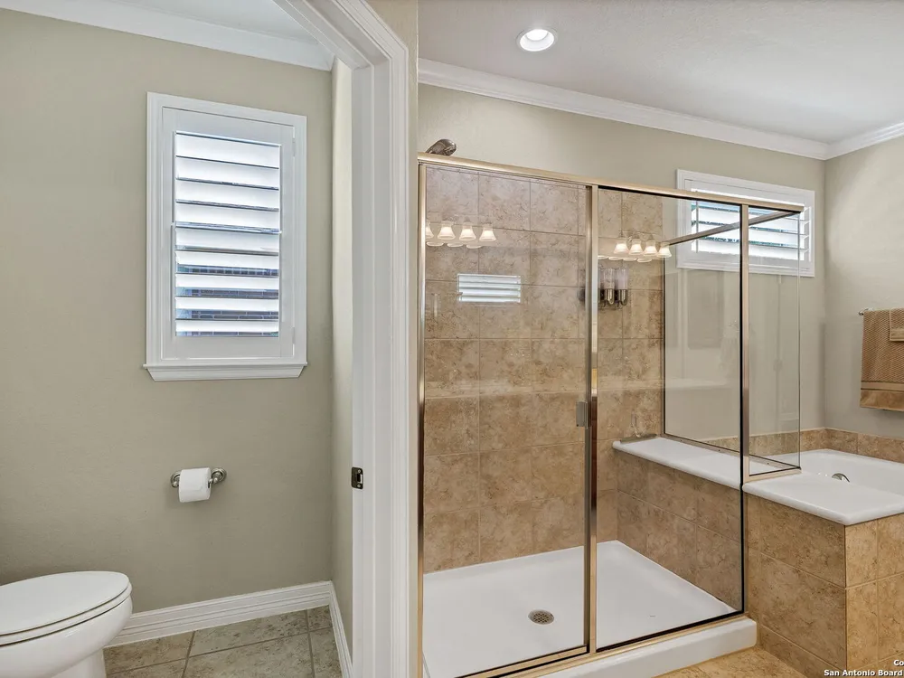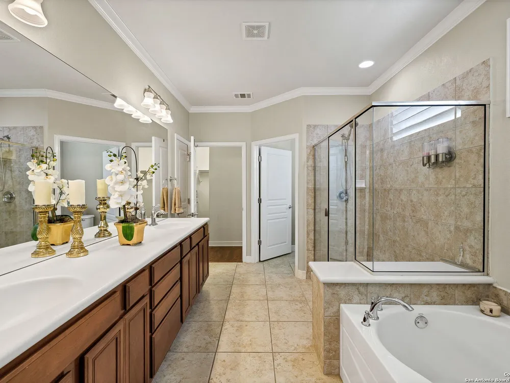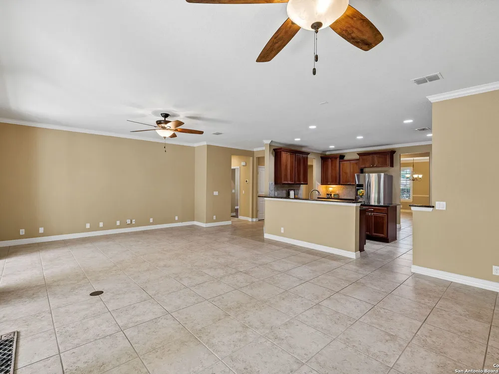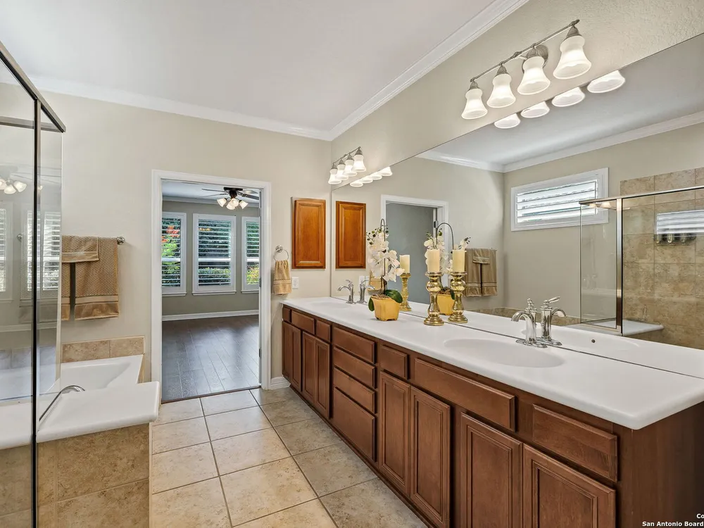 OPEN HOUSE SUNDAY OCTOBER 12, 1-3 PM. IMPECCABLY MAINTAINED HOME IN PRESTIGIOUS DEL WEBB 55+ PREMIER ADULT COMMUNITY. THIS 2678 SQ/FT HOME BOASTS 3 BEDROOMS EACH WITH ITS OWN ON-SUITE BATH; AND ADDITIONAL 1/2 BATH. ELEGANT LARGE TILE FLOORS IN LIVING AREAS, LAMINATE IN BEDROOMS AND DEN, NO CARPET HERE! ELEGANT PLANTATION SHUTTERS THROUGHOUT. SPACIOUS CHEF'S DELIGHT KITCHEN WITH CENTER ISLAND, GRANITE COUNTERS AND AN AMAZING WALK IN PANTRY. NESTLED ON SPRAWLING PRIVATE LOT ON PEACEFUL STREET. OVERSIZED GARAGE, MOVE-IN READY! ROOF AND HVAC REPLACED IN 2021. THE COMMUNITY RESORT CENTER FEATURES BALLROOM, MEETING ROOMS, LIBRARY, STATE OF THE ART GYM, INDOOR POOL AND SPA, 2 OUTDOOR POOLS, PICKLE BALL AND MUCH MORE! IT'S TIME TO PACK YOUR BAGS AND GET READY TO ENJOY THE GOOD LIFE AT DEL WEBB SAN ANTONIO HILL COUNTRY RETREAT!