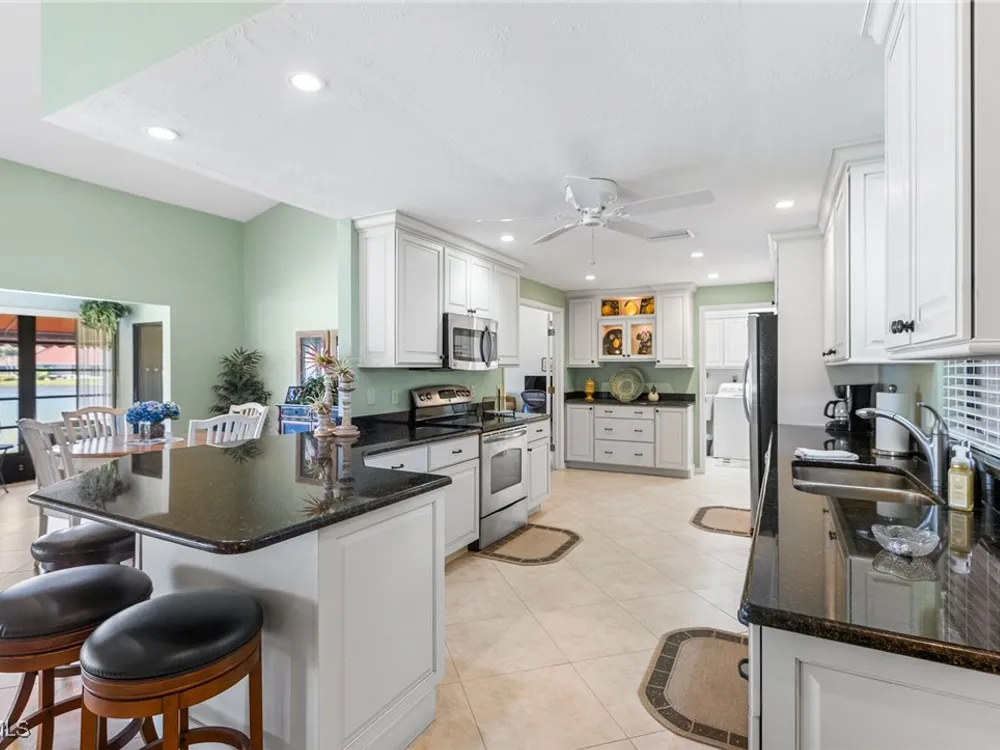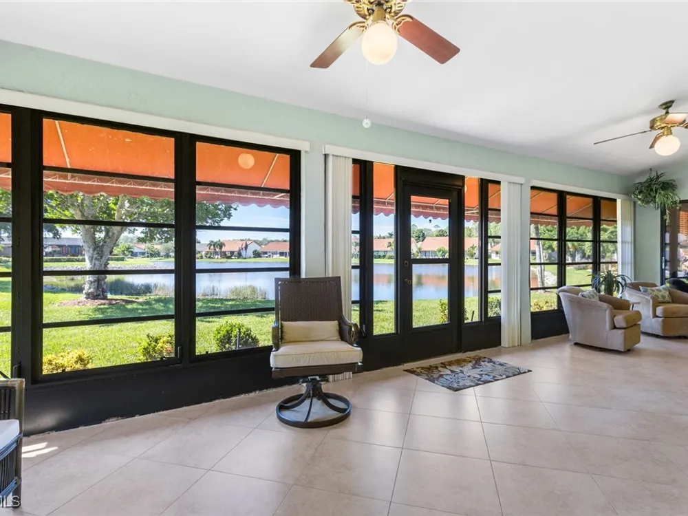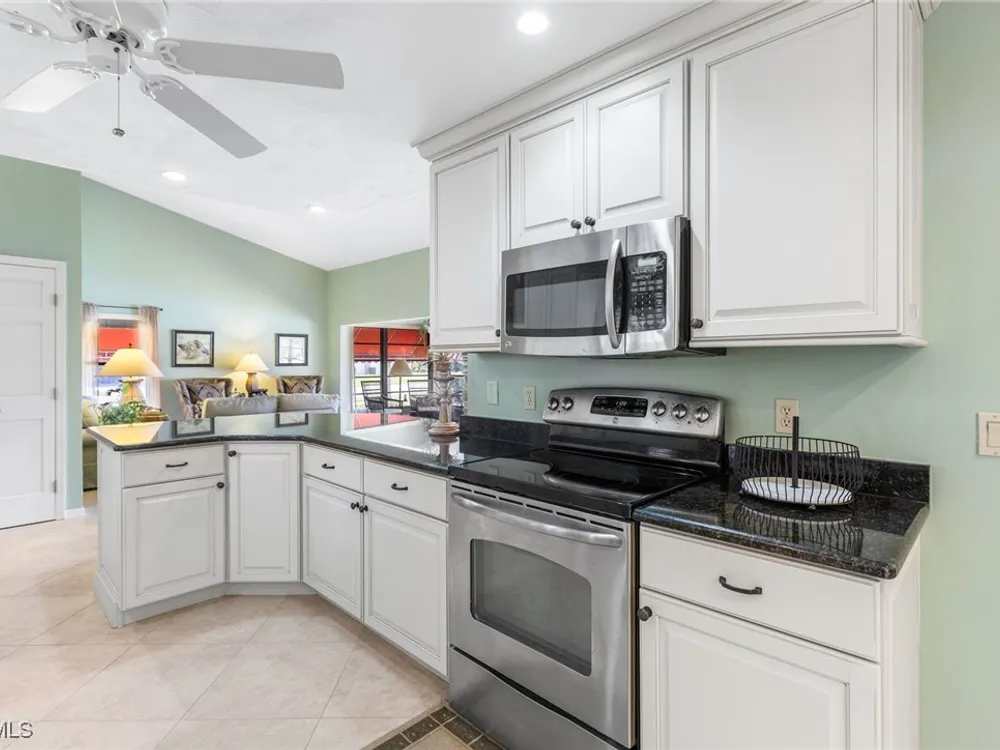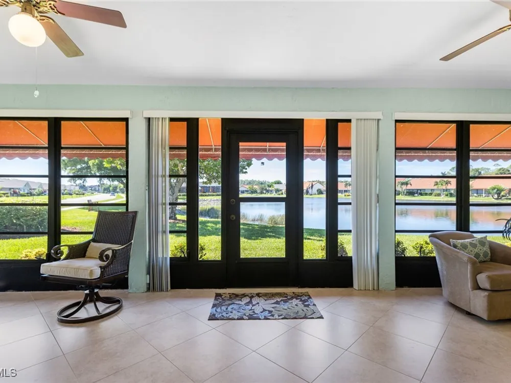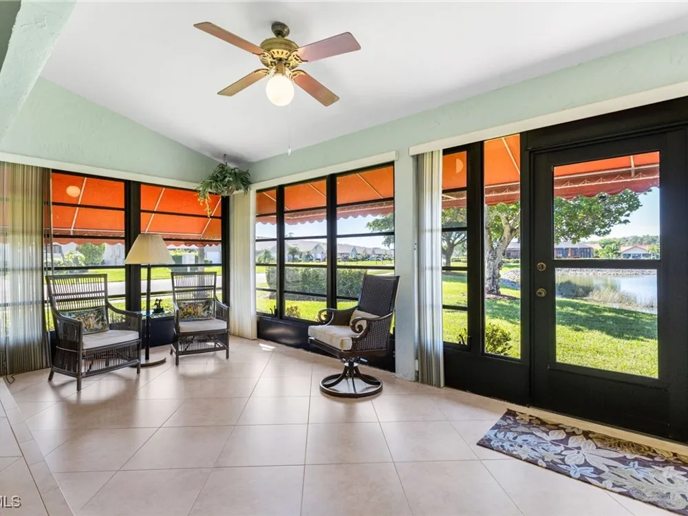 YOU DO NOT WANT TO MISS THIS!! Gorgeously UPDATED, this "condo-home" sits perfectly on a QUIET CORNER LOT, with incredible LAKE VIEWS and S/SW Exposure. Offering 2 bedrooms, a MASSIVE DEN/ FLEX SPACE, 2.5 bathrooms, and a 2-CAR GARAGE, it is the perfect space for anyone looking for a SPACIOUS AND COZY RETREAT. Inside, you'll find a chef's dream with BLACK GRANITE counters, STAINLESS-STEEL appliances, antique white SOFT-CLOSE CABINETS, and a LIGHTED BUFFET. The kitchen has been OPENED UP AND UPDATED, making entertaining friends and family a breeze. The neutral tile throughout the main living areas and the plush neutral carpet in the bedrooms and den create a modern and stylish space you're sure to love. Enjoy incredible lake views from your ENCLOSED LANAI, providing a peaceful and picturesque backdrop to your daily life, while the UPDATED BATHS add a touch of luxury. The community CABANA & POOL are just steps away, providing a convenient and refreshing way to cool off on hot summer days. The BUNDLED GOLF community of Cross Creek Country Club is pet-friendly, active, and offers tons of amenities, like a main pool and spa, restaurant/bar, tennis, pickleball, & bocce. So many inclusions (cable/internet, lawn care, irrigation water, exterior/roof insurance, and more), the amenities, low taxes, upgrades, and prime location make this home a rated "BEST VALUE BUY." It is ideally located on the Daniel's Corridor where you'll find ample shopping, dining, and entertainment, between the Twins' and Red Sox's training stadiums, and a short drive from RSW International Airport and SWFL's finest beaches. Don't miss out on this - schedule a showing today and make this house your new home!