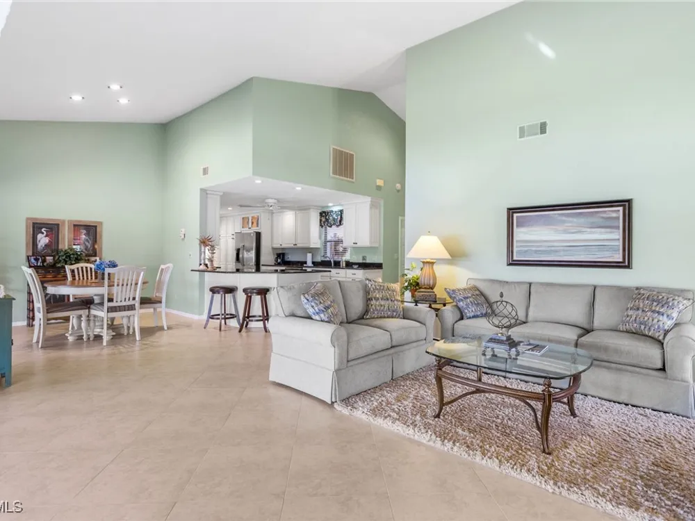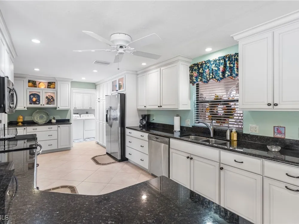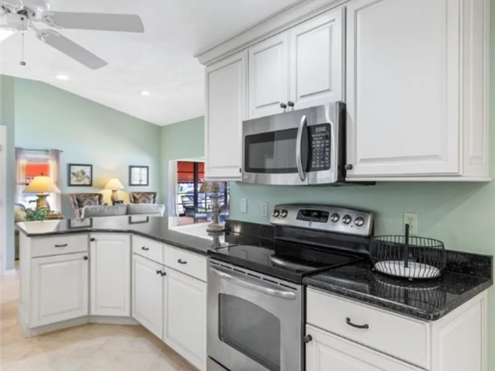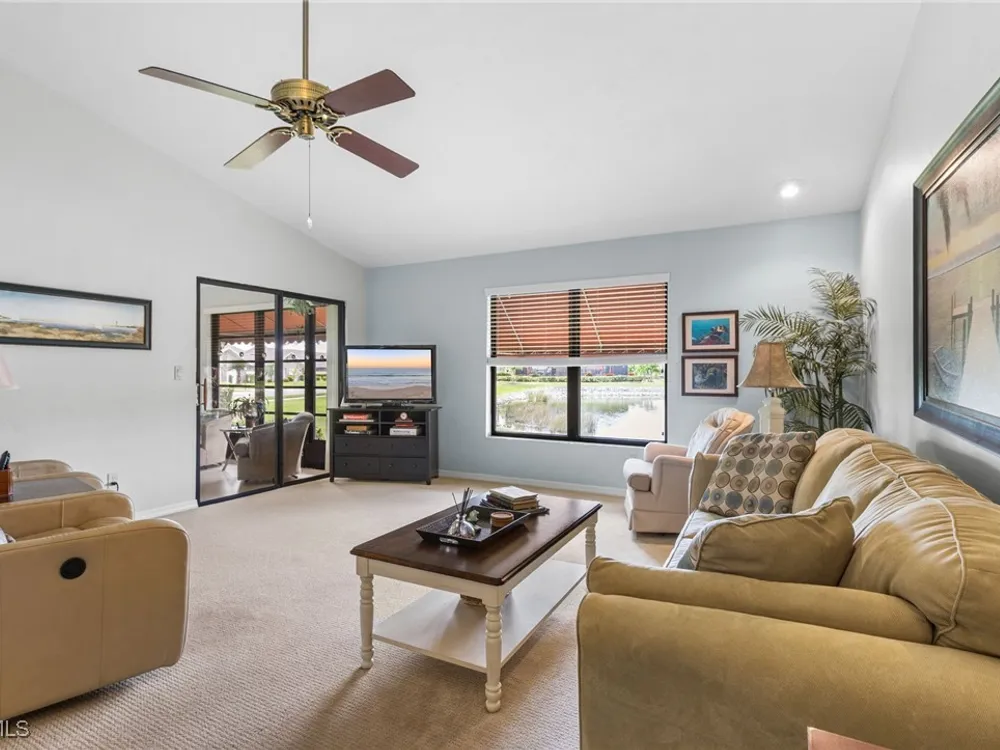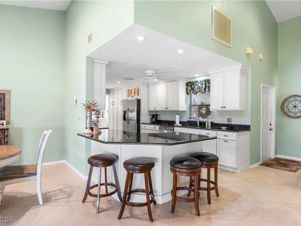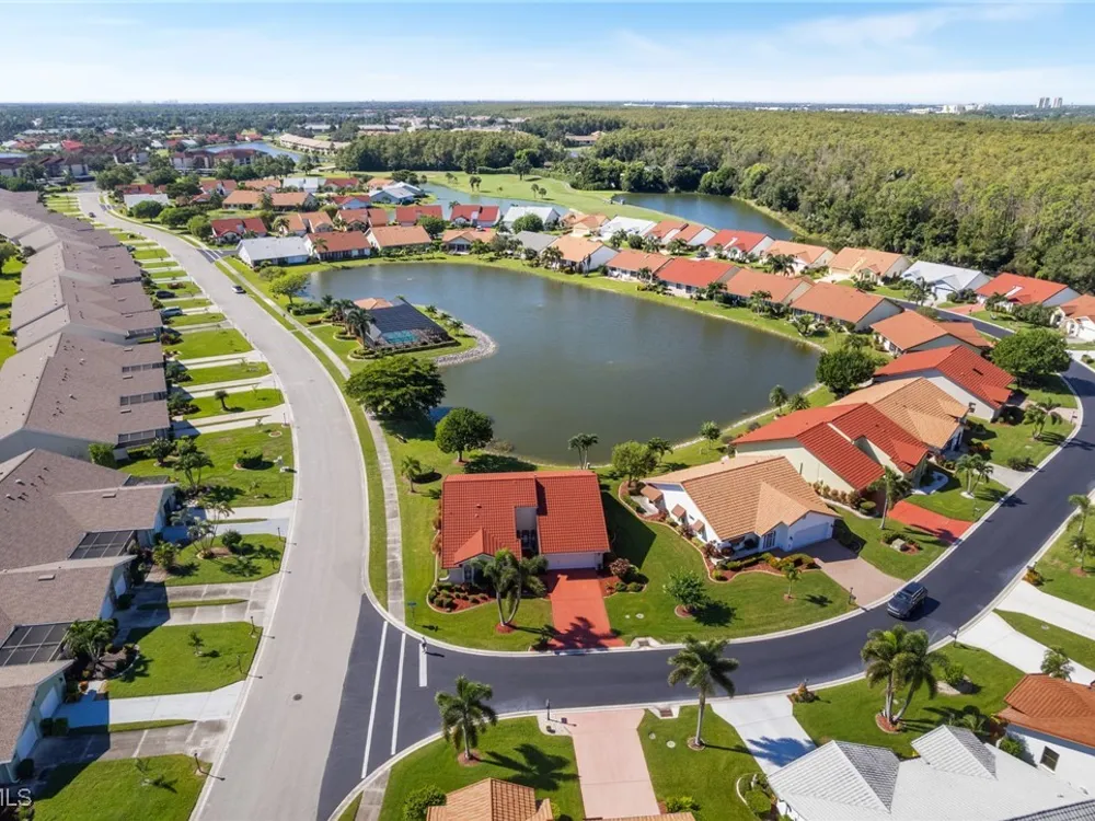 YOU DO NOT WANT TO MISS THIS!! Gorgeously UPDATED, this "condo-home" sits perfectly on a QUIET CORNER LOT, with incredible LAKE VIEWS and S/SW Exposure. Offering 2 bedrooms, a MASSIVE DEN/ FLEX SPACE, 2.5 bathrooms, and a 2-CAR GARAGE, it is the perfect space for anyone looking for a SPACIOUS AND COZY RETREAT. Inside, you'll find a chef's dream with BLACK GRANITE counters, STAINLESS-STEEL appliances, antique white SOFT-CLOSE CABINETS, and a LIGHTED BUFFET. The kitchen has been OPENED UP AND UPDATED, making entertaining friends and family a breeze. The neutral tile throughout the main living areas and the plush neutral carpet in the bedrooms and den create a modern and stylish space you're sure to love. Enjoy incredible lake views from your ENCLOSED LANAI, providing a peaceful and picturesque backdrop to your daily life, while the UPDATED BATHS add a touch of luxury. The community CABANA & POOL are just steps away, providing a convenient and refreshing way to cool off on hot summer days. The BUNDLED GOLF community of Cross Creek Country Club is pet-friendly, active, and offers tons of amenities, like a main pool and spa, restaurant/bar, tennis, pickleball, & bocce. So many inclusions (cable/internet, lawn care, irrigation water, exterior/roof insurance, and more), the amenities, low taxes, upgrades, and prime location make this home a rated "BEST VALUE BUY." It is ideally located on the Daniel's Corridor where you'll find ample shopping, dining, and entertainment, between the Twins' and Red Sox's training stadiums, and a short drive from RSW International Airport and SWFL's finest beaches. Don't miss out on this - schedule a showing today and make this house your new home!