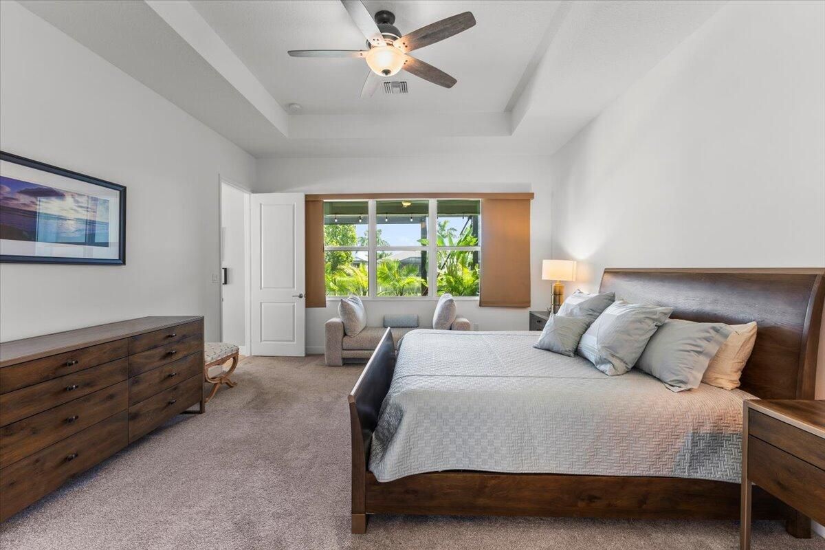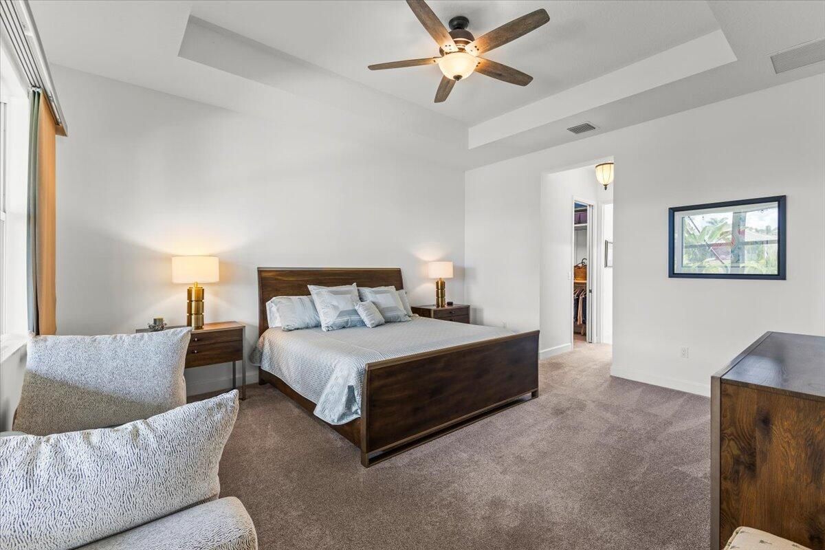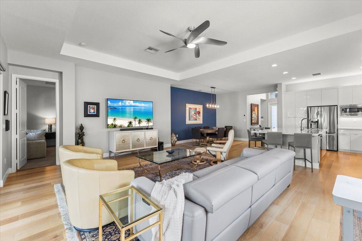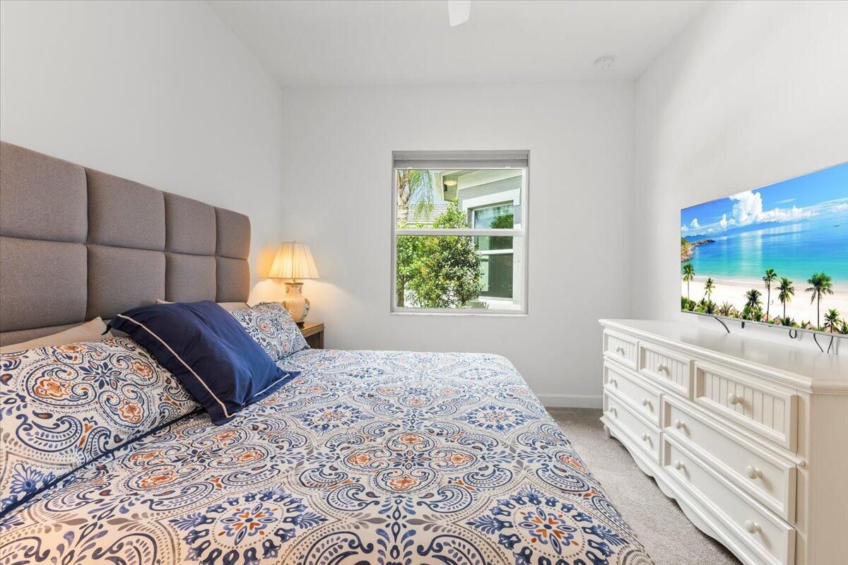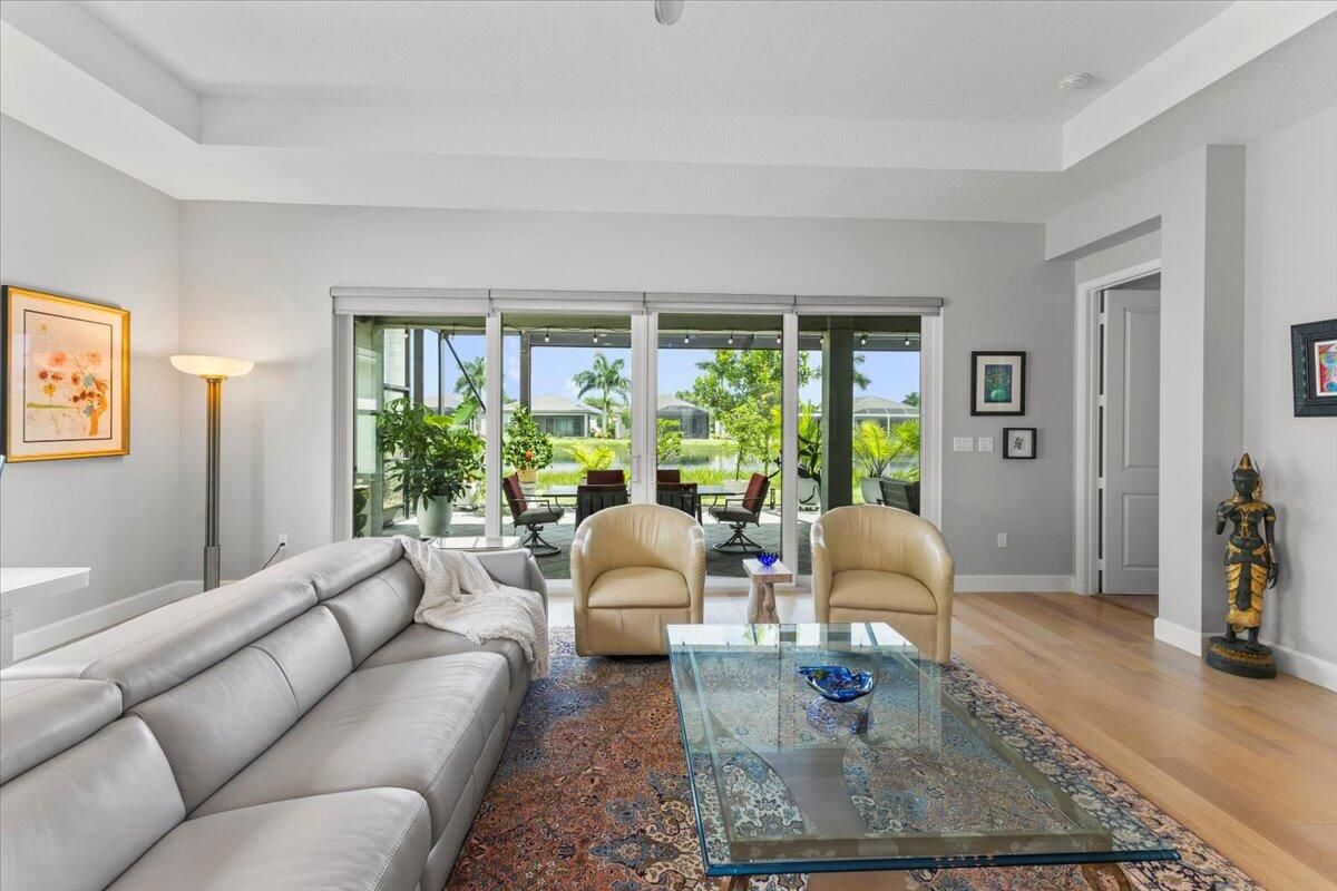 Welcome to this elegant 3 bedroom, 3 bath residence nestled in one of the areas most desirable active adult community of Valencia Sound. Thoughtfully designed for comfort, convenience and style, this home offers a perfect blend of sophistication and low maintenance living. Step inside to find an open concept layout with volume ceilings, sun filled living spaces and high end finishes. The gourmet kitchen features upgraded cabinets, counter tops and stainless steel appliance. The oversize kitchen island is ideal for entertaining or creating a cooking masterpiece. The ensuite guest area is ideal for short stay or long stay guests. Enjoy year round relaxation in the expanded outdoor living space complete with picture screen viewing screen enclosure.