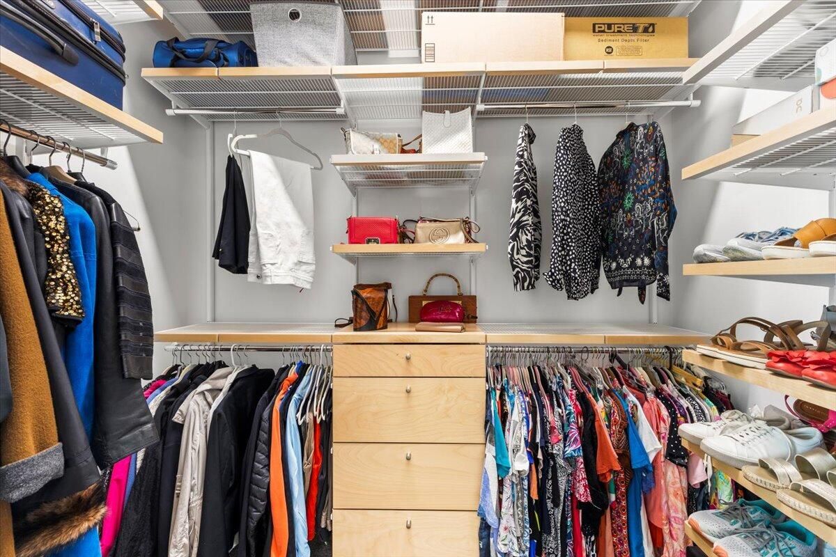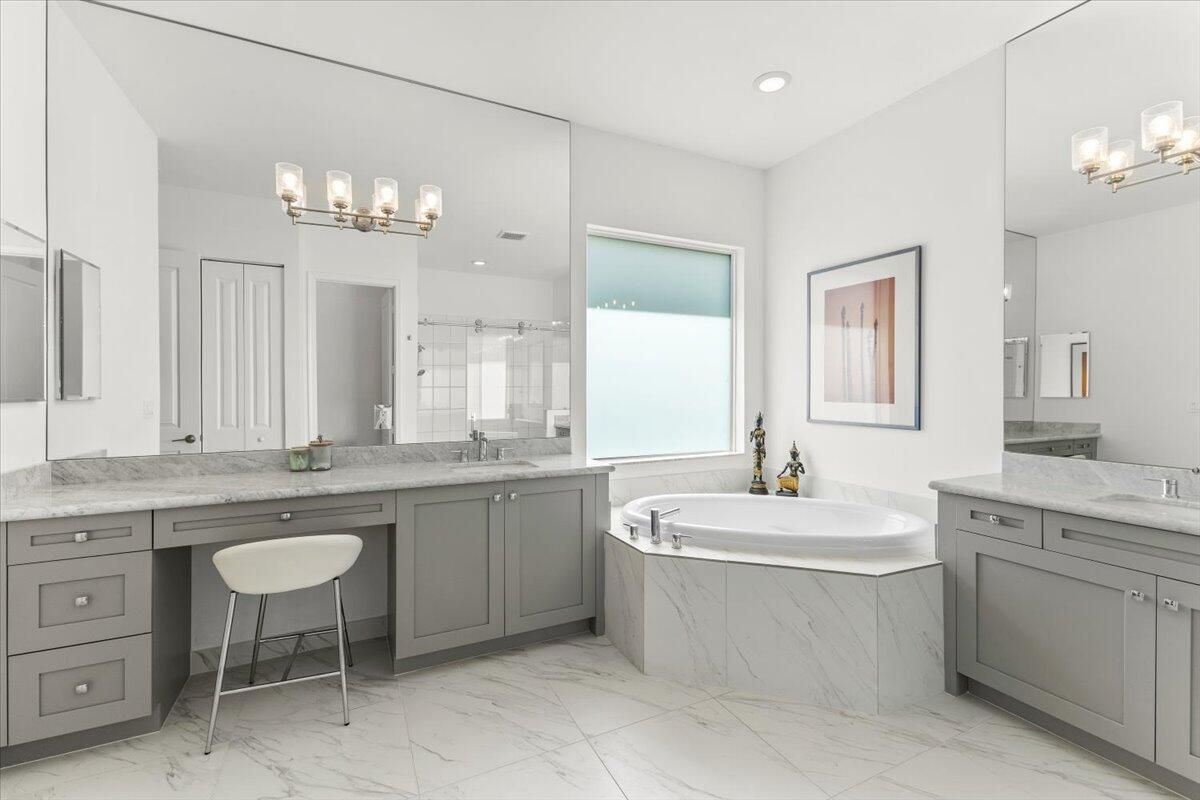 - Built-in Shelving, Entry Level Living Area, Kitchen Island, Pantry, Garden Tub/Roman Tub, Split Bedrooms, High Ceilings, Walk-In Closet(s), Home Office, Great Room, Separate/Formal Dining Room, Snack Bar, Impact Glass, Dual Sinks, Primary Downstairs, Separate Shower, Bathtub