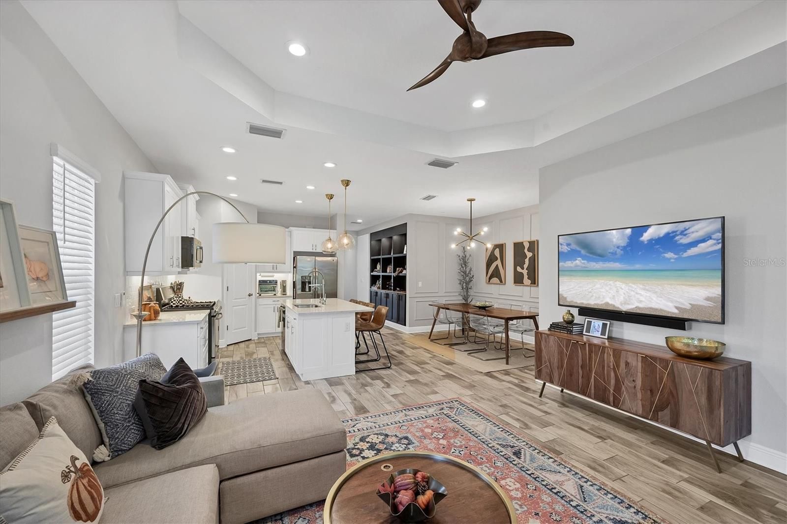 - Built-in Features, Ceiling Fan(s), Eat-in Kitchen, High Ceilings, Open Floorplan, Smart Home, Solid-Wood Cabinets, Stone Counters, Thermostat, Tray Ceiling(s), Walk-In Closet(s), Window Treatments