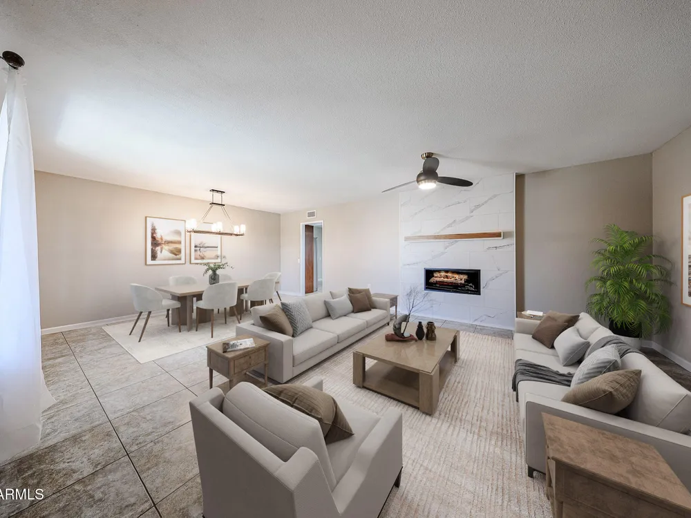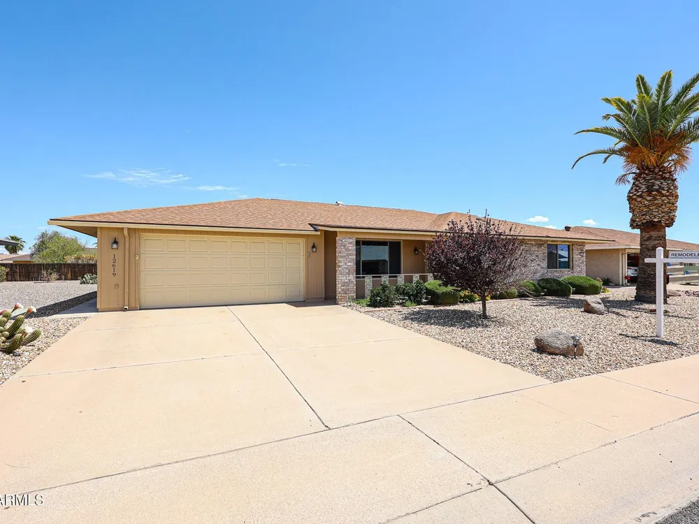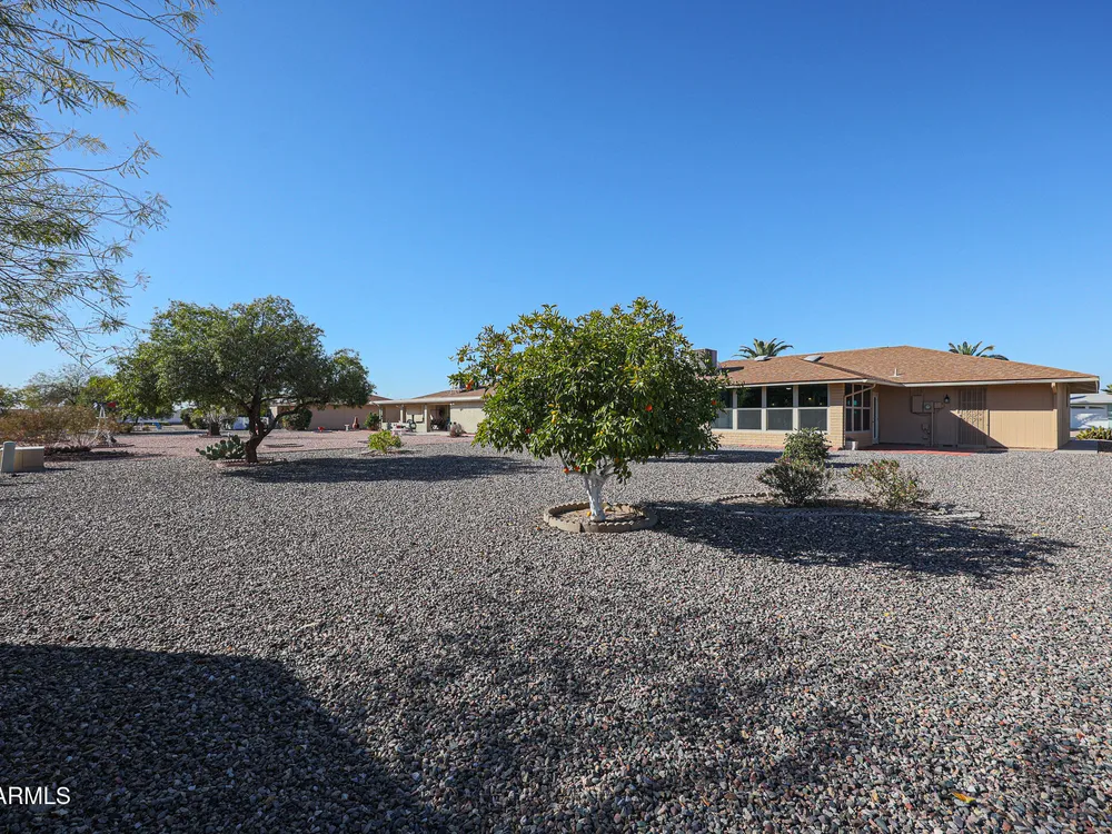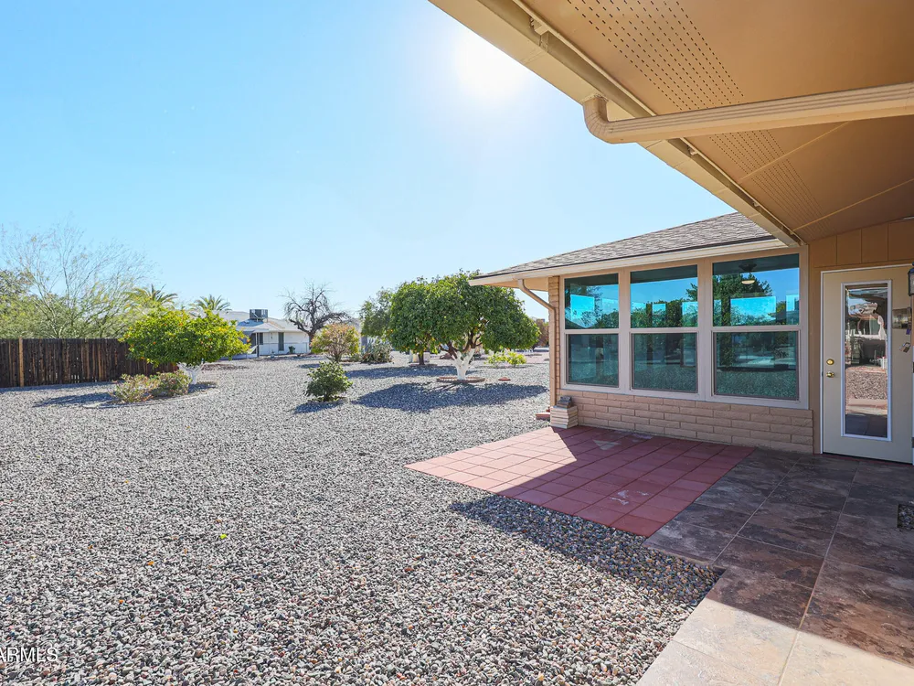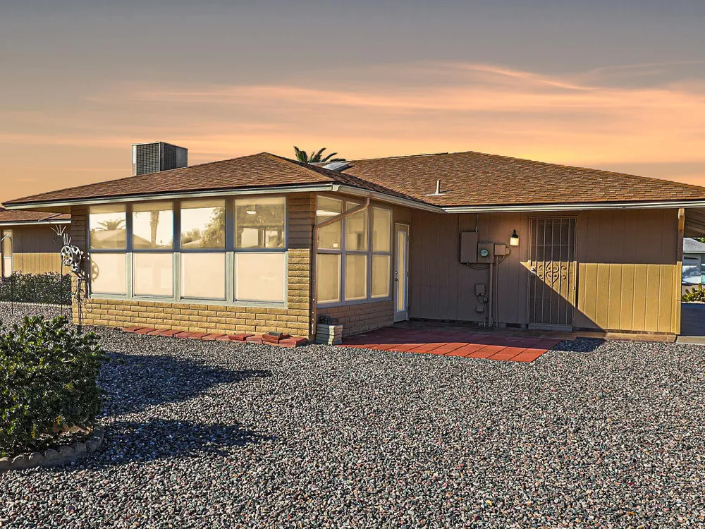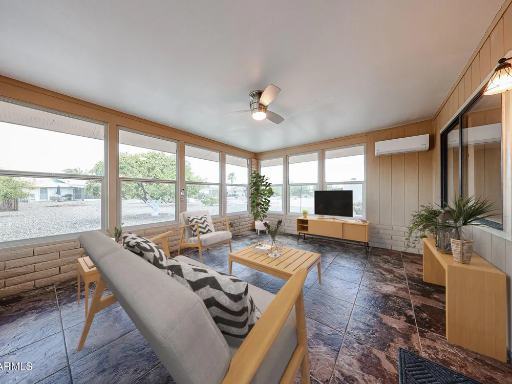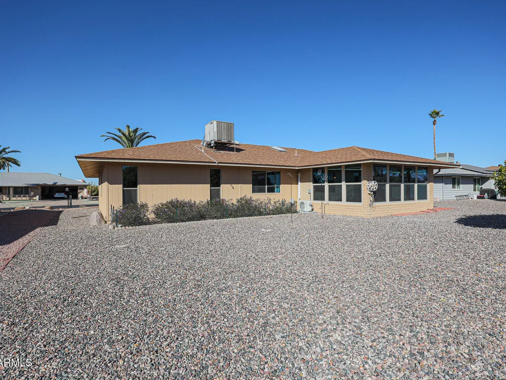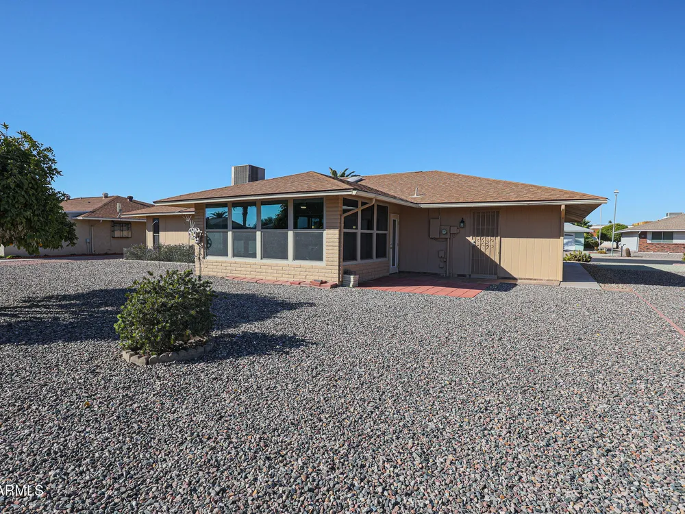 This beautifully updated expanded Annapolis plan offers 2 beds, 2 baths. In the past 4 years home has been updated including new roof, kitchen cabinets, quartz counters, double oven range & frig in 2022, both baths updated with tile showers & comfort height toilets, electric fireplace in living room, dual pane vinyl windows & all popcorn removed. SPECIAL BONUS is the FULLY ENCLOSED AZ Room which adds approx. 220 sq. ft. of additional space temperature controlled by mini split system for year around comfort. Great entertaining home with formal living & dining plus large family room inside laundry & office space with additional storage. Close to everything Sun City has to offer including 8 golf courses, 8 recreation centers, entertainment venues, healthcare & more. Welcome Home!
