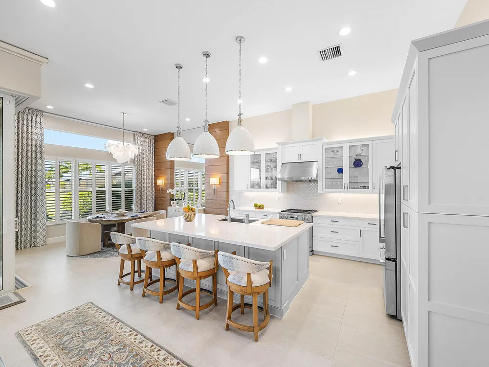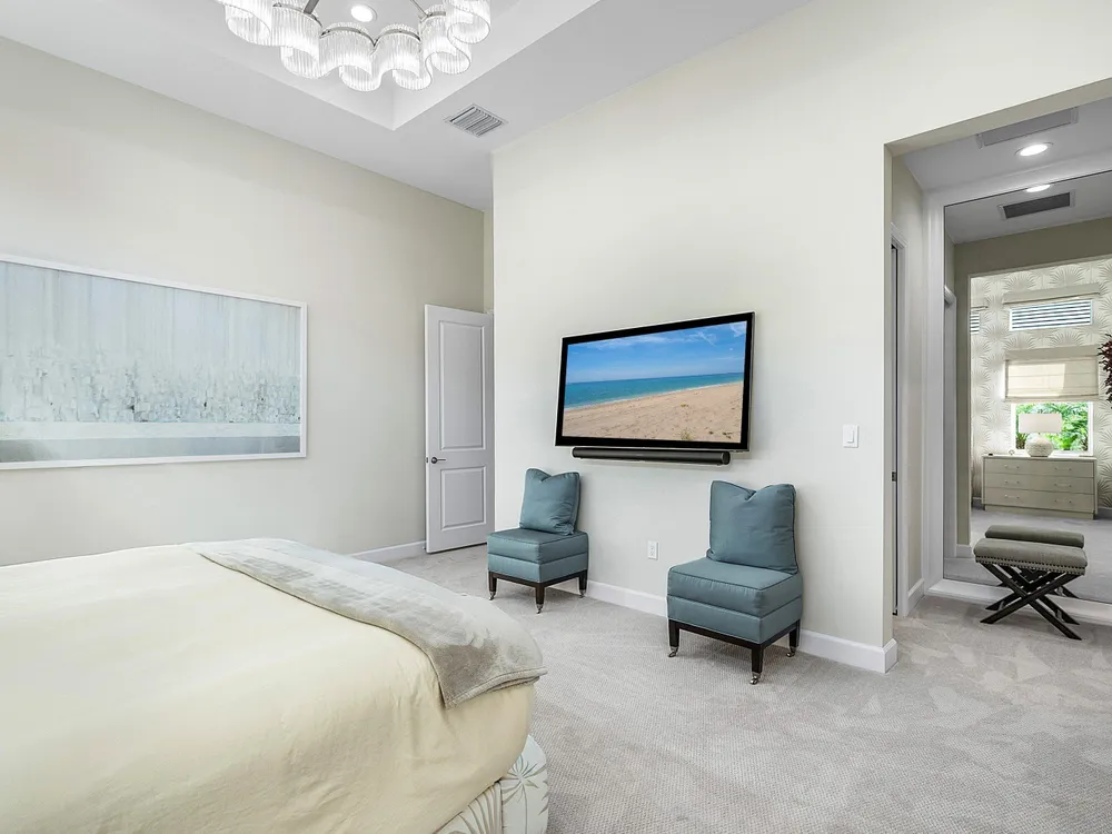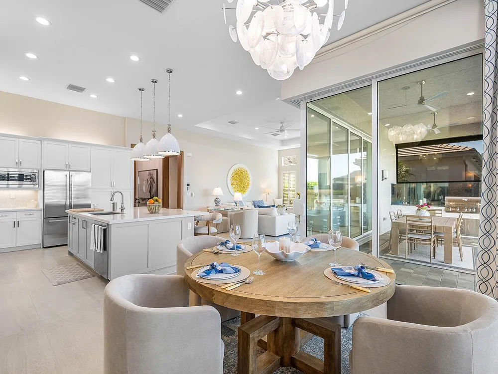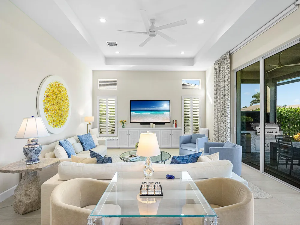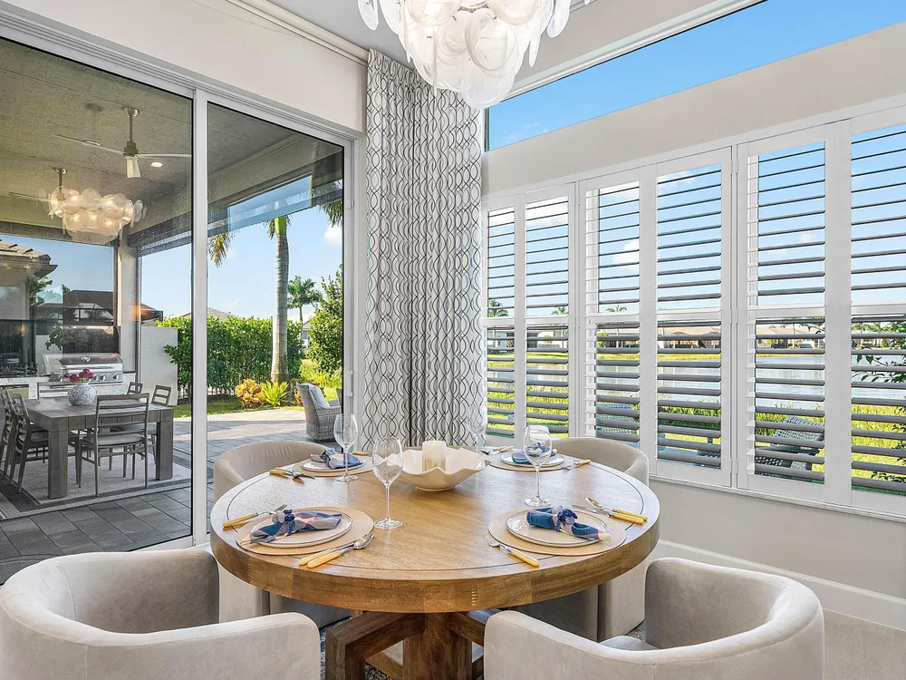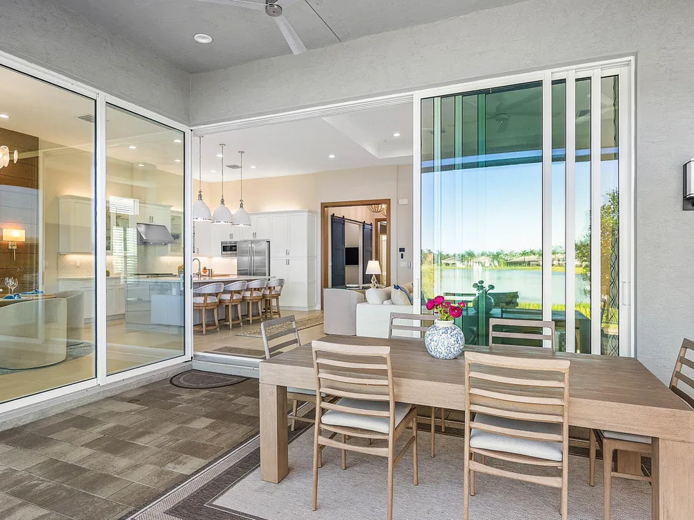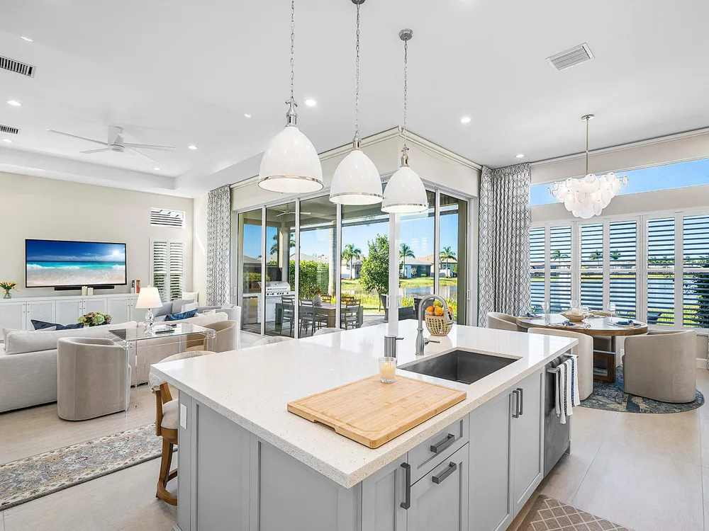 Situated in the distinguished 55+ gated community of Valencia Sound in Boynton Beach, this Aruba model comes with DESIGNER FURNITURE INCLUDED! The home offers 2 bedrooms plus a den, 2 full baths, with professional designed upscale interior and exterior finishes. It includes a whole-house generator, designer Serene & Lily light fixtures, retractable blinds with Phantom screens, decorative accent woodwork walls, and a summer kitchen overlooking a long lake view. The home is also built with impact windows for added safety and durability.As a resident of Valencia Sound, you gain access to all of its resort-style amenities: a 38,000+ square foot clubhouse featuring a full-service restaurant, sports lounge, ballroom with stage, cooking studio!