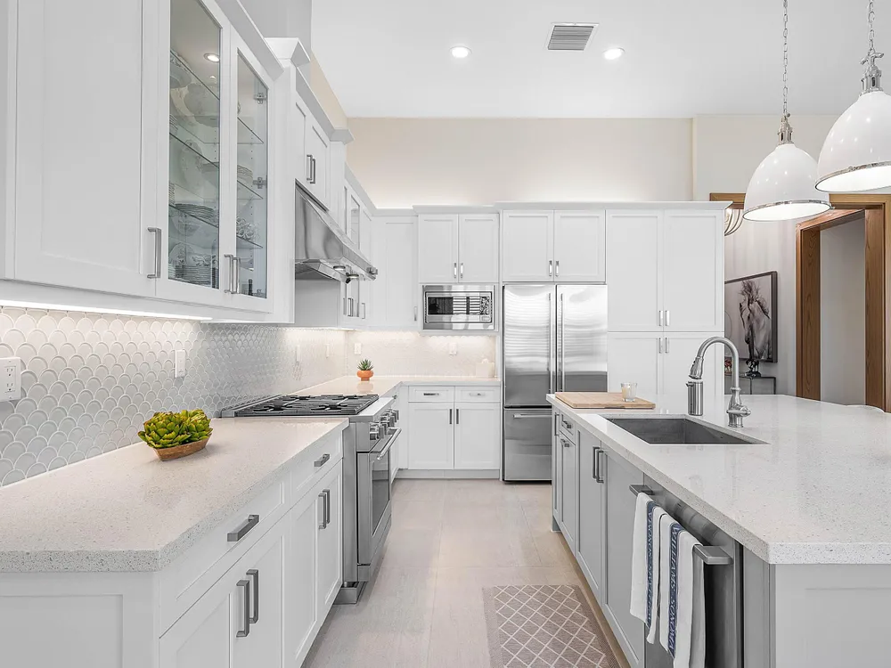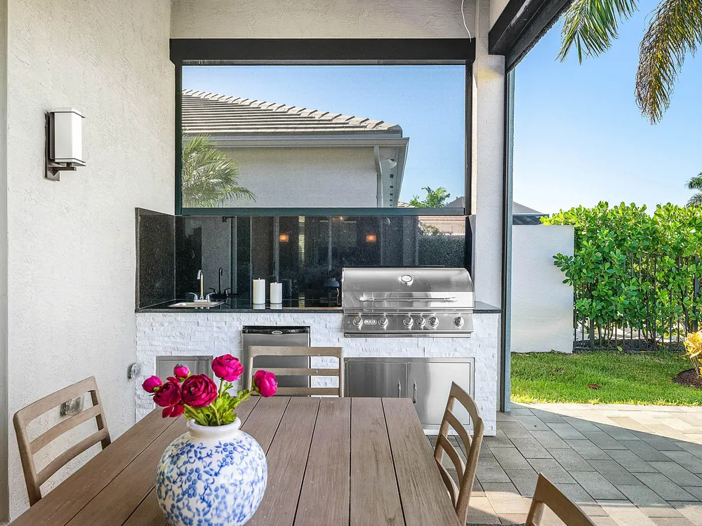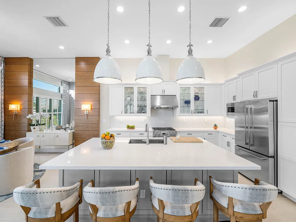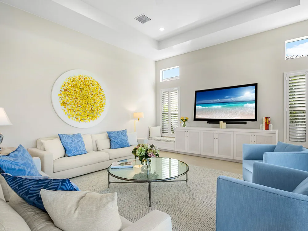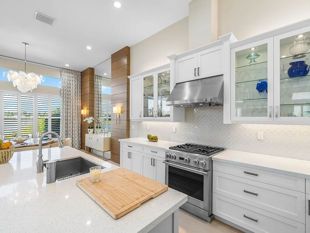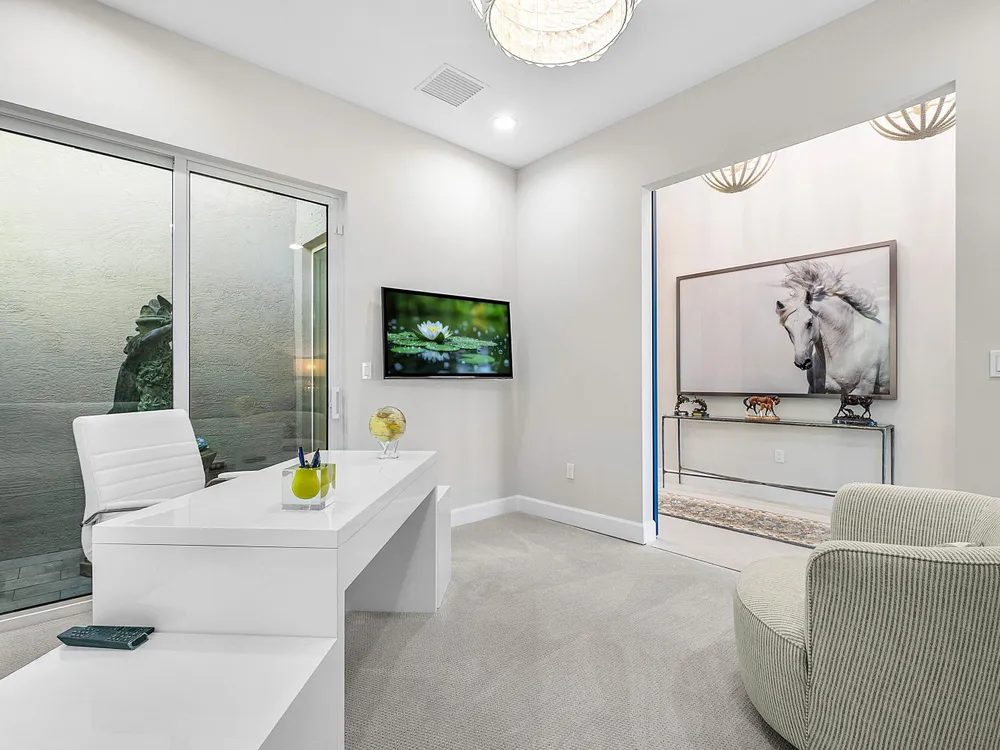 Situated in the distinguished 55+ gated community of Valencia Sound in Boynton Beach, this Aruba model comes with DESIGNER FURNITURE INCLUDED! The home offers 2 bedrooms plus a den, 2 full baths, with professional designed upscale interior and exterior finishes. It includes a whole-house generator, designer Serene & Lily light fixtures, retractable blinds with Phantom screens, decorative accent woodwork walls, and a summer kitchen overlooking a long lake view. The home is also built with impact windows for added safety and durability.As a resident of Valencia Sound, you gain access to all of its resort-style amenities: a 38,000+ square foot clubhouse featuring a full-service restaurant, sports lounge, ballroom with stage, cooking studio!
