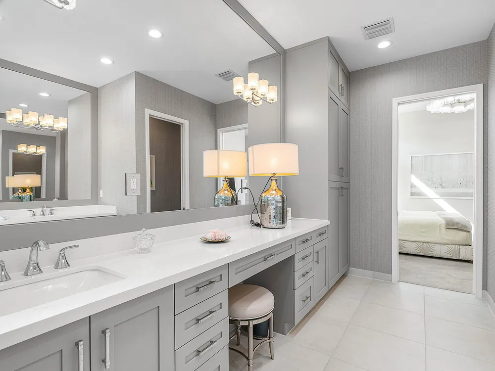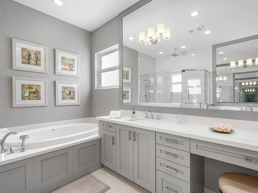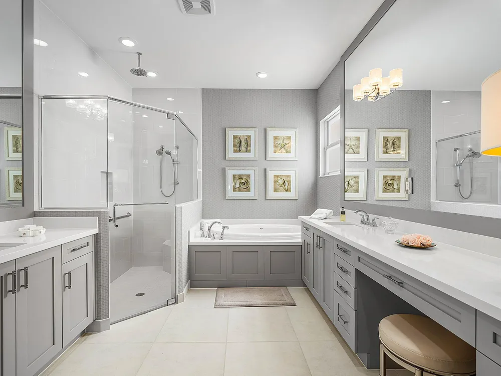 - Entry Level Living Area, Kitchen Island, Pantry, Split Bedrooms, High Ceilings, Walk-In Closet(s), Attic, Home Office, Family Room, Great Room, Impact Glass, Dual Sinks, Primary Downstairs, Separate Shower, Bathtub