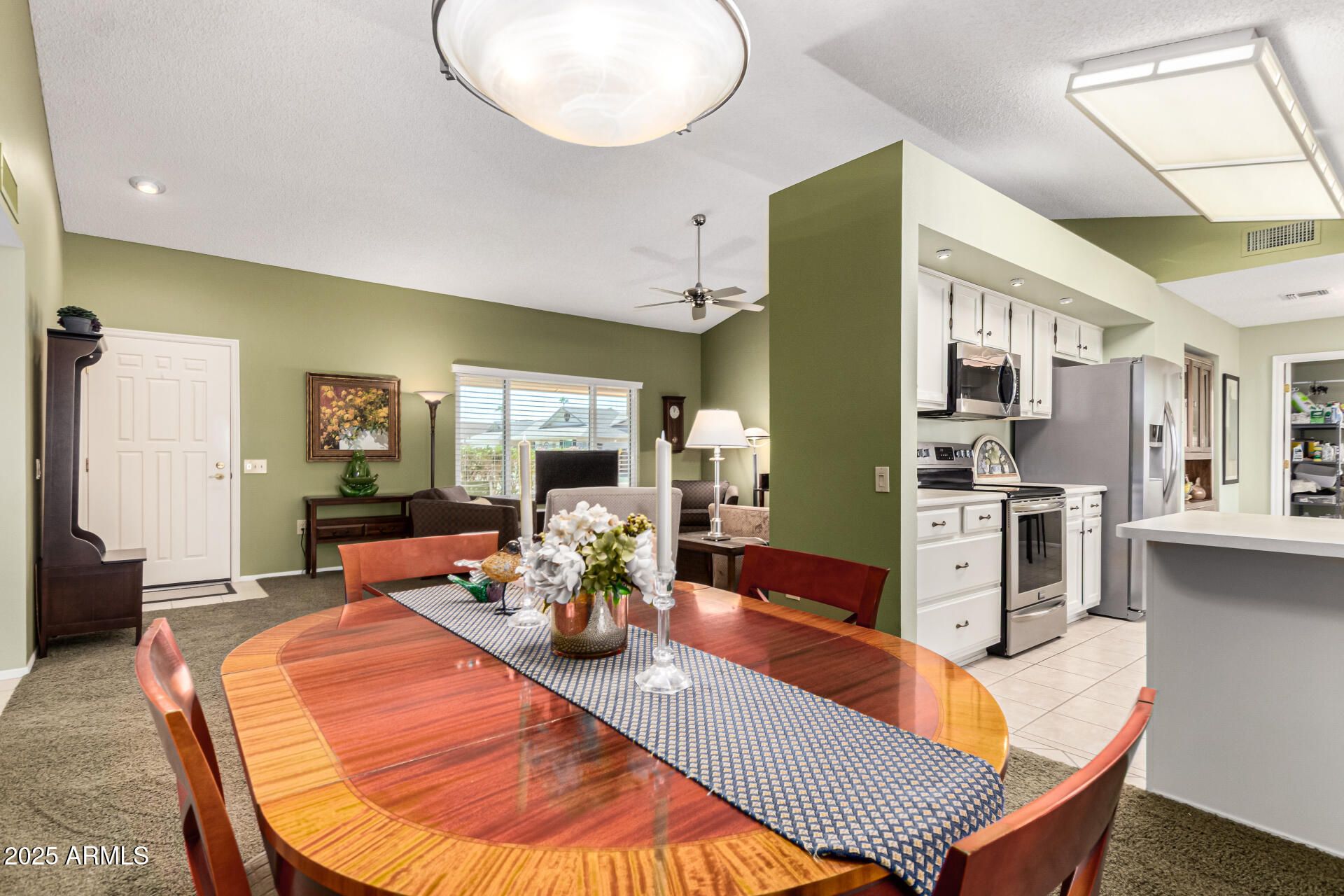 Don't miss this delightful 2-bedroom gem in the vibrant 55+ community of Sun City West! This energy-efficient charmer welcomes you with a 2-car garage and an inviting interior featuring vaulted ceilings, a lively color palette, and a cozy living room wrapped in plush carpet. Enjoy the versatile AZ room perfect for a sunny reading nook or creative studio. The chic kitchen shines with SS appliances, generous counters, built-in cabinetry, and a cheerful breakfast nook. Drift off peacefully in the main bedroom complete with its own private bathroom. Relax outdoors under the Ramada and take advantage of community perks like the pool, spa, fitness center, and more. Come experience the fun and ease of resort-style living!
