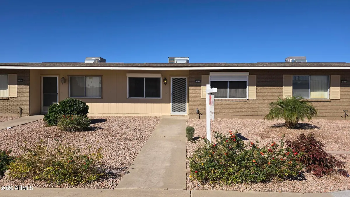 Charming 1 bedroom, 1 bathroom townhome located in desirable Sun City with amenities galore! This well-maintained home features updated kitchen cabinetry. Remodeled bathroom with a spacious walk-in shower. Enjoy the convenience of an inside washer and dryer, plus retractable security shutters—perfect for seasonal residents or peace of mind while traveling. Relax in your private enclosed patio, ideal for morning coffee or entertaining. The property includes a 1-car carport with additional storage space. Conveniently located near shopping, medical facilities, recreation centers, and community resources. Seller would love to offer the home turnkey, including a gas golf cart—just bring your suitcase and start enjoying the Sun City lifestyle!