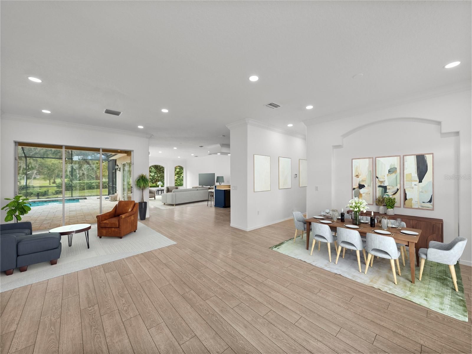 Under contract-accepting backup offers. Dreaming of a move-in ready home that has it all? This stunning Lake Jovita pool home delivers! Set on over half an acre at the end of a quiet cul-de-sac, this completely renovated 4 bedroom + office, 3.5 bath, 3 car garage retreat combines modern design, extensive upgrades, and peaceful golf course views. Every detail was redone with purpose, creating an allergy-free, bacteria- resistant environment and a warm, contemporary style throughout. Major updates include a new tile roof, new AC and ductwork with UV filter, new kitchen and bathrooms, Zero VOC interior paint, a whole-house generator, resurfaced saltwater pool, and new paver pool deck. Inside, the open-concept layout showcases new waterproof laminate flooring, abundant natural light, and stunning pool views. The brand-new chef’s kitchen offers Dekton countertops, stainless steel appliances, navy blue allergy-resistant cabinetry, a central island, and breakfast bar seating, perfect for entertaining. The triple split floor plan includes two guest rooms with a shared full bath, a private guest nook with another renovated bath, and a luxurious primary suite with two walk-in closets, pool access, and a spa-like ensuite featuring body sprayers, a soaking tub, and dual sinks. Additional highlights include a half bath with pool access, interior laundry with washer and dryer, a 3-car garage with new epoxy flooring, and a whole-house water filtration system. Outdoors, enjoy your own private oasis with a sparkling pool, lush landscaping, and direct golf course access. Lake Jovita offers a 24-hour manned gate, playground, park, pickleball courts, and walking trails, with optional memberships providing access to two championship golf courses, a Junior Olympic pool, fitness center, clubhouse, and more. Call today to schedule your private tour!
