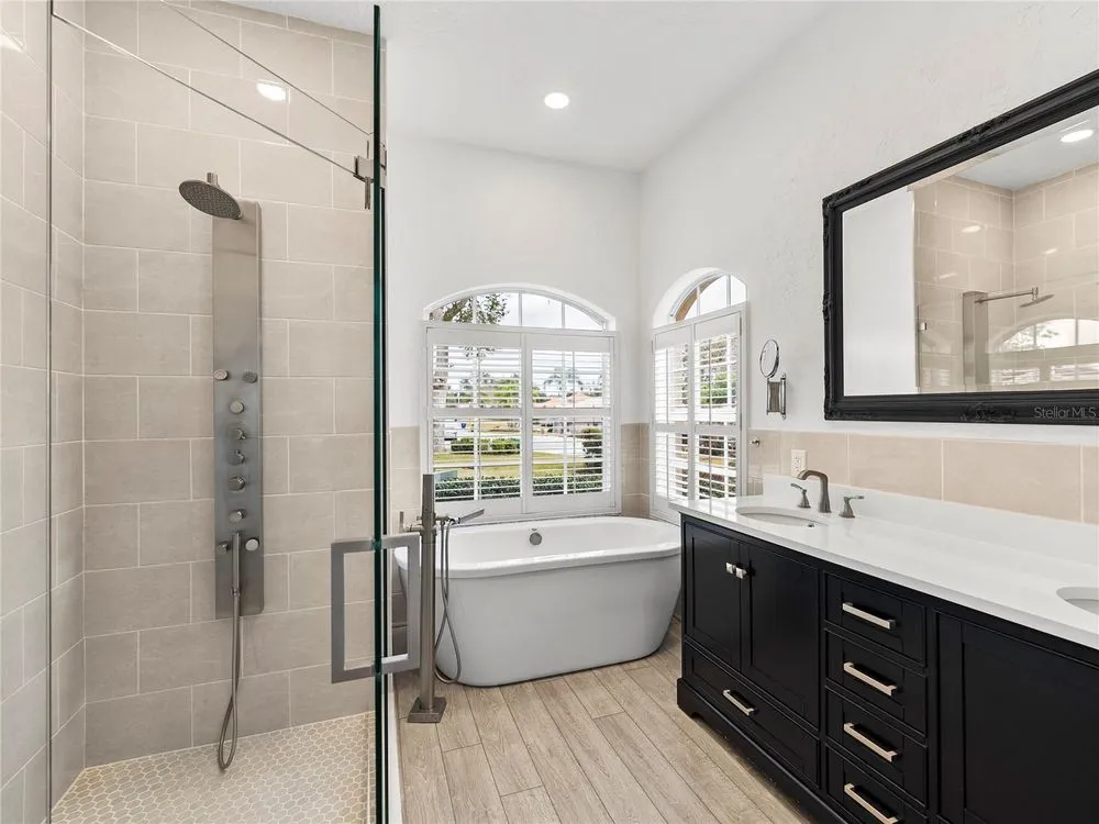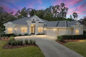 Dreaming of a move-in ready home that has it all? This stunning Lake Jovita pool home delivers! Set on over half an acre at the end of a quiet cul-de-sac, this completely renovated 4 bedroom + office, 3.5 bath, 3 car garage retreat combines modern design, extensive upgrades, and peaceful golf course views. Every detail was redone with purpose, creating an allergy-free, bacteria- resistant environment and a warm, contemporary style throughout. Major updates include a new tile roof, new AC and ductwork with UV filter, new kitchen and bathrooms, Zero VOC interior paint, a whole-house generator, resurfaced saltwater pool, and new paver pool deck. Inside, the open-concept layout showcases new waterproof laminate flooring, abundant natural light, and stunning pool views. The brand-new chef’s kitchen offers Dekton countertops, stainless steel appliances, navy blue allergy-resistant cabinetry, a central island, and breakfast bar seating, perfect for entertaining. The triple split floor plan includes two guest rooms with a shared full bath, a private guest nook with another renovated bath, and a luxurious primary suite with two walk-in closets, pool access, and a spa-like ensuite featuring body sprayers, a soaking tub, and dual sinks. Additional highlights include a half bath with pool access, interior laundry with washer and dryer, a 3-car garage with new epoxy flooring, and a whole-house water filtration system. Outdoors, enjoy your own private oasis with a sparkling pool, lush landscaping, and direct golf course access. Lake Jovita offers a 24-hour manned gate, playground, park, pickleball courts, and walking trails, with optional memberships providing access to two championship golf courses, a Junior Olympic pool, fitness center, clubhouse, and more. Call today to schedule your private tour!