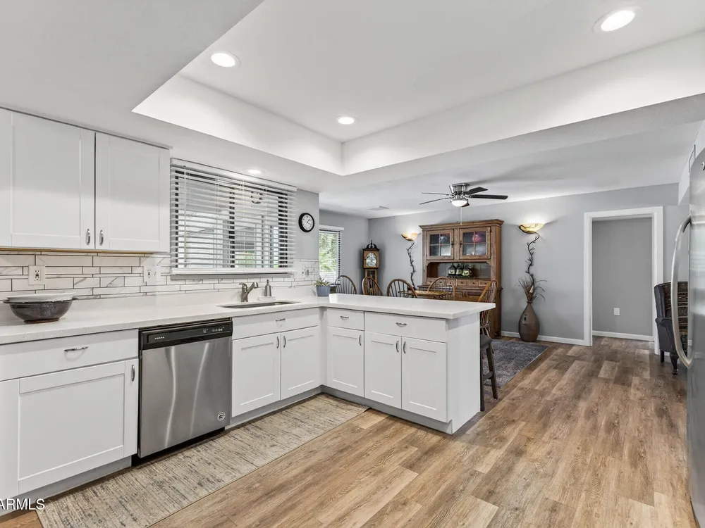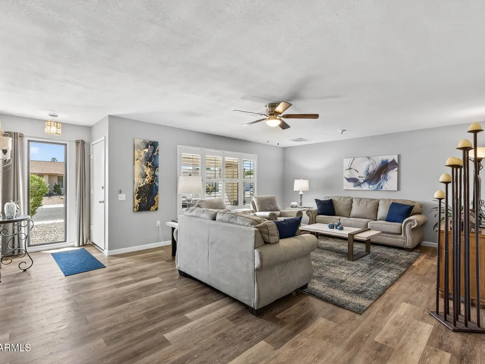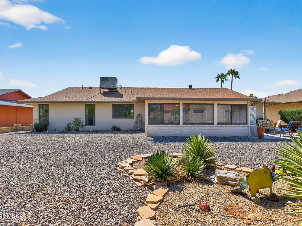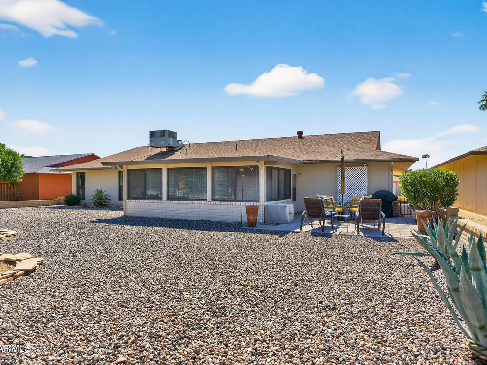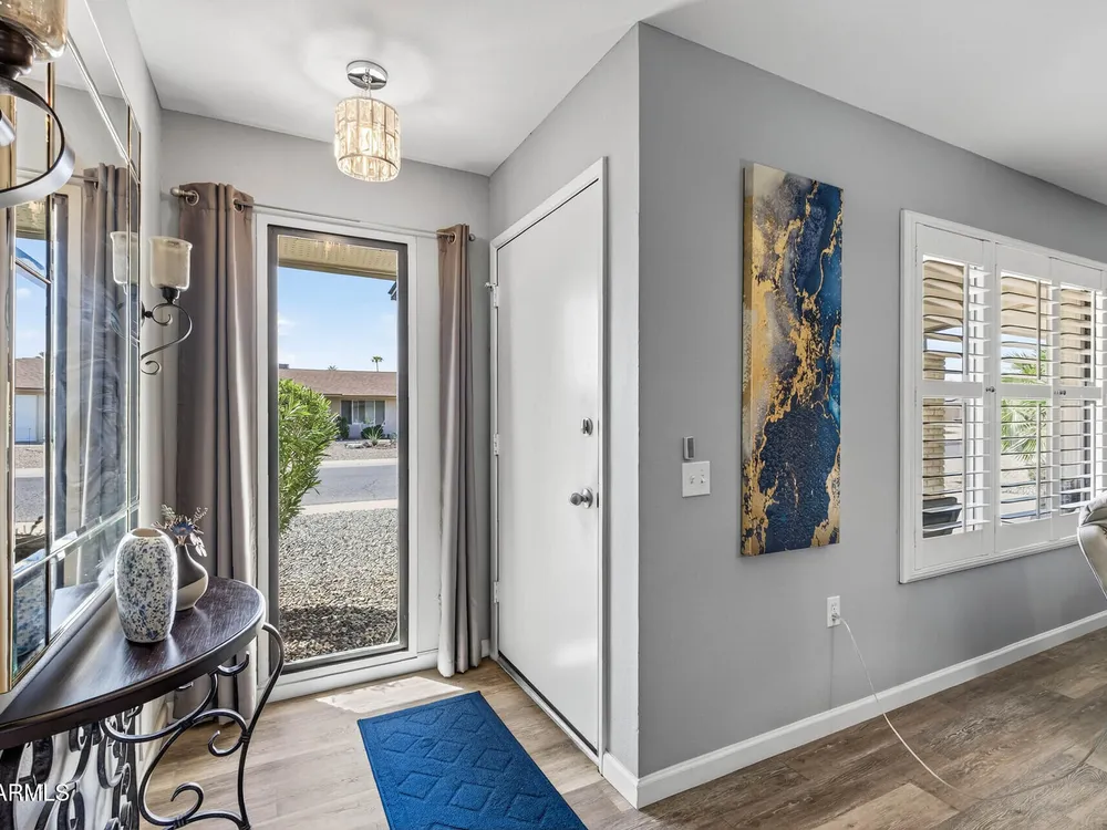 Tastefully updated Classic model in Sun City West, an active adult community with pools, pickleball, golf & more! This 2 bed/2 bath home features major updates: HVAC (2022), roof (2020), windows (2020). Inside you'll find LVP flooring (carpet in bedrooms), tiled showers, and quartz counters in kitchen & baths. White shaker cabinets, stainless appliances, washer & dryer included. Spacious enclosed patio adds living space; garage has built-in storage. Backyard offers 3-ft pony wall for small pets. Great location near Beardsley & RH Johnson centers plus shopping.