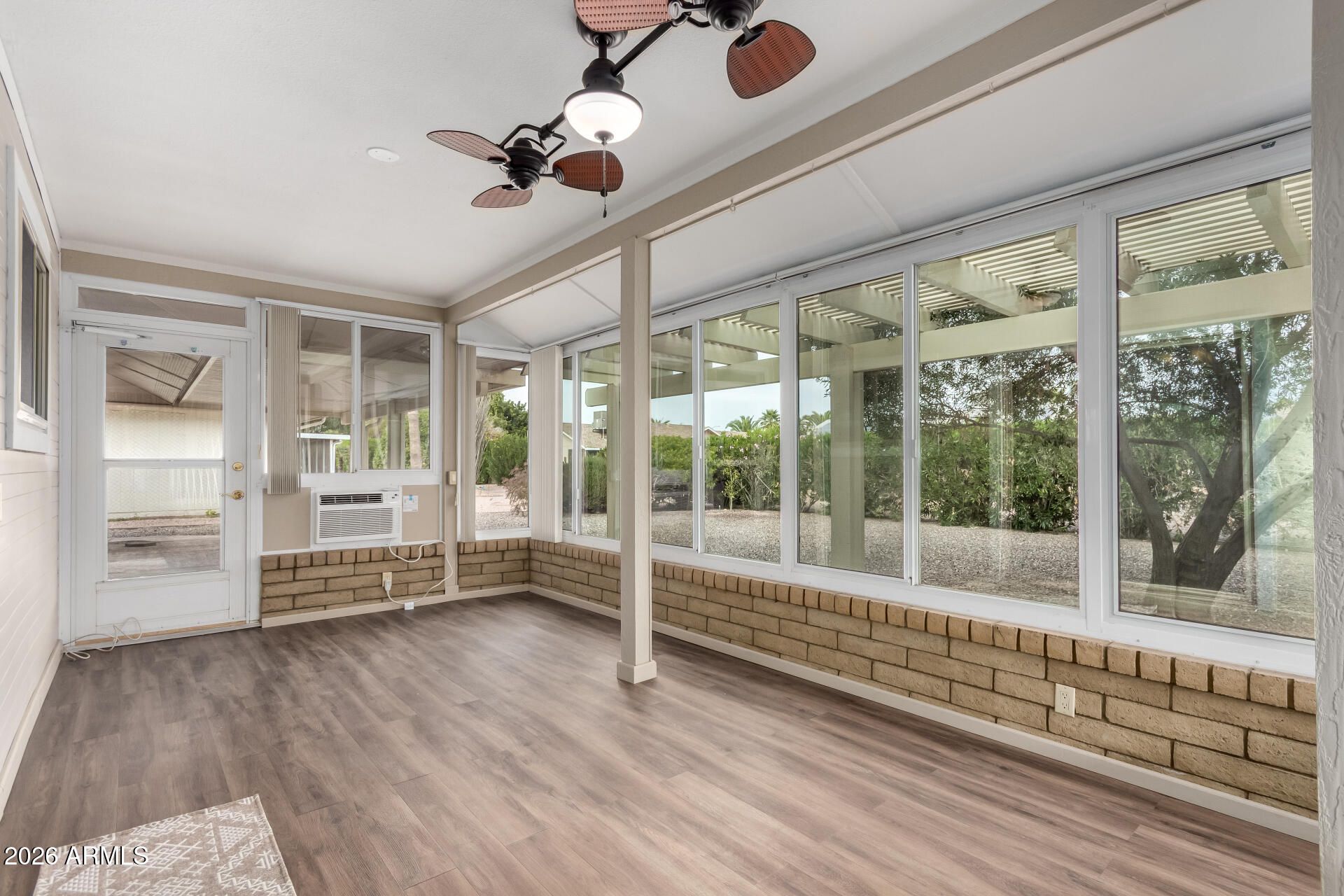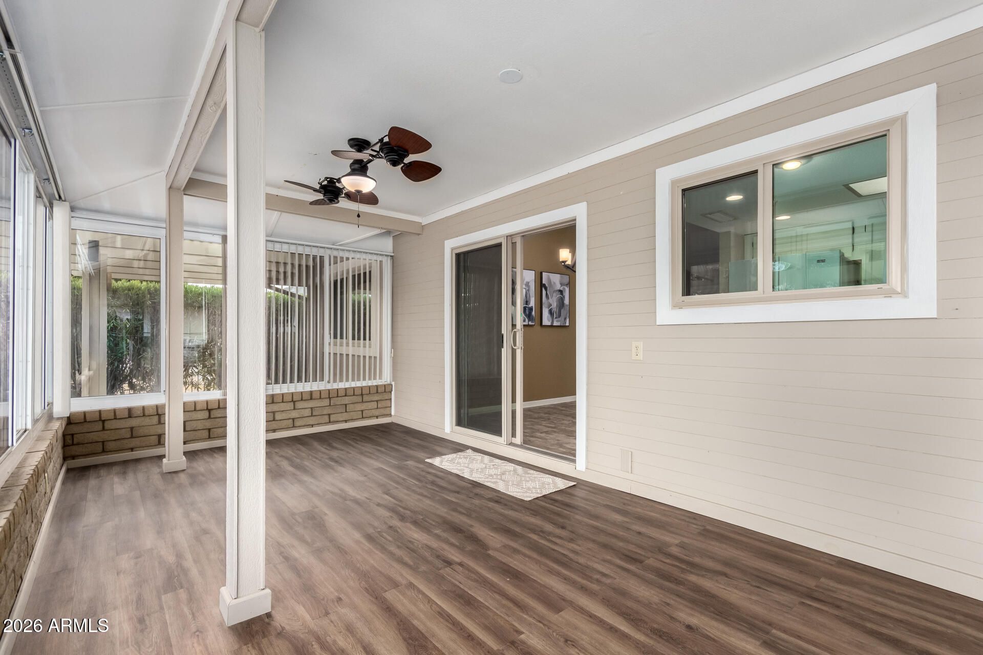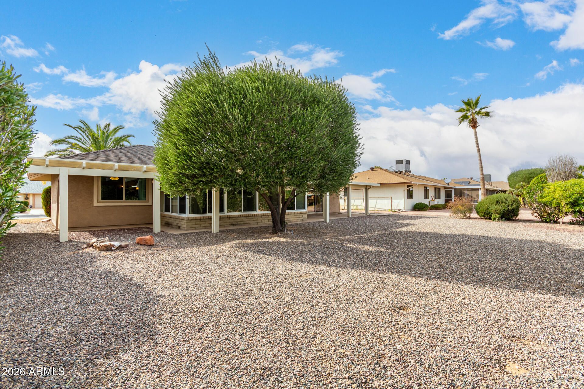 Come see this adorable 2-bedroom home in the highly sought-after Sun City West, known for its incredible resort-style amenities including 7 golf courses, 4 rec centers, indoor & outdoor pools, pickleball, tennis, bocce, an incredible bowling center, and over 90 social clubs! The spacious living areas invite you in with luxury vinyl plank flooring, vaulted ceilings, and warm, earthy tones throughout. The well-appointed kitchen awaits your home cooking, featuring recessed lighting, ample cabinet space, and granite countertops. The primary bedroom offers a peaceful retreat with a walk-in closet, a private bathroom, and private exit for added convenience. Enjoy relaxing evenings in the AZ room, then step outside to two covered patios, perfect for morning coffee or weekend grilling, all set against a serene landscape that creates the ideal backdrop for everyday living. Added peace of mind comes with a newer roof and newer HVAC, both completed in 2024, along with updated windows throughout. Don't miss this gem!