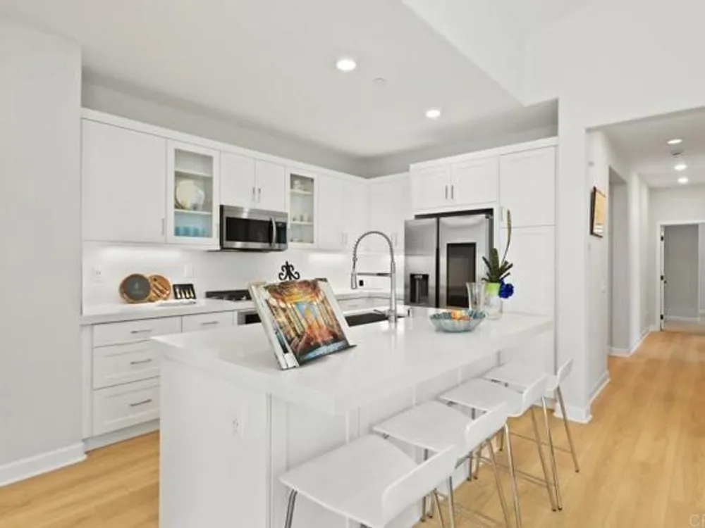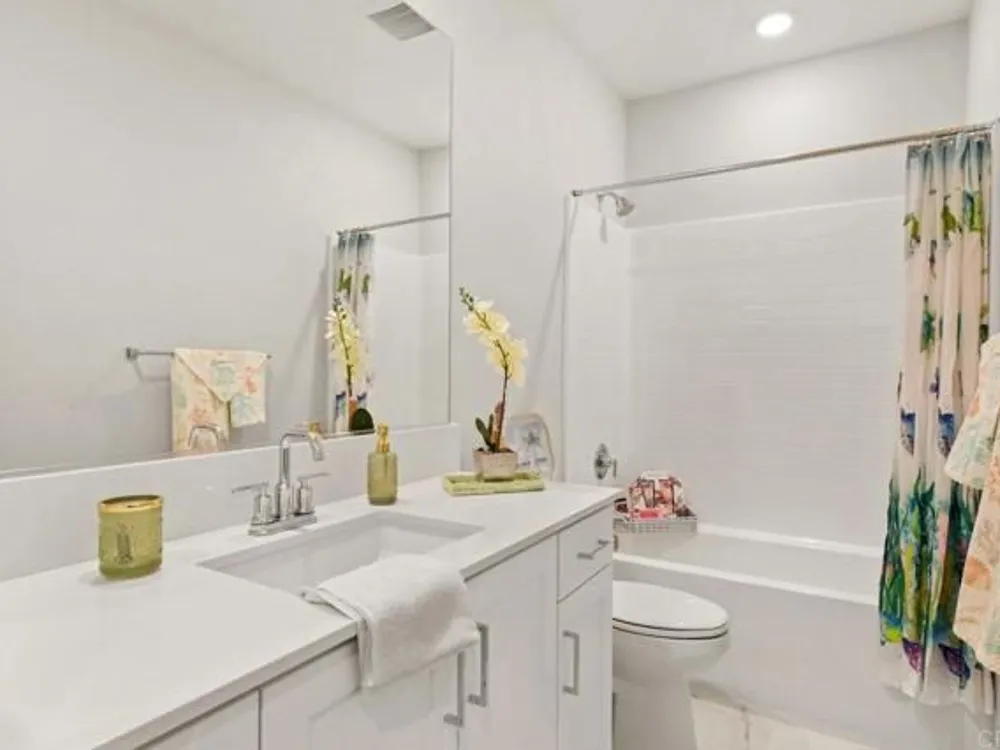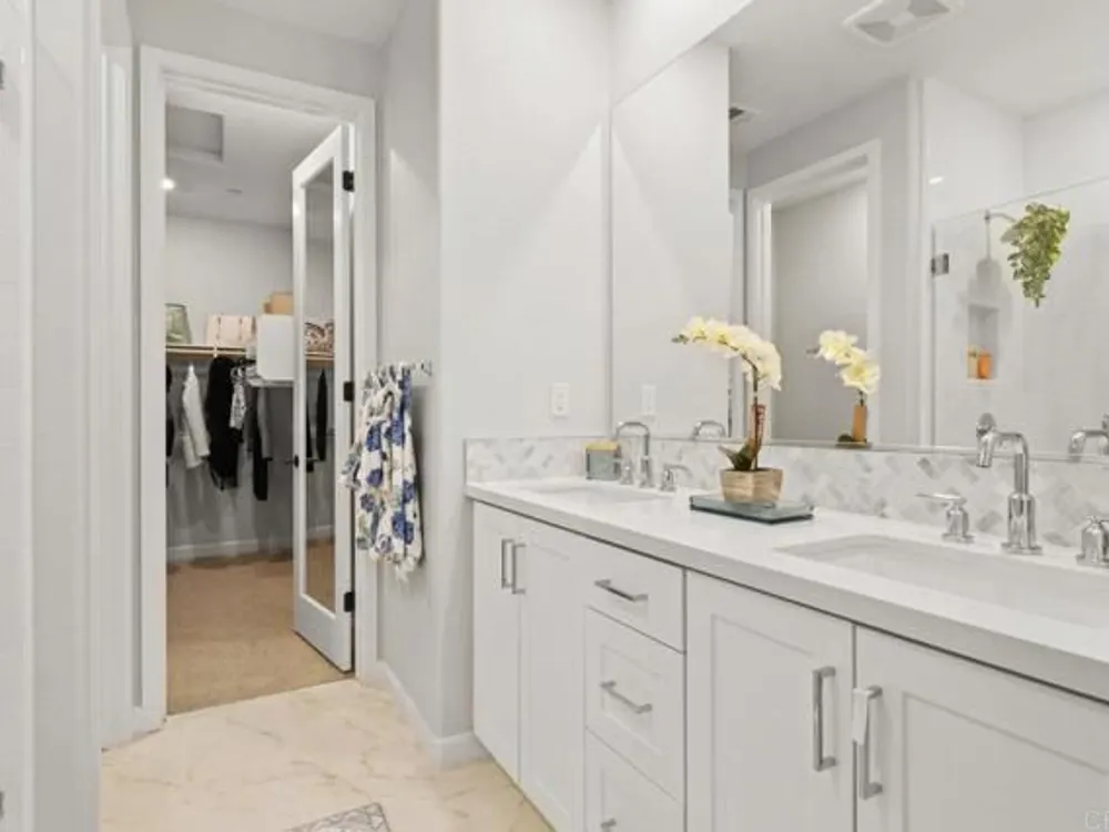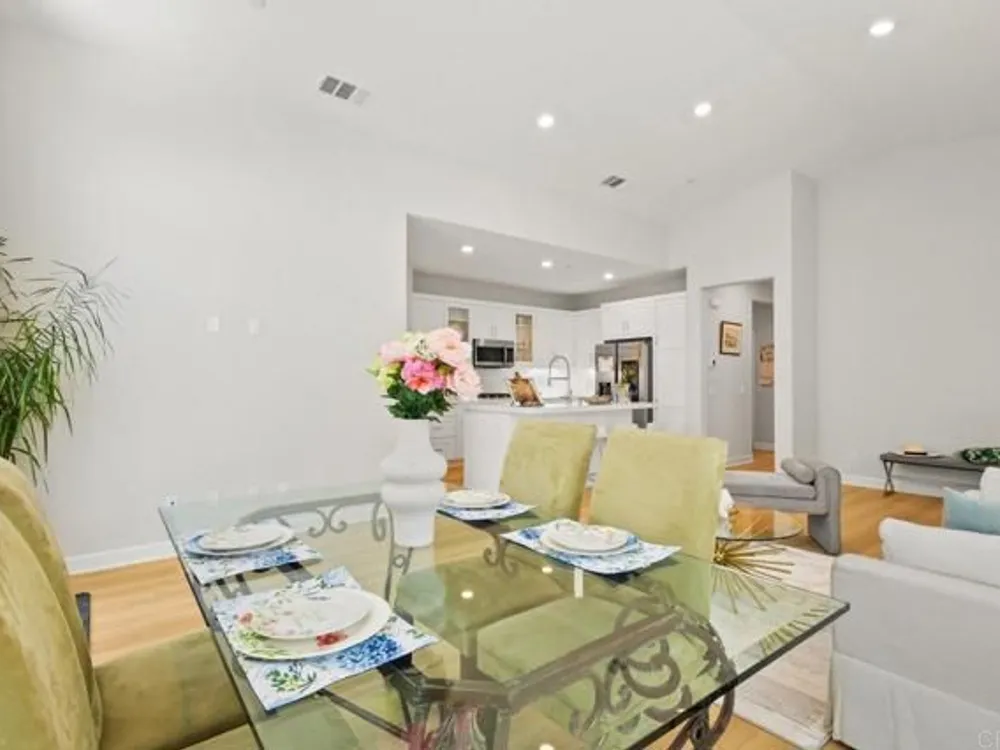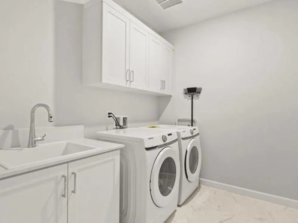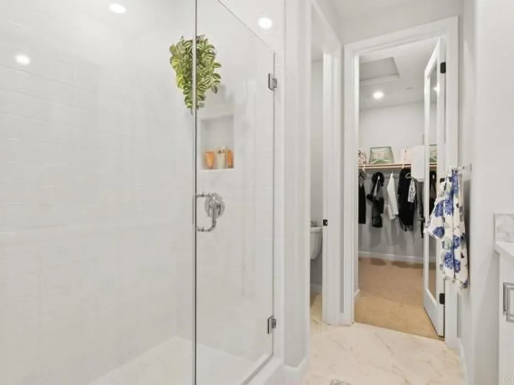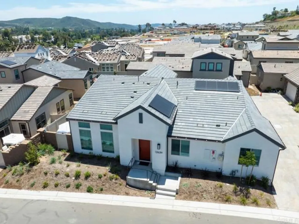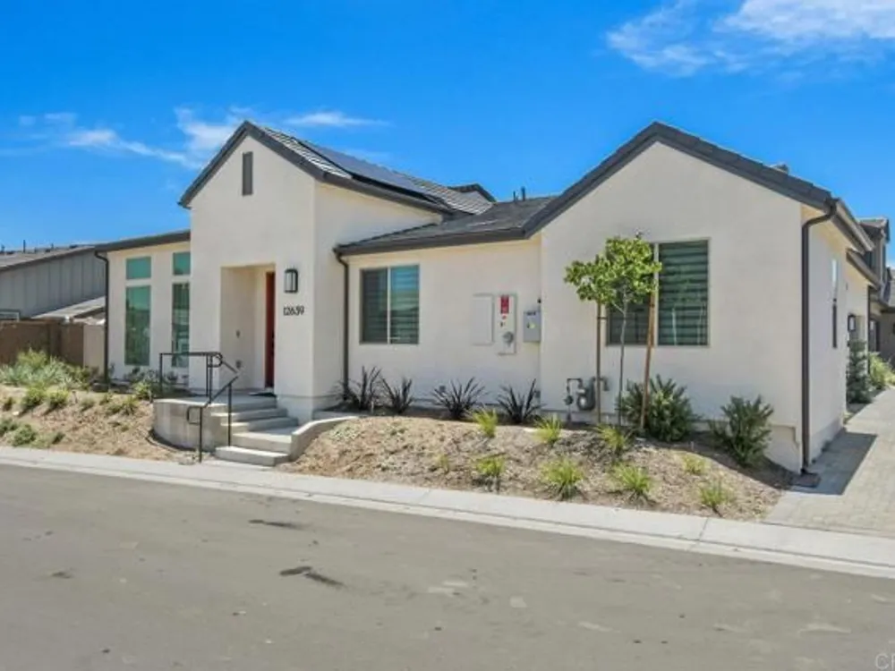Welcome to your community dream home! This stunning brand-new, single-story residence offers modern luxury, smart-home convenience, and an unbeatable location near top-rated schools, premier shopping centers, dining, and easy access to the 56 freeway—just minutes from the breathtaking sunsets at Torrey Pines. And the cherry on top of this stunning home is a whole year of HOA fees prepaid. Spanning approximately 1,500 square feet, this thoughtfully designed 3-bedroom, 2-bathroom home boasts an open-concept layout with soaring ceilings and abundant natural light. The gourmet kitchen is a chef’s delight, featuring top-of-the-line stainless steel appliances, including a washer and dryer, and sleek finishes throughout. Enjoy year-round comfort with central A/C, luxury vinyl plank flooring, and custom window treatments. The primary suite is a serene retreat with an upgraded spa-inspired bathroom. Every detail has been meticulously crafted for style and ease of living. This fully integrated smart home includes a paid solar system, Tesla EV charger, and a two-car garage. Step outside to your private garden, the perfect space for relaxation and entertaining. Located in an exceptional community with resort-style amenities, this is the perfect blend of elegance, efficiency, and location. Too many upgrades to list—this home truly has it all. Don’t miss your opportunity to own a slice of your dream home in Southern California!