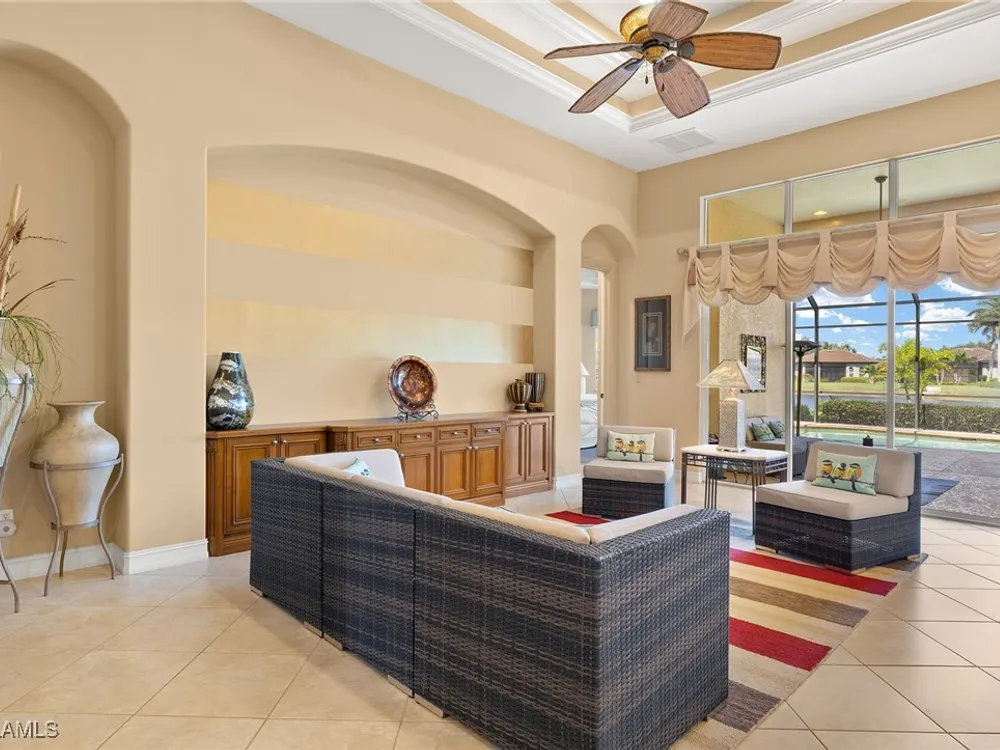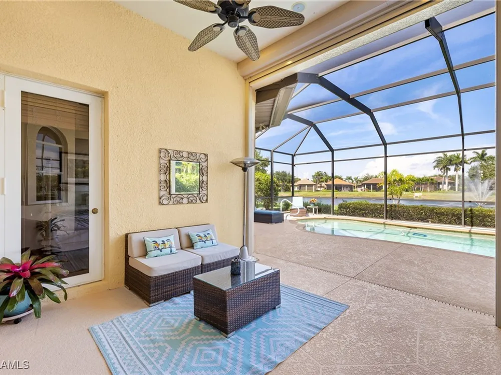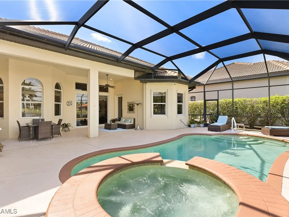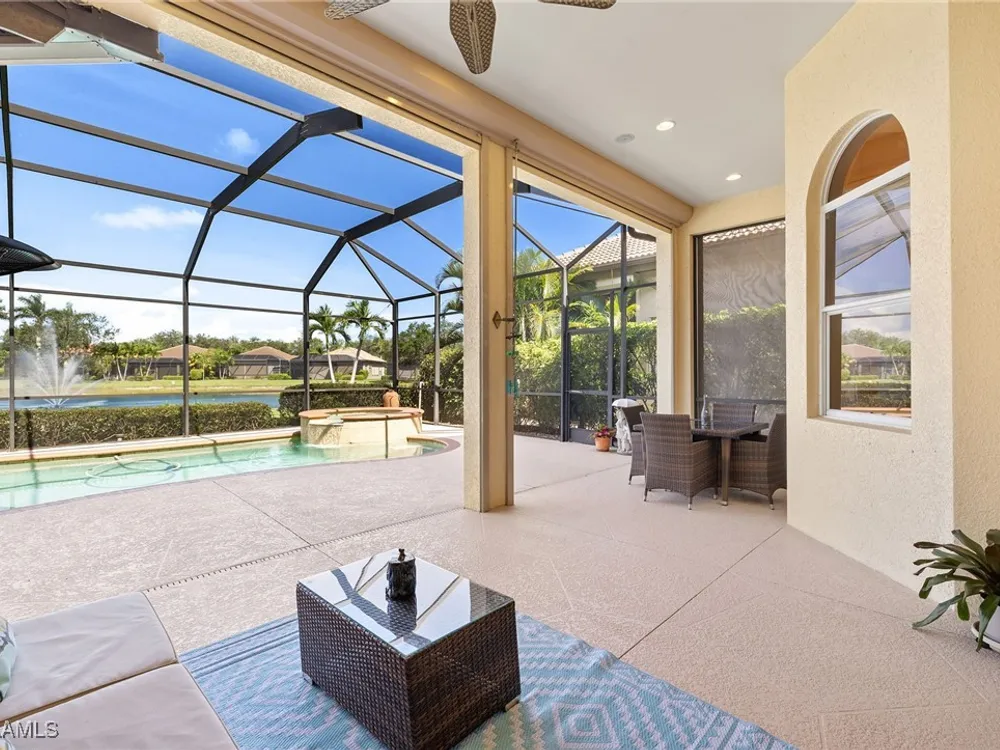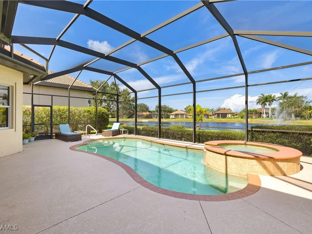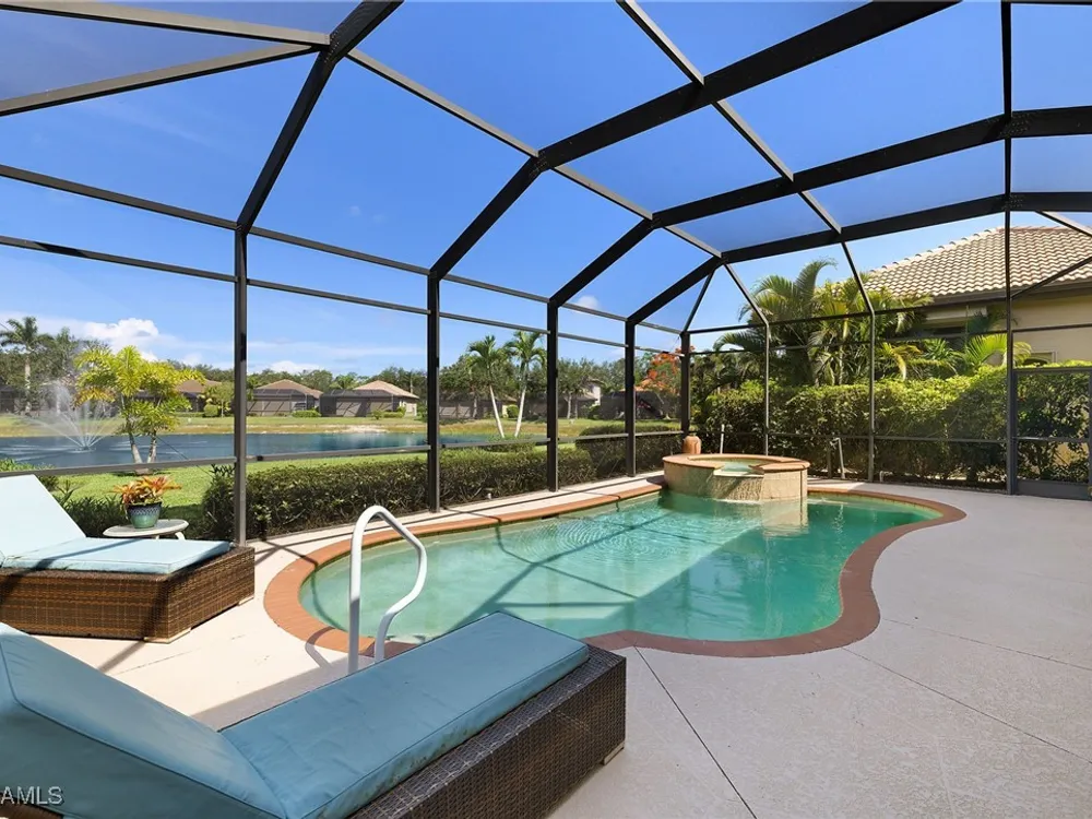 2025 AC, 2022 ROOF, ELECTRIC ROLL DOWN SHUTTERS FOR LANAI AND FABRIC PROTECTION ON WINDOWS. THIS HOME IS WELL MAINTAINED AND AWAITS A NEW OWNER! Discover refined Florida living in this beautifully crafted residence by Stock Development, ideally located in the highly sought-after Grandezza community. This meticulously maintained 3-bedroom + den, 2-bath home features a thoughtfully designed floor plan that blends comfort, style, and functionality. Step inside to find a formal dining room and a dedicated den—perfect for a home office or library. The heart of the home is the spacious kitchen, showcasing stainless steel appliances, natural maple Kitchen Craft cabinetry with under-cabinet lighting, and gleaming granite countertops. Enjoy seamless indoor-outdoor living with a large under-truss lanai offering expansive lake views, complete with a tranquil fountain feature. The heated pool and integrated spa are surrounded by a generous deck area, ideal for entertaining or relaxing in your private outdoor oasis. The primary suite offers a serene retreat with new plank tile flooring, direct access to the lanai, an ensuite bath, and ample closet space. Additional features include a new tile roof (2020), a brand-new A/C system (2025), and electronic hurricane shutters along the back of the home for effortless storm protection. The Furniture Package is included in this sale as an added bonus to the new Owner. Grandezza offers a vibrant lifestyle with resort-style amenities including golf, tennis, fitness, dining, and more—all in a prime Estero location close to shopping, dining, and SWFL International Airport. This exceptional property is the perfect blend of elegance, comfort, and peace of mind—schedule your private tour today!