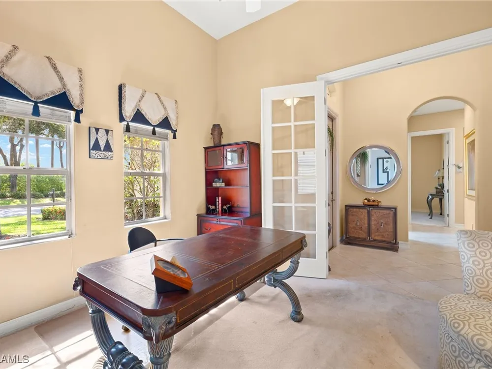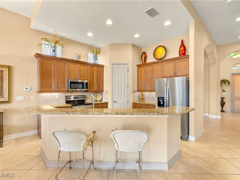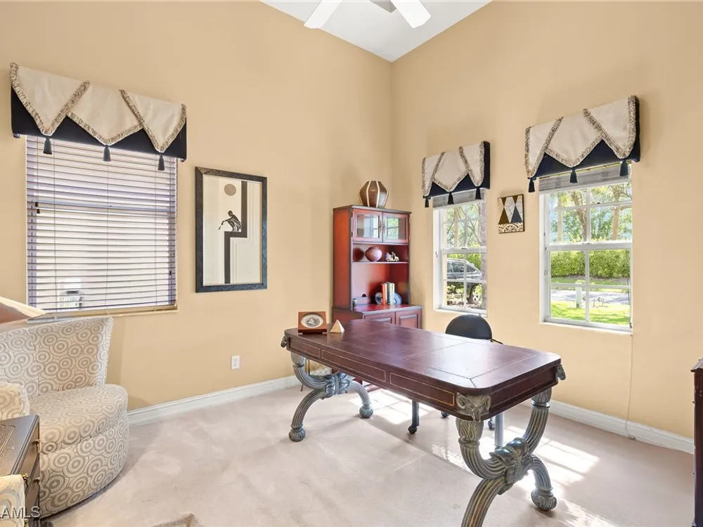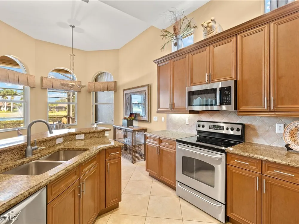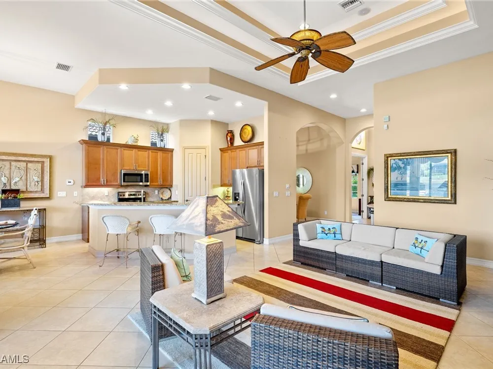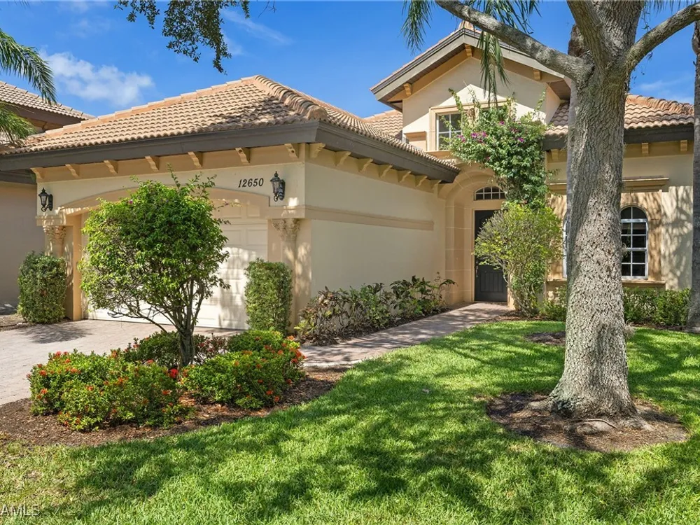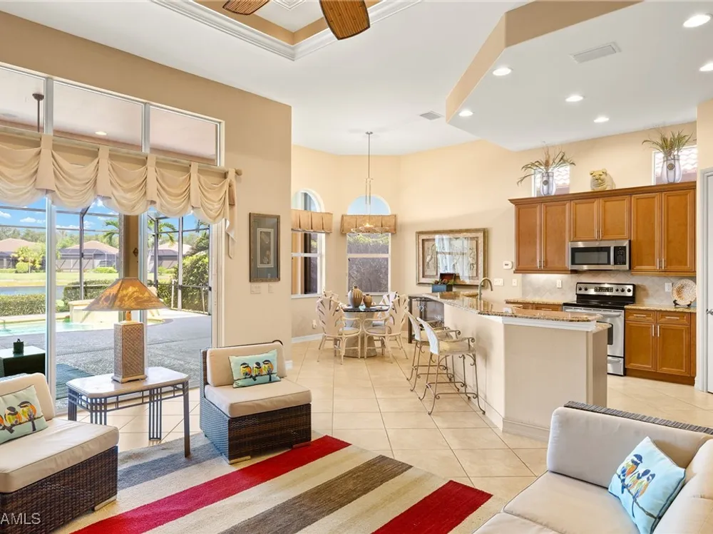 2025 AC, 2022 ROOF, ELECTRIC ROLL DOWN SHUTTERS FOR LANAI AND FABRIC PROTECTION ON WINDOWS. THIS HOME IS WELL MAINTAINED AND AWAITS A NEW OWNER! Discover refined Florida living in this beautifully crafted residence by Stock Development, ideally located in the highly sought-after Grandezza community. This meticulously maintained 3-bedroom + den, 2-bath home features a thoughtfully designed floor plan that blends comfort, style, and functionality. Step inside to find a formal dining room and a dedicated den—perfect for a home office or library. The heart of the home is the spacious kitchen, showcasing stainless steel appliances, natural maple Kitchen Craft cabinetry with under-cabinet lighting, and gleaming granite countertops. Enjoy seamless indoor-outdoor living with a large under-truss lanai offering expansive lake views, complete with a tranquil fountain feature. The heated pool and integrated spa are surrounded by a generous deck area, ideal for entertaining or relaxing in your private outdoor oasis. The primary suite offers a serene retreat with new plank tile flooring, direct access to the lanai, an ensuite bath, and ample closet space. Additional features include a new tile roof (2020), a brand-new A/C system (2025), and electronic hurricane shutters along the back of the home for effortless storm protection. The Furniture Package is included in this sale as an added bonus to the new Owner. Grandezza offers a vibrant lifestyle with resort-style amenities including golf, tennis, fitness, dining, and more—all in a prime Estero location close to shopping, dining, and SWFL International Airport. This exceptional property is the perfect blend of elegance, comfort, and peace of mind—schedule your private tour today!