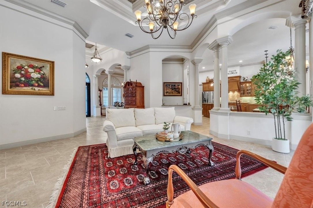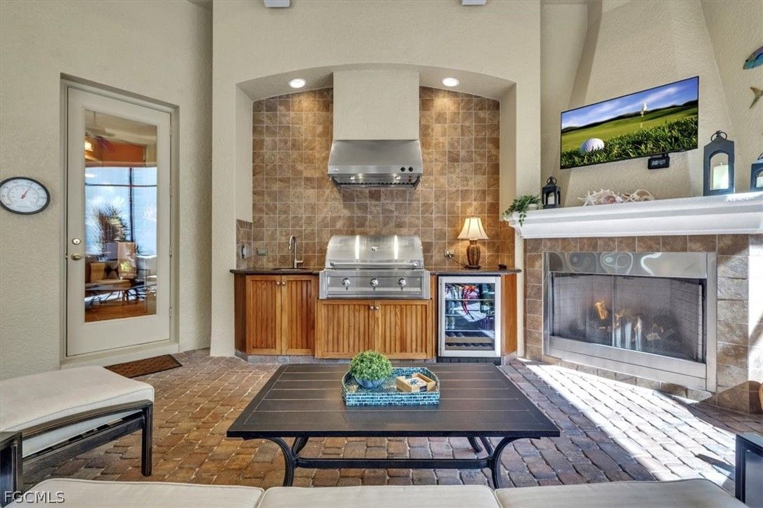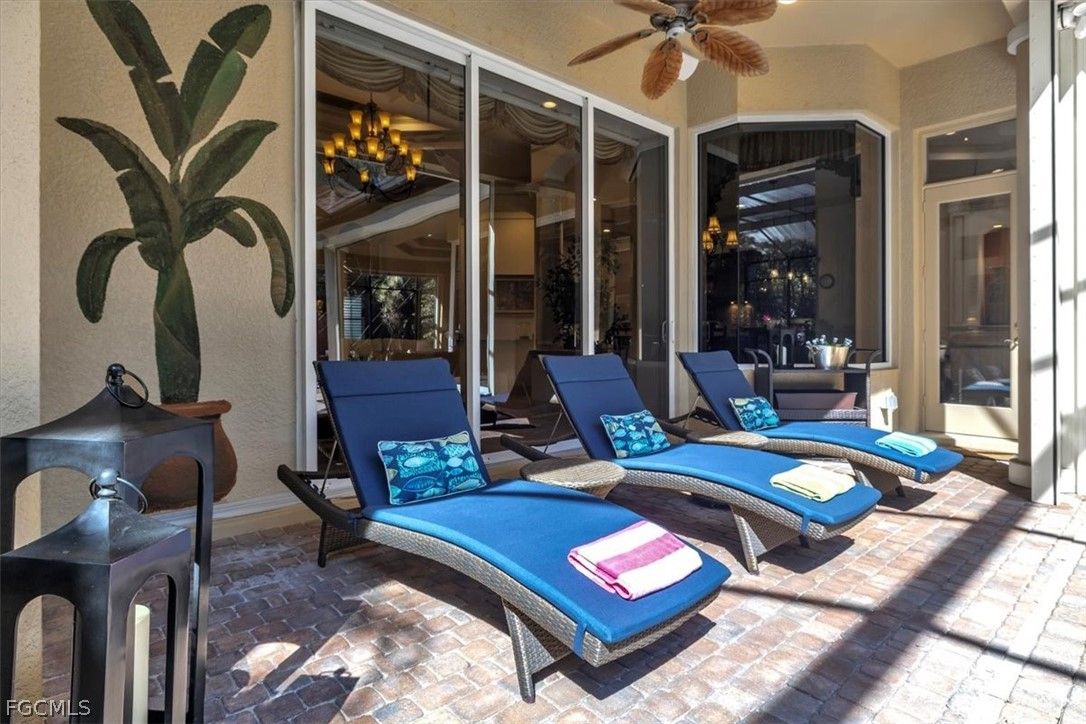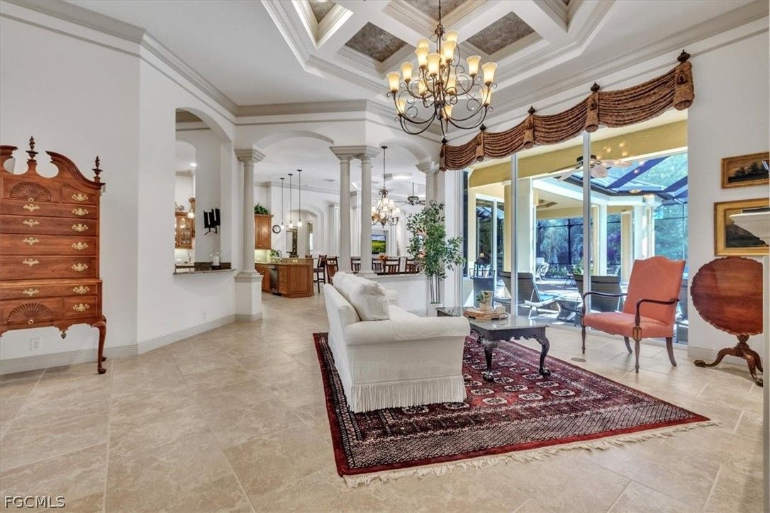 Experience the epitome of quality living with this stunning St. Augustine VI model home built by Arthur Rutenberg Homes. From the moment you step through the grand Cantera front doors, the impeccable craftsmanship and attention to detail are evident throughout this custom estate. The home boasts 3,668 sq. ft. of living space with 4 Bedrooms+Den, 3.5 baths, 3-car garage, and a spectacular outdoor living area in the highly desirable Gated Verandah Community. Upon entering the home through the large foyer, you are greeted by a formal spacious dining room and a cozy formal living room with an exquisite built-in and fireplace. A full wet bar with wine cooler is adjacent to the living room and the kitchen and family room. The Kitchen is a chef's paradise with plenty of cabinet space, granite countertops, prep island, full walk-in pantry, and breakfast bar. The family room also features a built-in and is surrounded by zero corner sliders which, when opened, make the family room area very large. The primary bedroom has full access to the Lanai and is large enough to have a small sitting area, his and her closets with tray ceilings, and a great view of the outdoor space. The primary bath has dual sinks with a vanity, separate multiple heads in the walk-in shower, soaking tub with a view to a private outdoor landscape area, linen closet, high ceilings, and plenty of natural sunlight. All other bedrooms are spacious with sizable closets. The extra bonus room/bedroom at the back of the home can have multiple uses. Additional features in the home include upgraded tile floors, coffered ceilings, hardwood floors in the den and bonus room/bedroom, fireplace in the living room, stainless steel appliances, AC '25, BRAND NEW METAL ROOF '25, crown molding, large laundry with sink and cabinets, 3-car garage with overhead motorized storage racks, tankless hot water heater, and central vac. The outdoor space is spectacular with a heated Pool and Spa, full outdoor kitchen with a small refrigerator, gas fireplace, electric storm shutters for added safety, newly painted screen enclosure with all new screen, and a very private preserve view. Situated in the Verandah Community, residents enjoy access to a full array of amenities which include 36 holes of Championship Golf designed by Bob Cupp and Jack Nicklaus, 5 har-tru tennis courts, pickleball, state-of-the-art fitness center, kayaks, bocce, playground, dog park, 9 miles of walking and jogging paths, multiple restaurants, and a social calendar to meet everyone's needs. If you seek quality construction in a secure, prestigious resort-style community, look no further than this exceptional home. This home will not last. It is a must-see. Come secure your place in Paradise now!