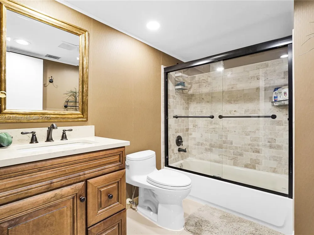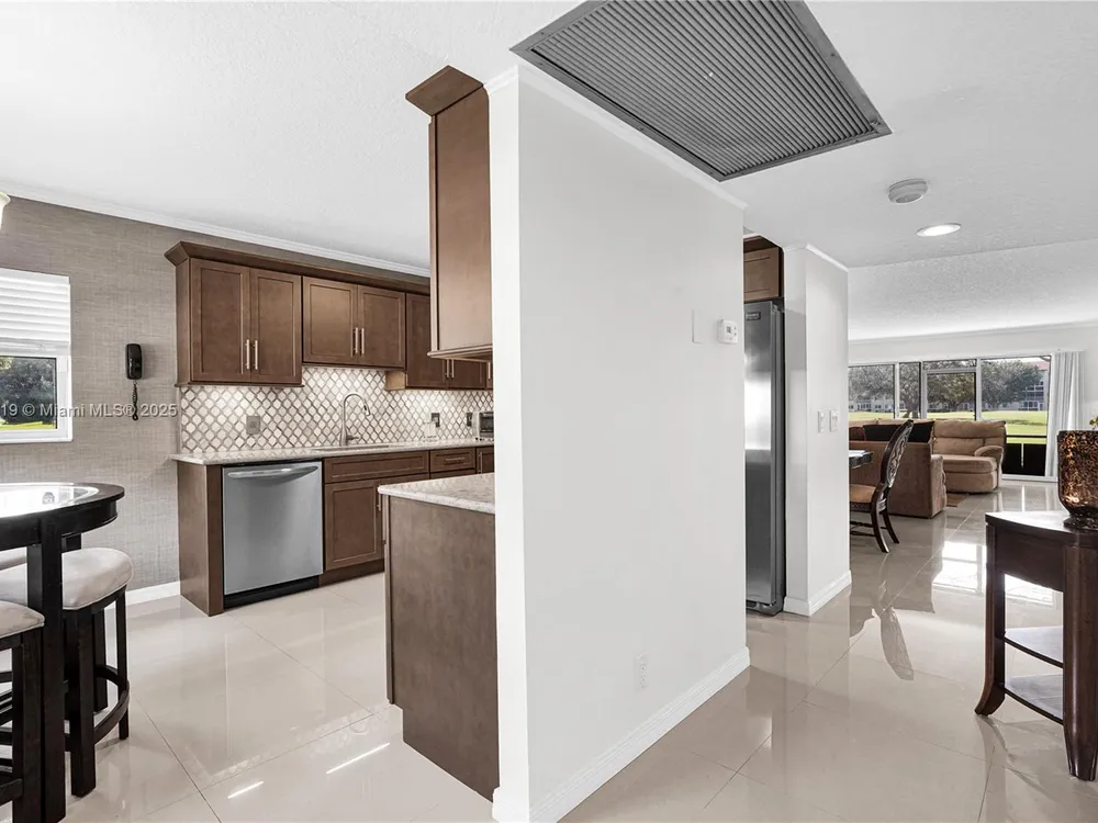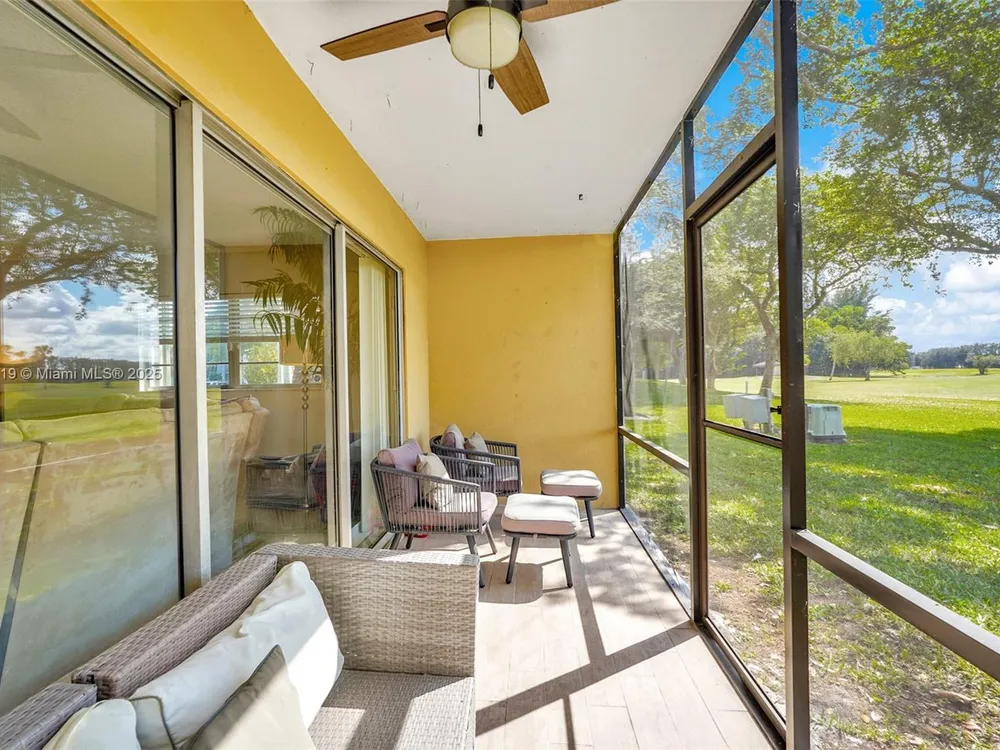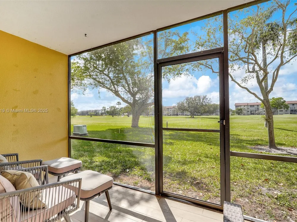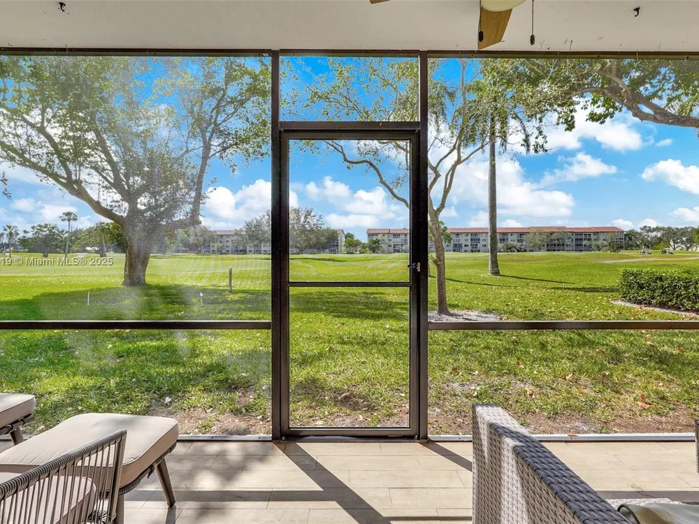 Step into one of the largest corner units on the first floor of the gated 55+ community of Century Village—it’s fully remodeled and absolutely gorgeous! You’ll love the open feel and the peaceful golf course views. Inside, the kitchen and bathrooms have been beautifully updated, and the entire unit features sleek, large-format porcelain tile floors. There's a washer and dryer in the unit, a newer tankless water heater, and the A/C was replaced just five years ago and still under warranty. The ceilings have a nice knockdown texture, there’s a roomy walk-in closet, and a cozy eat-in kitchen. Accordion shutters are also installed for extra protection.
