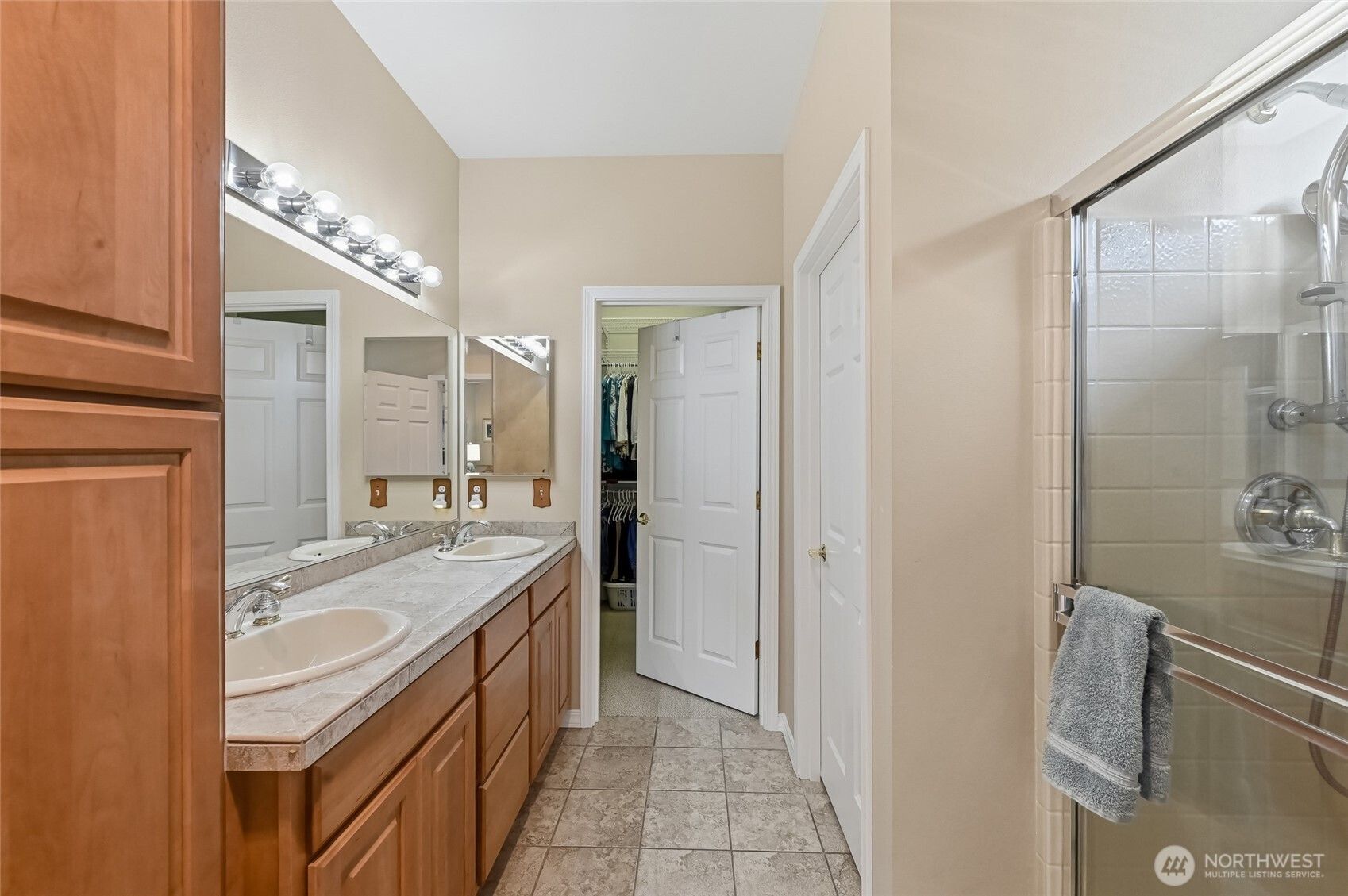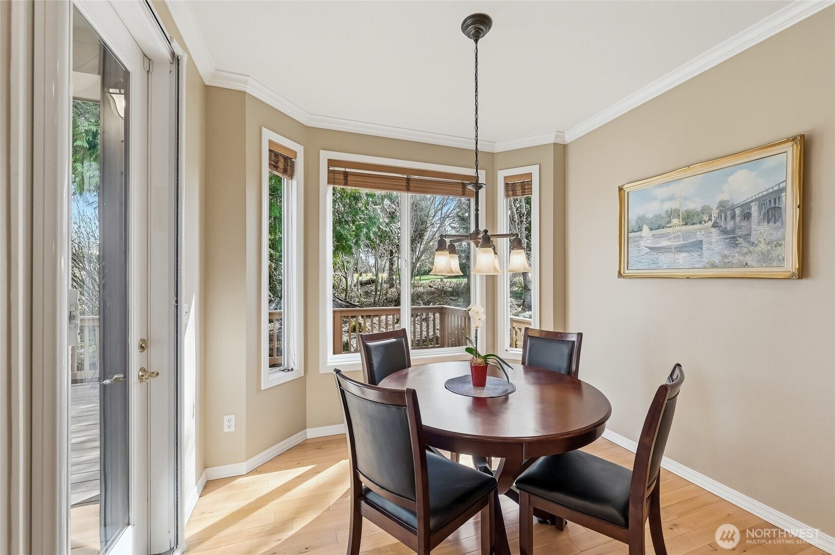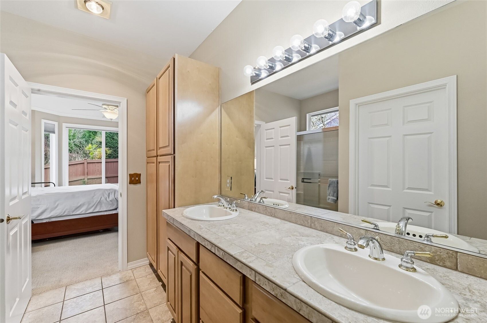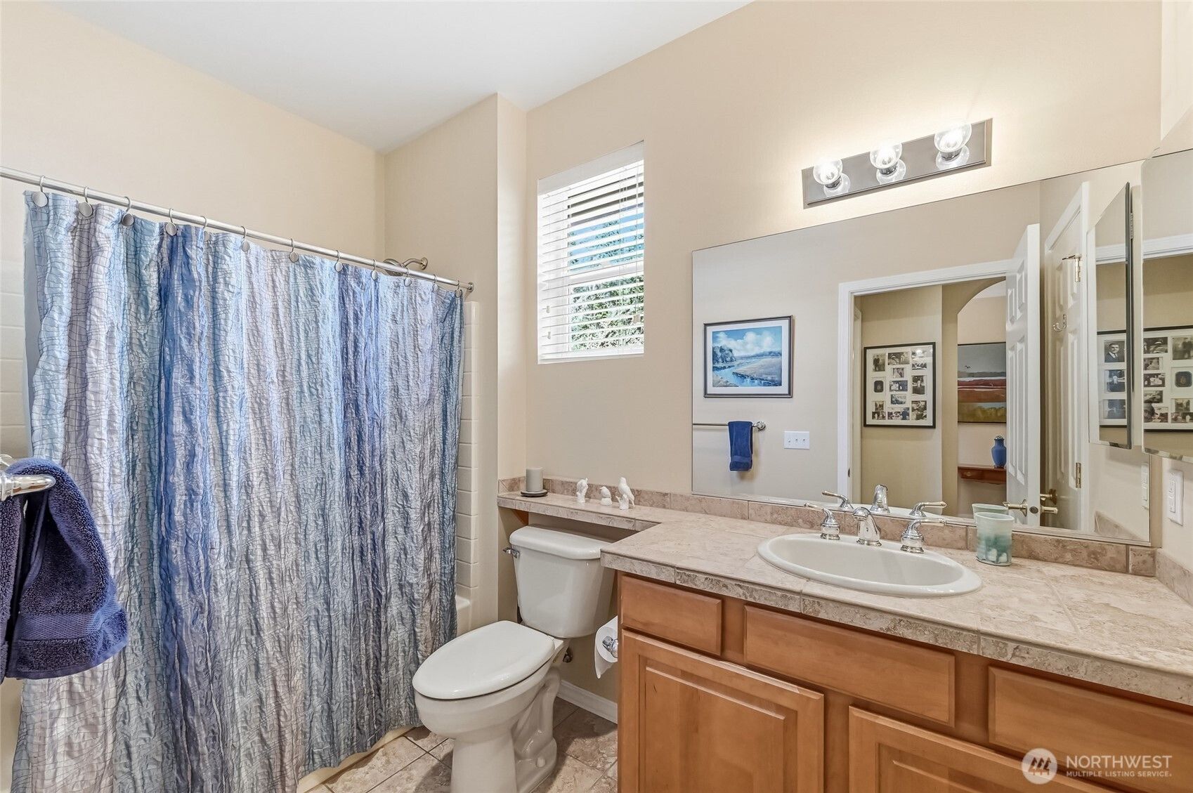 Captivating greenspace views that expand out to the golf course from this beautiful Bainbridge home. Enjoy easy living in this one level home with a peaceful & private setting just a couple of level blocks to the clubhouse. Warm hardwood floors run through the main living areas and there are distinctive architectural design elements such as crown molding, the curved wall and four panel skylight. The great room works perfectly for today’s lifestyles & has a surround sound system that includes a Denon amplifier and Sony speakers. The dining room seats 12 and is a wonderful space for holiday and special occasions dinners. Island kitchen with extra cabinets + pull-out shelves, wine fridge and a convenient day desk. Handsome office with gorgeous wood bookcases, cabinets, desk spaces and glass doors. Primary bedroom w/a ¾ bath, linen cabinet & walk-in closet w/organizers. Guest bedroom & full bath. Brand new W/D plus a utility sink in the laundry room. Generous garage w/work bench and shelving. Fully fenced backyard, nice deck and brick patio w/an included gas BBQ. New attic insulation, H20 tank & recirc hot water pump. Air con for hot summer days. A short jaunt to the clubhouse, the hub of Trilogy activities! Pre-inspected. Ages 55+
