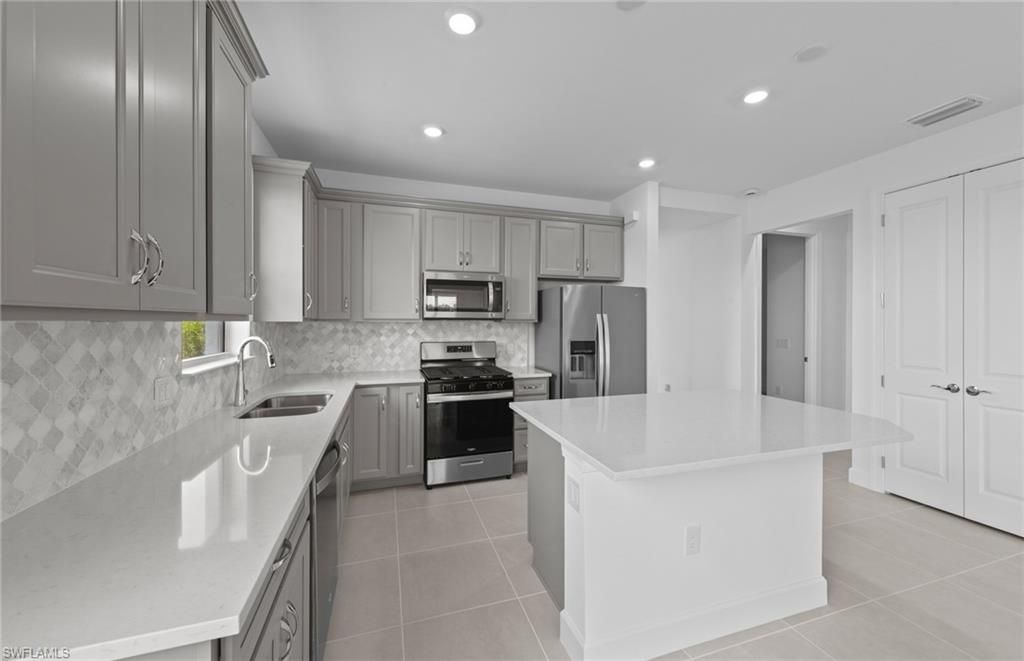 This Ellenwood floorplan is an attached villa featuring 2 bedrooms, 2 bathrooms, and a versatile den, thoughtfully designed for modern living. Upgrades include an outdoor kitchen pre-plumb, laundry room cabinets, stone gray cabinetry paired with quartz countertops, and 22"×22" tile flooring throughout. The home also offers 8' interior doors, upgraded 5" baseboards, a smart home package, and sits on an oversized corner lot. Additional features such as a tile roof and impact-resistant windows provide durability, energy efficiency, and peace of mind. This beautifully appointed villa offers both style and functionality in a highly desirable layout. TerraWalk is a gated community located in Babcock Ranch with a private 8 acres amenity campus featuring internal walking trails throughout the community, pool with spa, fire pit lounge, pickleball courts, tennis courts, bocce ball courts, event lawn, dog park, clubhouse fitness center, exercise studio, locker rooms, card rooms, large community room, catering kitchen, indoor/outdoor social lounge, plus an outdoor bar and grill. Residents will enjoy expansive green space, abundant amenities, and utility-scale solar generation.