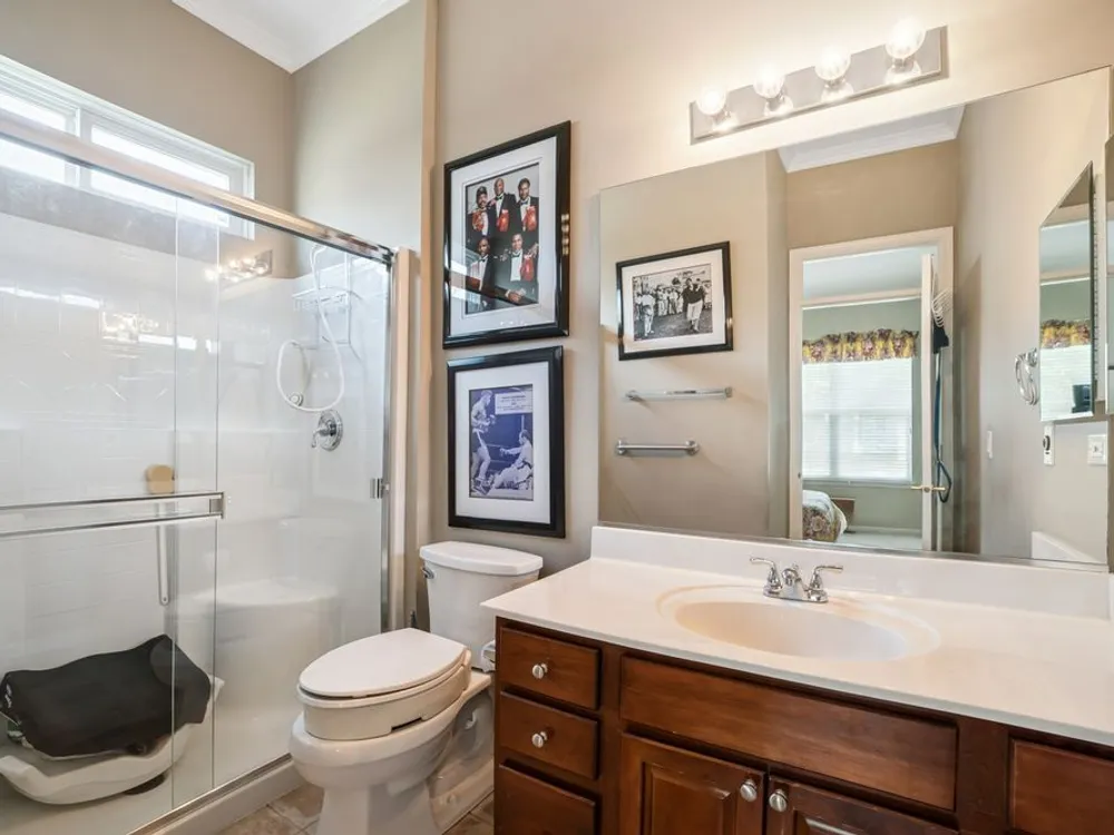 - Bedroom on Main Level, Full Bathroom, Built-in Features, Walk-In Closet(s), Bookcases, High Ceilings, Separate/Formal Dining Room, Pantry, Dining Area, Den, Game Room, Whirlpool, Separate Shower