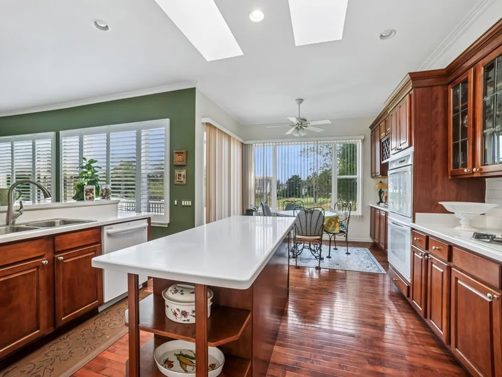 This is a VERY RARE OPPORTUNITY to own this beautiful top of the line Michigan Model, with a finished English basement, located on a premium golf course lot. This home has all the upgrades you have been looking for. The Kitchen features Cherry wood cabinets, with the extended cabinet option going into the breakfast nook. The kitchen includes a Double oven, 5 burner stove, Microwave, Refrigerator, Dishwasher, Pantry, Skylights, a Large Center Island and solid surface countertops. Beautiful Crown molding and natural lighting make this kitchen so inviting, a great space to sit and relax while enjoying the beautiful golf course views. The separate formal dining room also has a tray ceiling and cherrywood floors. The Living room includes a gas fireplace, cherrywood floors and plenty of space for entertaining, with custom shutter style window treatments. The Master Suite has the optional Bay bump out, adding even more space to this large Bedroom. The Master Bath includes a walk in shower, a large jet tub, double sinks, a vanity space and a separate water closet. The second bedroom includes its own private Bathroom with a walk in shower. The den includes a full wall of built-ins creating a large work space for your home office. The lower level has an enormous amount of space for a recreational room, the large windows in this english basement allow for plenty of natural lighting. There is a third bedroom and another full bath also located in the lower level to allow guests there own space. There is still plenty of storage, in a separate space and access to the large crawl space. The home has crown molding through out the main level. There is also a large deck, with an electric awning, which overlooks the 13th hole on Whisper Creek Golf Course. The yard is professionally landscaped with a sprinkler system, combined with your grand entrance, makes this home truly a show piece. The home also includes a home security system. The spacious 3 car garage is heated. There is a home warranty on the property that is valid until 10-2026, it is transferable to a new owner. The home is being sold as is.