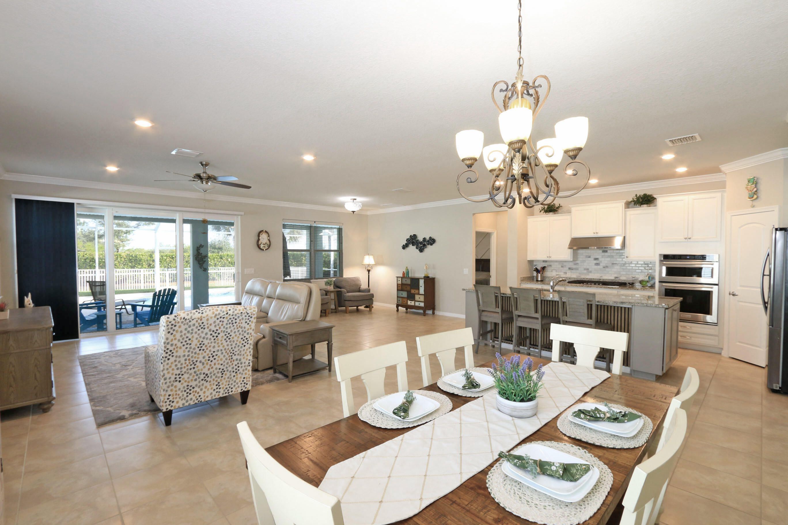 Gorgeous Extended Summerwood Model Pool Home in Del Webb at Tradition. Why wait to build when this home is ready to move into. Huge Open Floor Plan. This 3 bedroom plus den home boasts an upgraded kitchen with built ins, extended island, pull out drawers and large pantry. The Great Room is perfect for entertaining. 65 inch mounted TV in Livingroom stays. The Master bedroom is so inviting with a decorative accent wall along with a Master Bath that has a wall with shiplap and custom mirrors over the dual sinks. Enjoy peace while relaxing on your screened patio and pool area. Fenced backyard perfect for pets. Active 55+ Community with Lifestyle Director, 2 Pools, Gym, Pickleball, Bocce, Tennis, Walking Trail, Dog Park and lots of clubs and shows to enjoy.