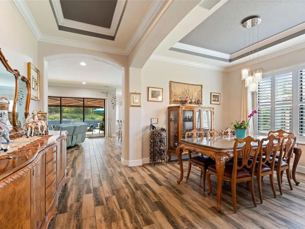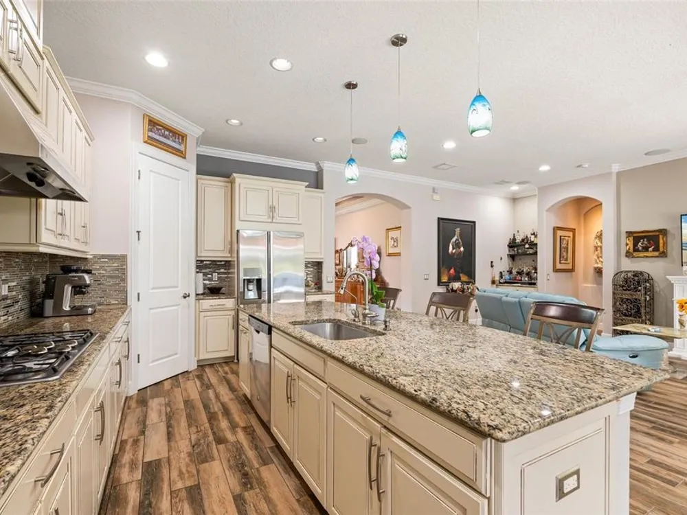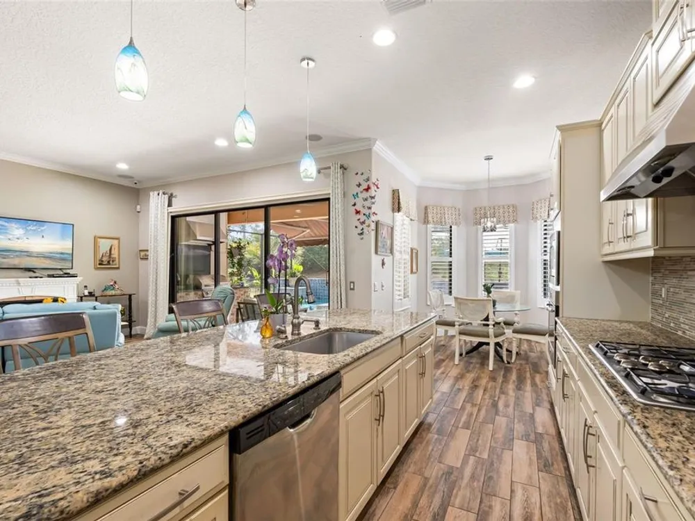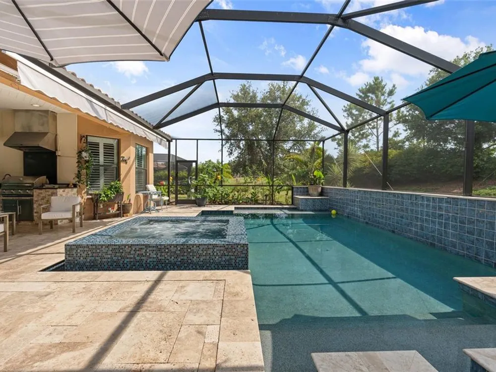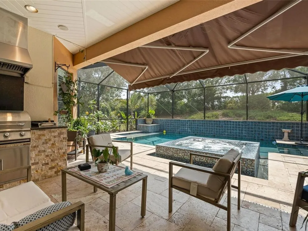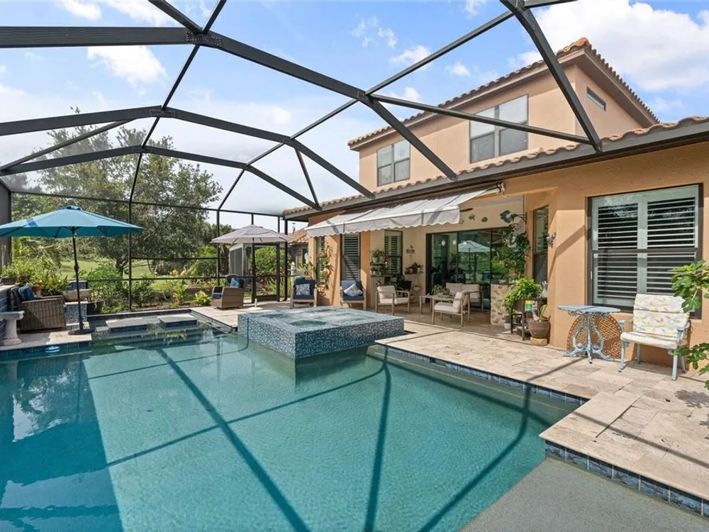Stunning Trevi Model in Esplanade Golf and Country Club, Lakewood Ranch! This meticulously maintained 3-bedroom, den, 3.5-bath gem is for sale with no mandatory golf membership. Boasting a chef’s kitchen with top-line cabinetry, stainless steel appliances, built-in oven, five-burner gas cooktop, upgraded flooring, and elegant crown molding, plantation shutters, dry bar, and courtyard with fountain. The office/den features a built-in desk, workstation, and feature wall. Enjoy main-level master and guest suites with en-suite baths, plus a second floor with a bonus media room (wet bar with refrigerator), private additional room, and full bath. Over $280k in upgrades, including a jaw-dropping $150k heated saltwater pool with mosaic inlay, floating invisible edge, spa, multi-level planters, yoga area, and outdoor kitchen. Nestled in a world-class golf community with a practice range and competitions, residents enjoy reduced golf rates. Unwind at the poolside Baja tiki bar, resort-style pool with lounge chairs and cabanas, or torch-lit fire pit evenings—perfect for family and friends. Savor the incredible weather with cooking classes, wine tastings, and first-class dining at the culinary center. Plus, access to a spa, fitness and wellness center, pickleball, and tennis courts! Just an hour from international airports, with world-renowned Siesta Key beaches, Saint Armand Circle, and downtown Sarasota’s European flair. Don’t miss the uniquely special weekly farmer’s markets in Lakewood Ranch and Sarasota. Features central vac, private backyard, updated pool heater and remote, brand new AC (2025)—luxury living awaits!