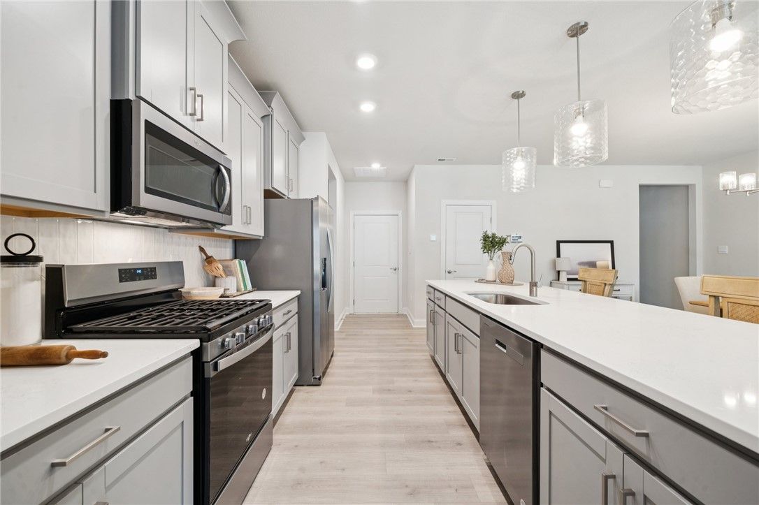 - Built-In Oven, Dishwasher, Disposal, Microwave, Tankless Water Heater