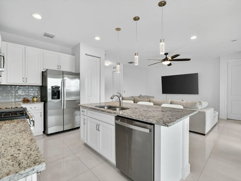 - Entry Level Living Area, Kitchen Island, Pantry, Split Bedrooms, Walk-In Closet(s), Family Room, Great Room, Breakfast Area, Kitchen/Dining Combo, Snack Bar, Primary Downstairs
