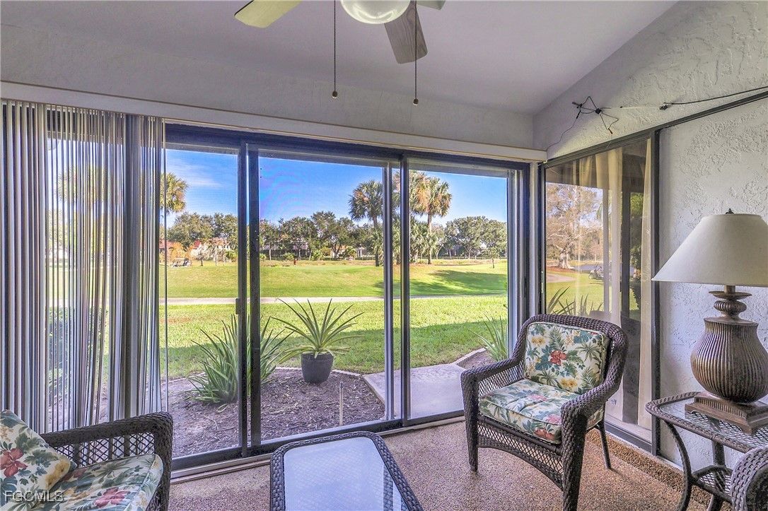 JUST LISTED Don't waste any time to check out Cross Creek Country Club villas latest offering a furnished 2 bedroom, 2 full bath with Den/Office. Well maintained, pride of ownership, light & bright overlooks the lake and golf course. Enjoy your morning coffee or afternoon martini as you watch golfers and wildlife enjoy their Paradise from your glassed in air-conditioned lanai. Roof & exterior painting was done over the past 18 monhs and the driveway just painted. All you need are your clothes & golf clubs you could enjoy Christmas golfing or going to our local beaches this year instead of shoveling 10+ inches of snow, which would you rather be doing. Cross Creek Country Club is one of the most desirable communities in all of Southwest Florida due to its proximity to local beaches, shopping, RSW airport, Spring Training Facilities, our quaint downtown River District,and great entertainment, One of the best kept secrets in Florida is living in Cross Creek Country Club,