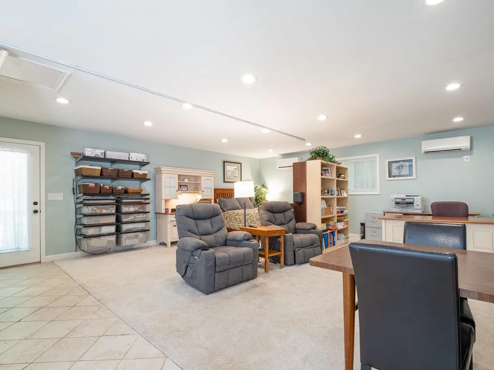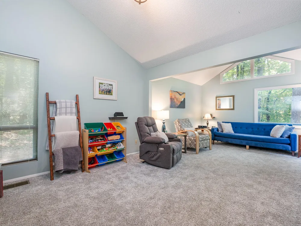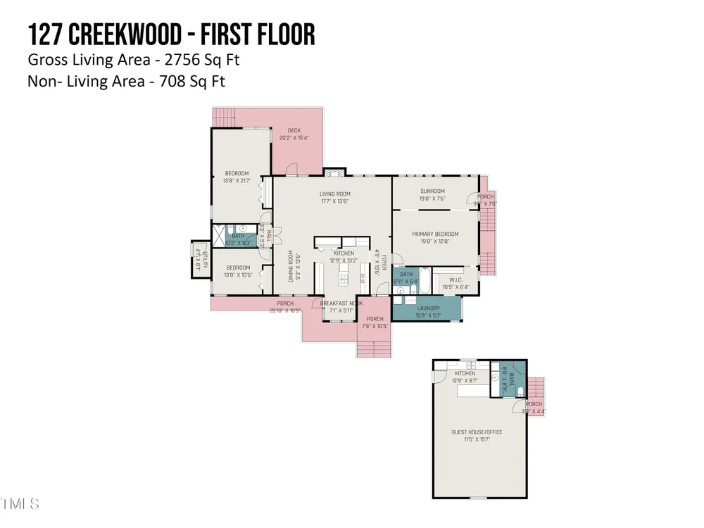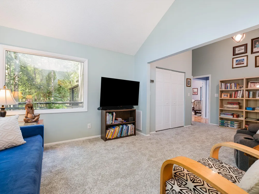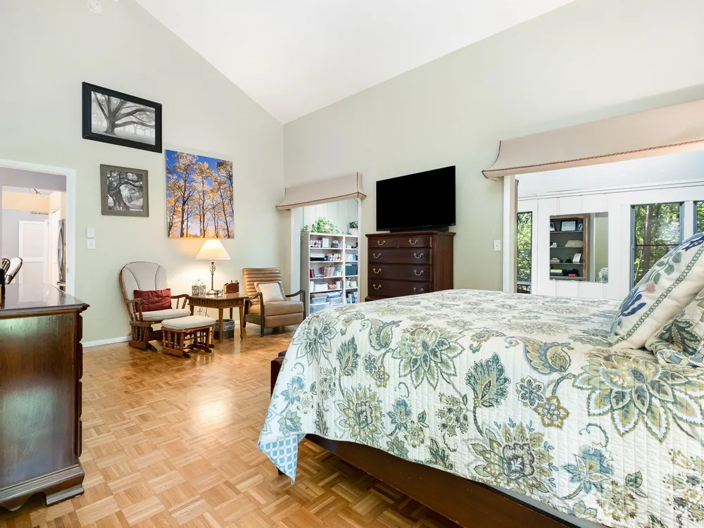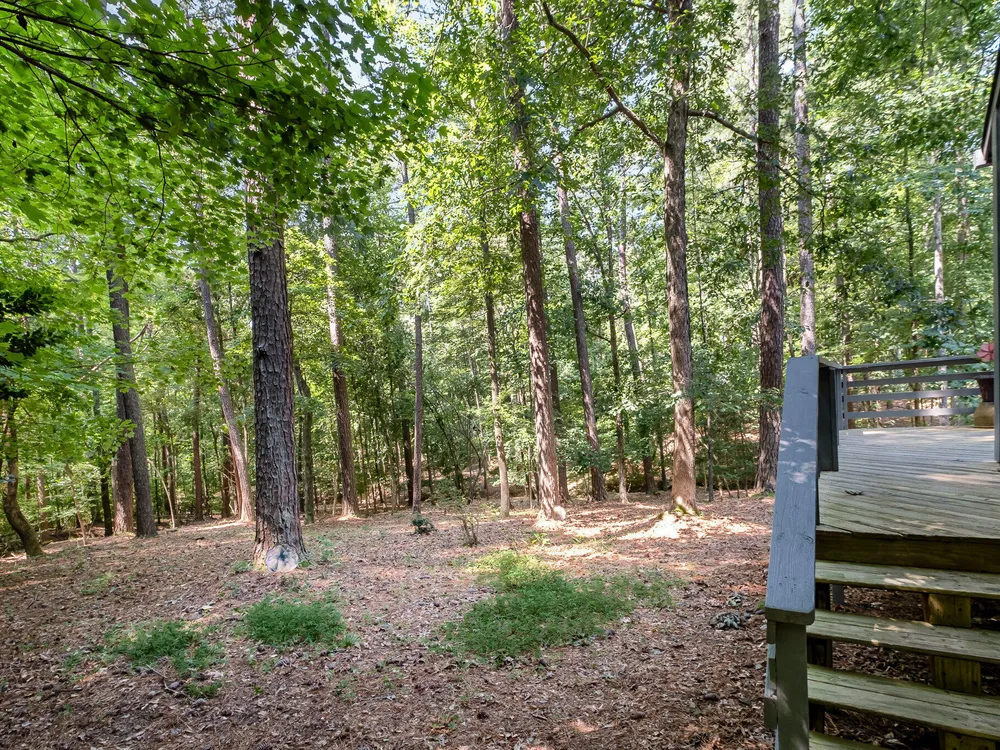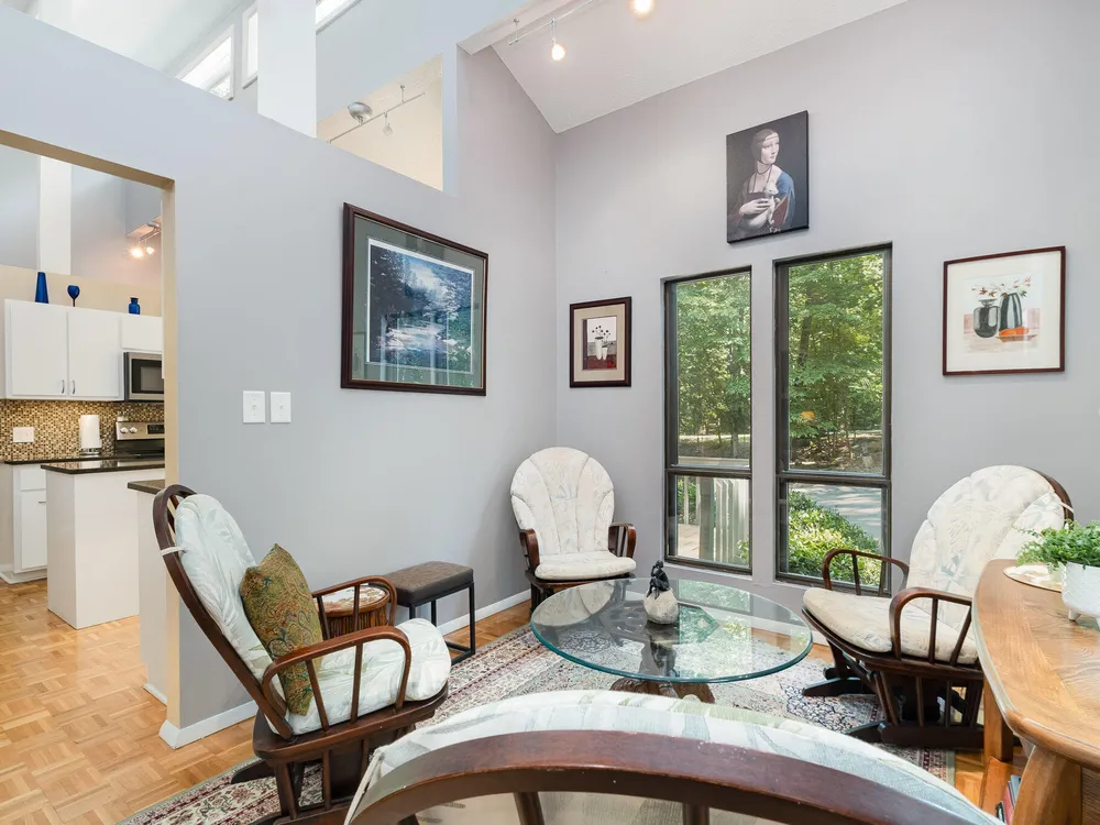One-level contemporary home with a separate guest house/office/studio on a .9-acre lot in the ''historic district'' of Fearrington Village. This home blends into a wooded, natural setting and it has great privacy and views. Beautifully maintained and updated. The main house has an entry foyer, large living room with a wall of built-in shelving, fireplace, and vaulted ceiling with clerestory windows. The dining room can be at one end of the living room or in another space currently used as a sitting area adjacent to the kitchen. The kitchen features a well-organized pantry, an island, and a breakfast nook with a glass door that opens to the front deck. The primary bedroom suite is at one end of the house and includes a vaulted ceiling, private bath, walk-in closet, and a sunroom. The laundry room is conveniently located near the primary bedroom closet and provides a lot of storage space. The other two bedrooms and full bath are at the opposite end of the house. One of these bedrooms is quite large with room for a sitting area or study. There's a deck at the back of the house overlooking the woods. The separate guest house/office/studio has a full bath and a kitchenette. There is a walk-in area under the main house for storage and workshop space. Exterior storage closet for garden equipment. The main house has a 3-zone HVAC system, and the guest house has two mini-split HVAC units. Tankless water heater. Handicap accessible with cleverly placed ramps at the front entry deck and guest house.