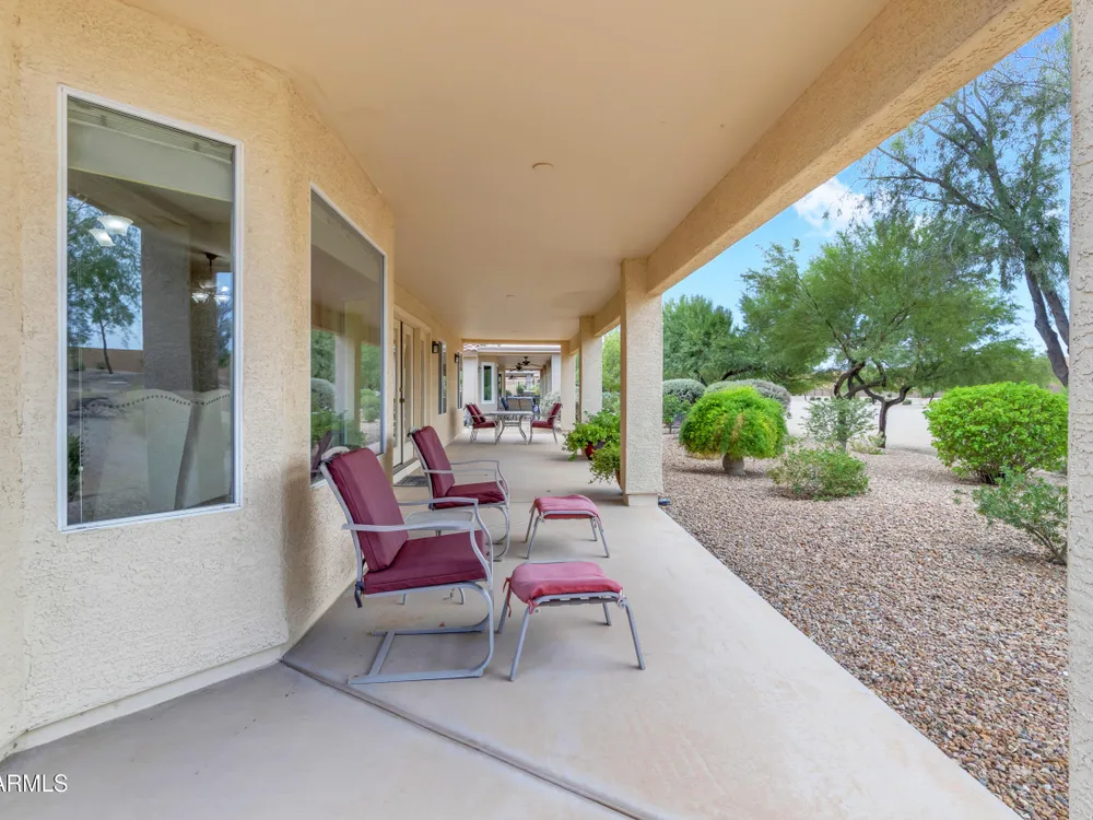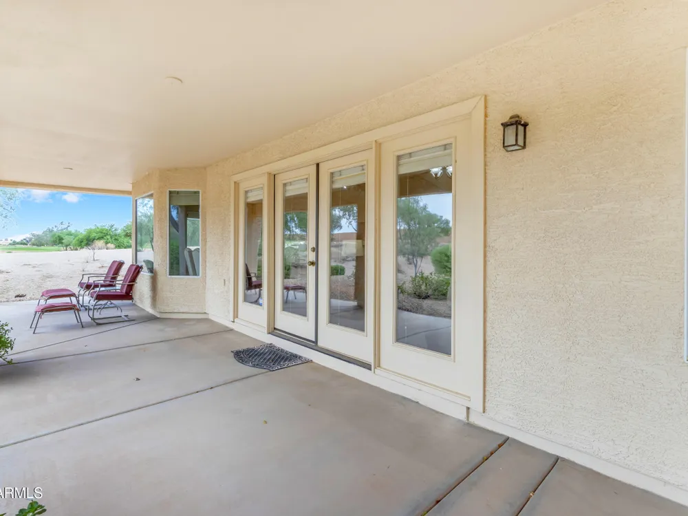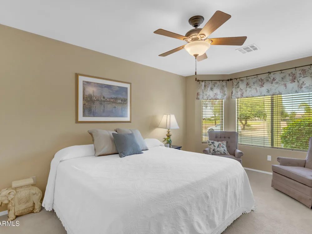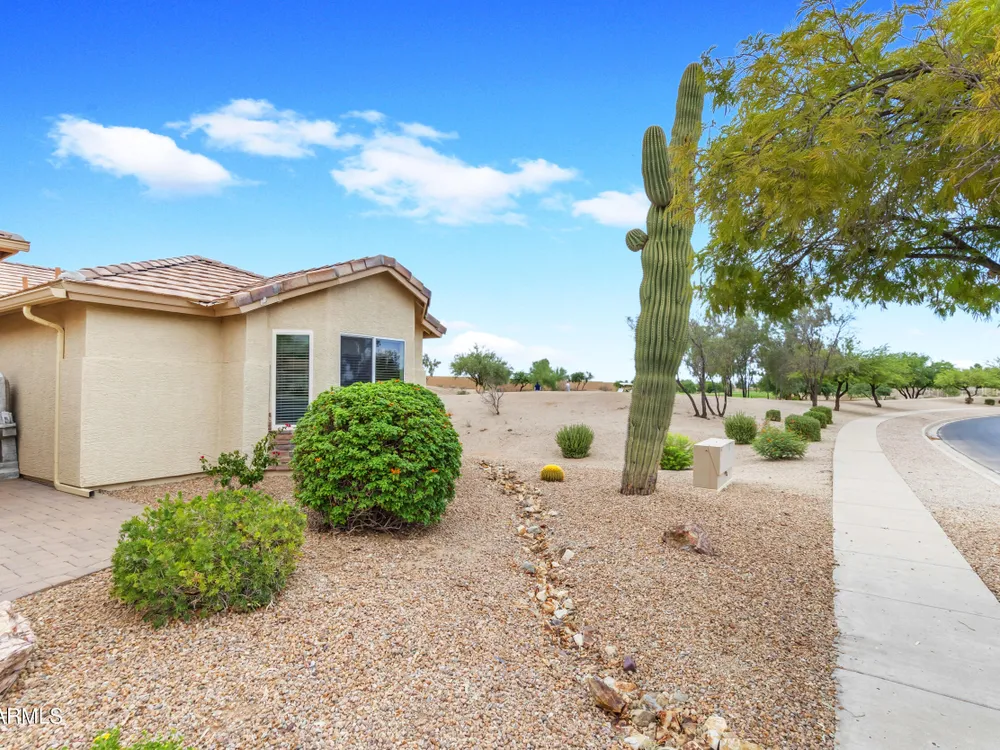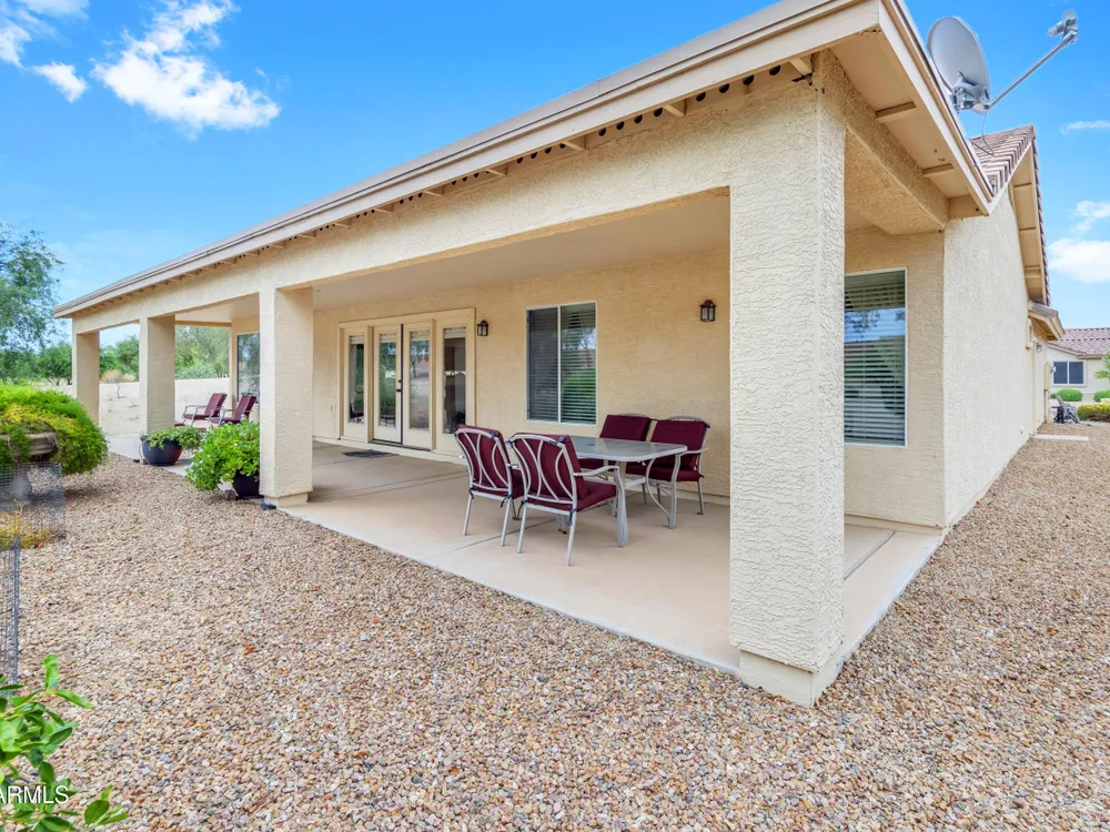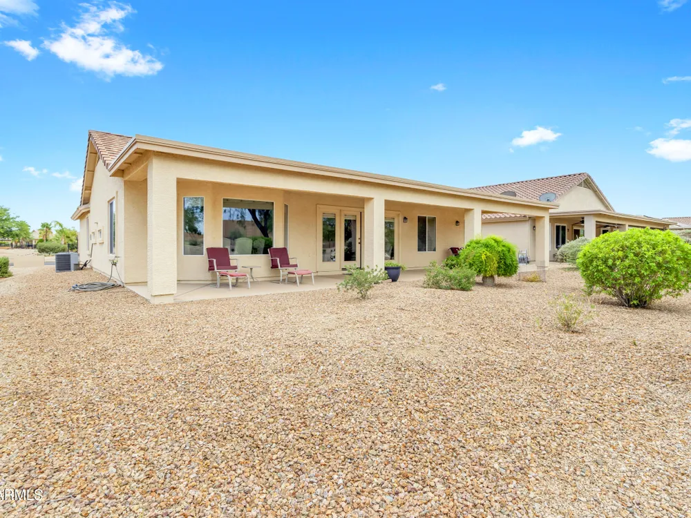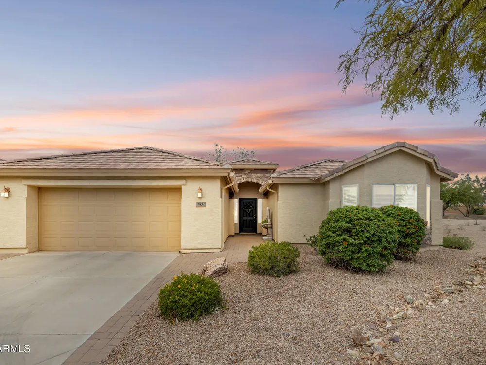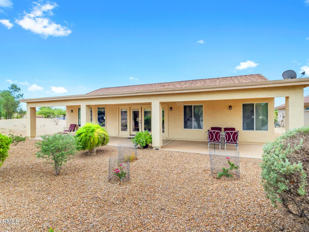 Welcome to your perfect retreat in Mission Royale, Casa Grande's premier active adult community. This 1,989 sq ft, 2 bedroom, 2 bathroom, golf course view home offers the ideal blend of comfort, upgrades, and a vibrant lifestyle just steps from your door. Step inside to find quartz countertops, stainless steel appliances, and a bright, open-concept kitchen ideal for entertaining. The updated master bathroom features a beautifully tiled walk-in shower, while the newer HVAC system and water softener add peace of mind. The extended length epoxy-coated garage also provides plenty of space for hobbies or golf cart parking. Beyond the home, Mission Royale offers an unbeatable lifestyle: take a dip in the resort-style heated pool, stay active with pickleball and tennis courts, get fit at the well-equipped fitness center, or socialize at the community clubhouse with a full calendar of events, classes, and outings. And of course, enjoy convenient access to the on-site 18 hole championship golf course just outside your door. Whether you're looking to unwind or fill your days with activities, this home and community offer the best of both worlds. Come experience the Mission Royale lifestyle today!