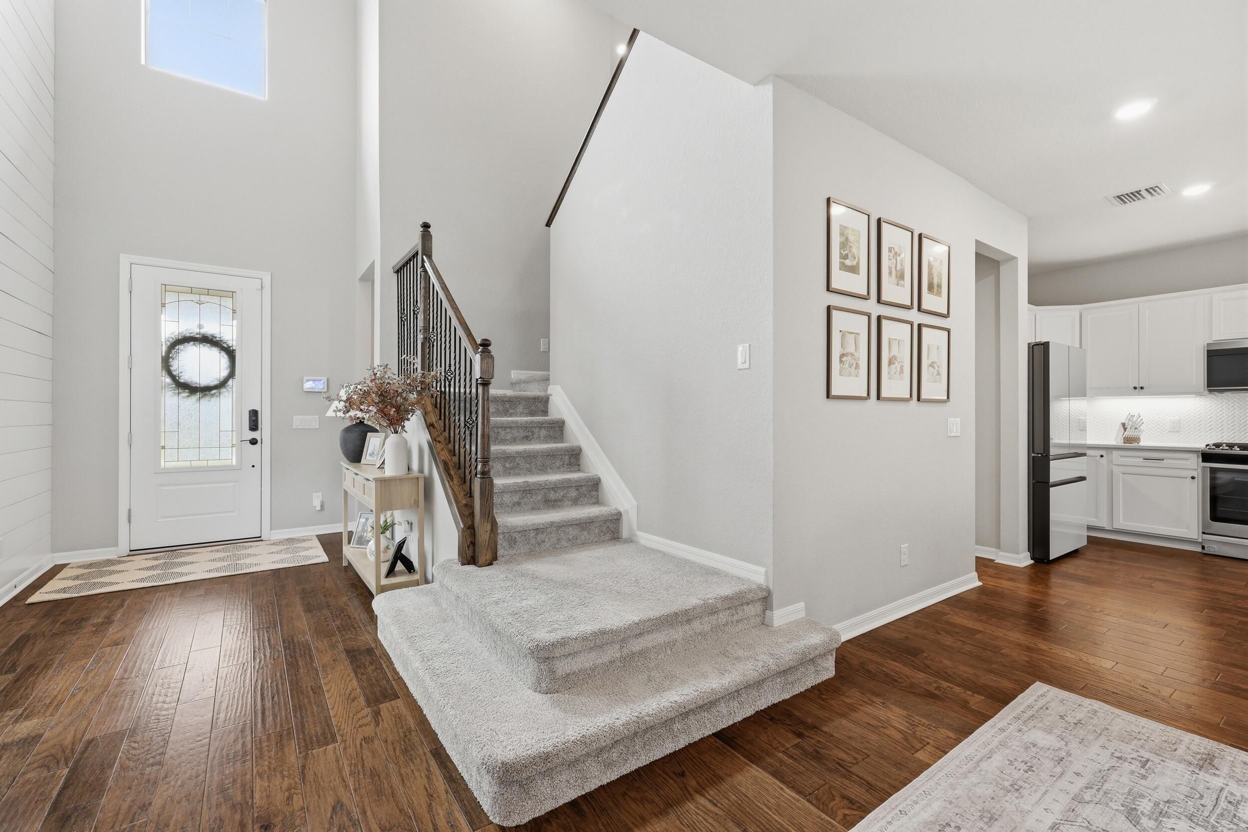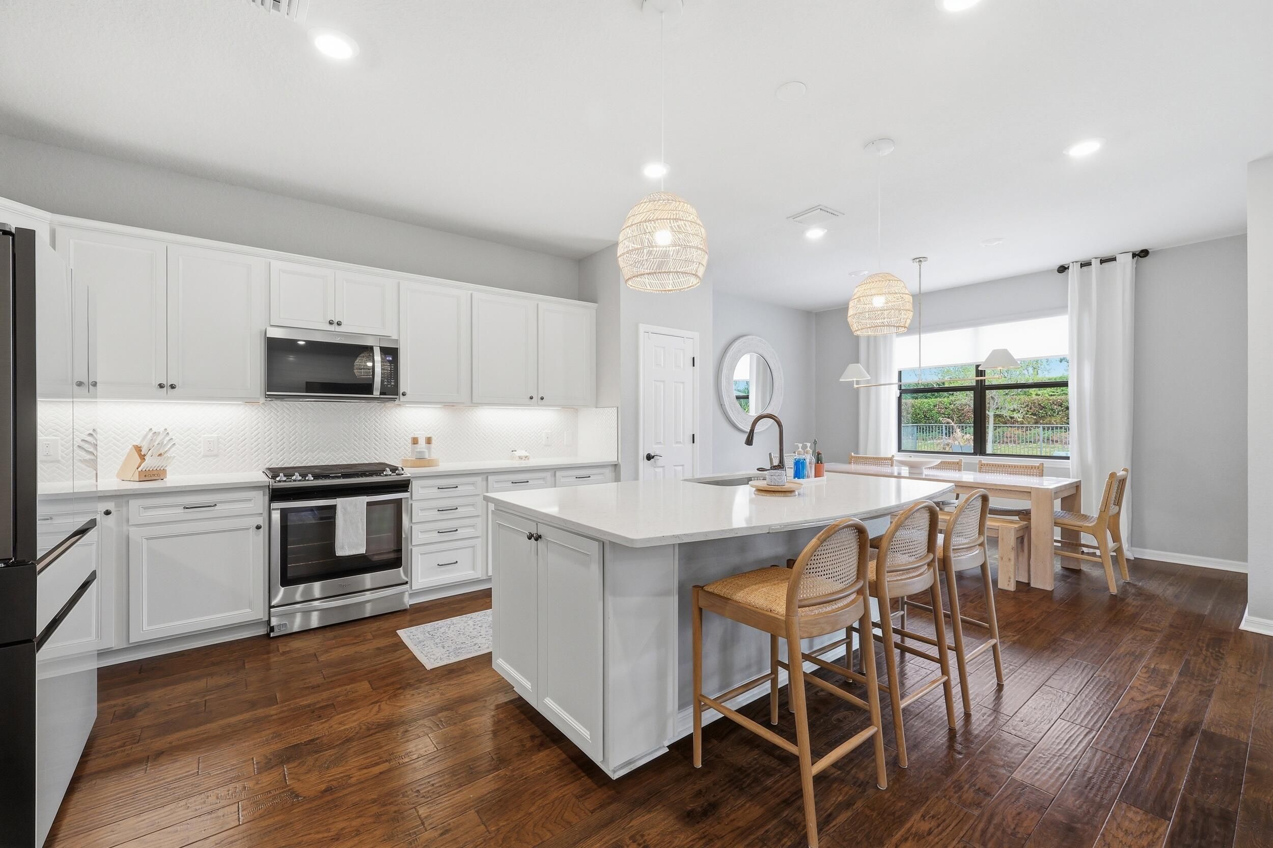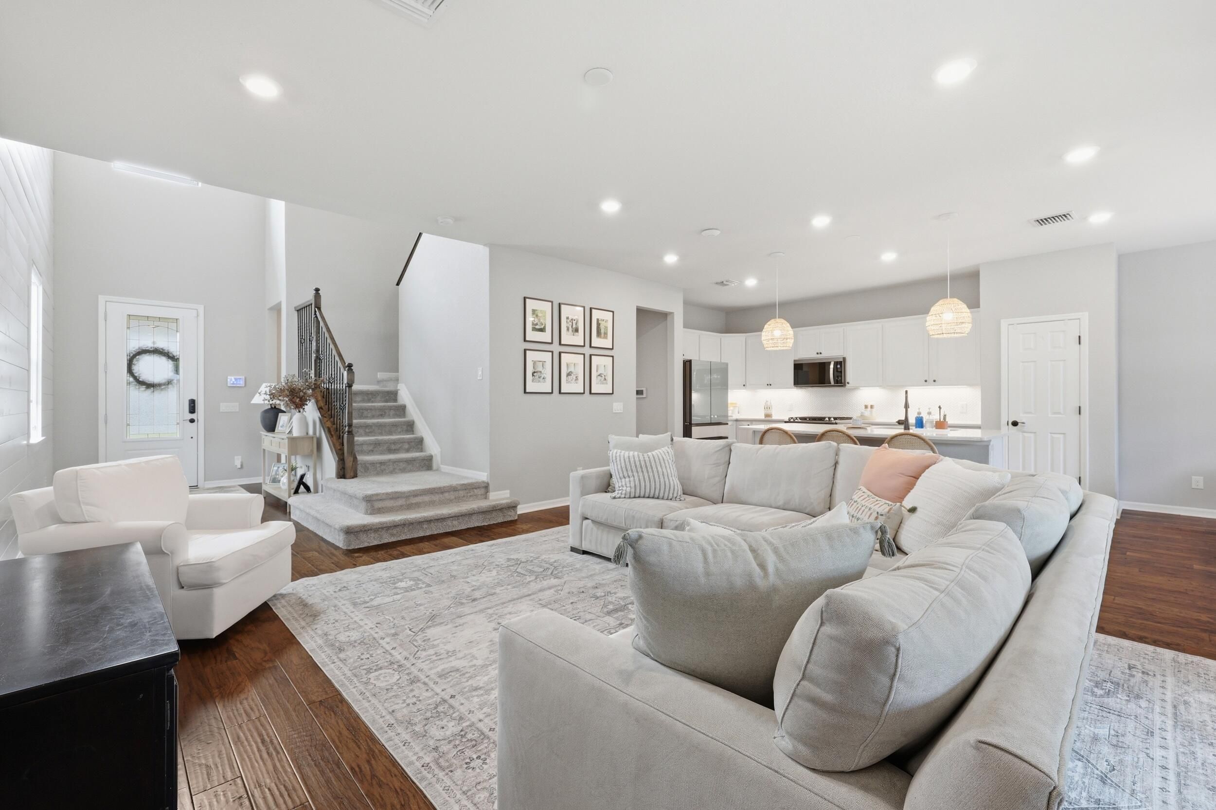 Perfectly positioned in Veranda Gardens, this upgraded home offers the ideal blend of convenience, style, and flexible living, just minutes from I-95, the Florida Turnpike, and everyday essentials. This beautifully designed residence offers 3 bedrooms, 2.5 bathrooms, a dedicated office, an upstairs loft, and 2,445 square feet under air, thoughtfully laid out for both functionality and everyday comfort. From the moment you enter, you are welcomed by a stunning shiplap accent wall and an upgraded staircase with decorative metal spindles, setting the tone for the designer finishes throughout. The kitchen is the heart of the home, featuring white shaker cabinets with crown molding, quartz countertops, a decorative backsplash, and a large center island overlooking the spacious family room, perfect for entertaining or relaxed day to day living. Impact windows and doors provide peace of mind, while quality upgrades throughout elevate the overall feel. Upstairs, you will find a versatile layout with all bedrooms, a spacious loft ideal for a media room, home gym, or additional living space, and a beautifully remodeled laundry room with cabinetry and a utility sink, conveniently located where you need it most. Step outside to your private backyard retreat, where a sizable investment has been made in creating a low maintenance turf oasis, ideal for pets, entertaining, or simply enjoying the outdoors without the upkeep. Built in 2019 with a durable flat tile roof and a 2022 water heater, this home offers modern construction and peace of mind. Veranda Gardens residents enjoy resort style amenities including a clubhouse, pool, fitness center, tennis, pickleball, and basketball courts, creating an active and social lifestyle for all ages. Perfect for buyers seeking space, flexibility, and a prime location, this home delivers the lifestyle today's Treasure Coast buyers are searching for. Enjoy a true neighborhood feel with The Shoppes at Veranda Falls just outside the gates, offering a Publix, restaurants, nail salon, ice cream shop, and more right at your fingertips. Schedule your private showing today and experience everything this home has to offer.