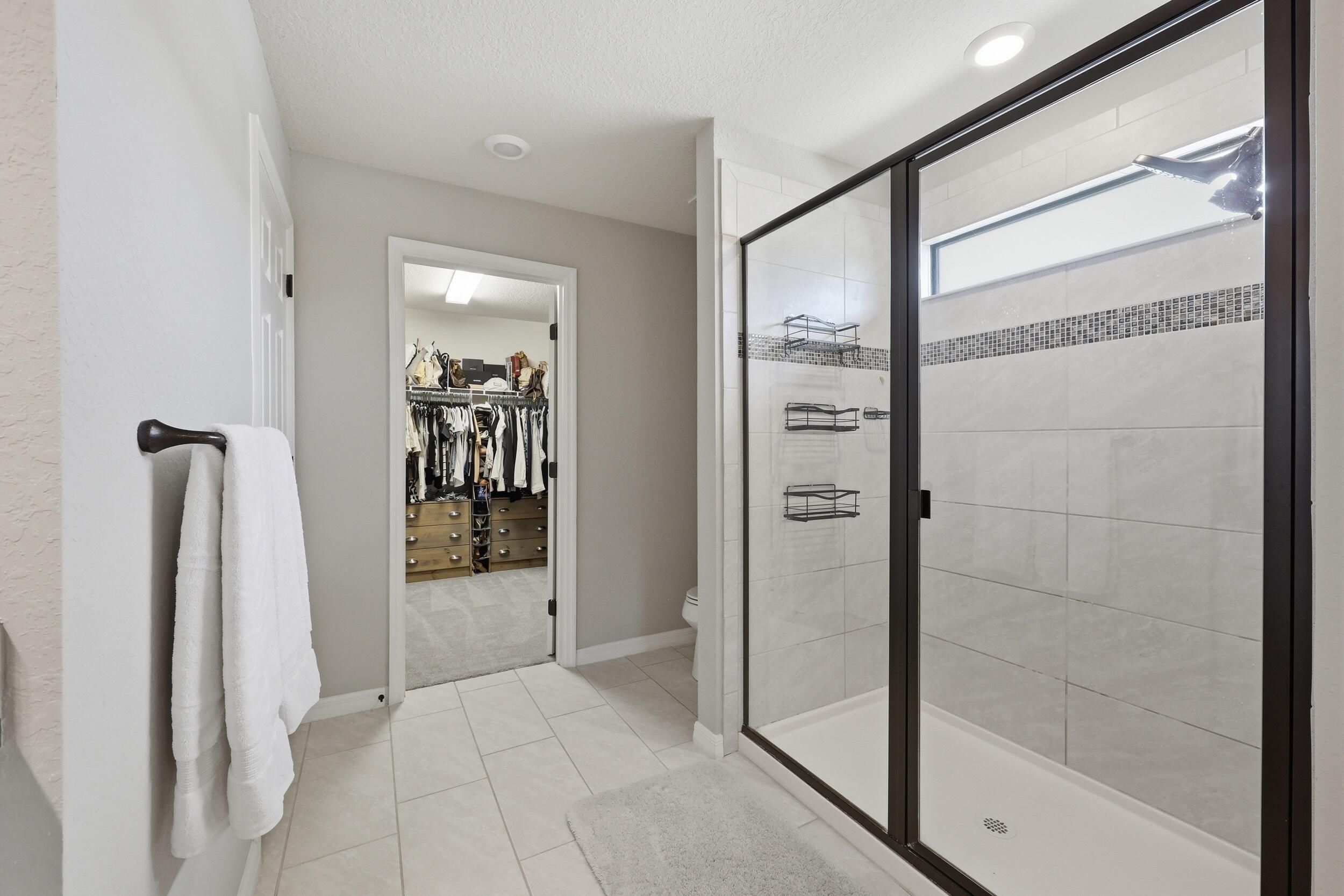 - Entrance Foyer, Kitchen Island, Pantry, Walk-In Closet(s), Split Bedrooms, Upper Level Living Area, Impact Glass, Living/Dining Room, Eat-in Kitchen, Entry Level Living Area, Dual Sinks, Upper Level Primary, Separate Shower