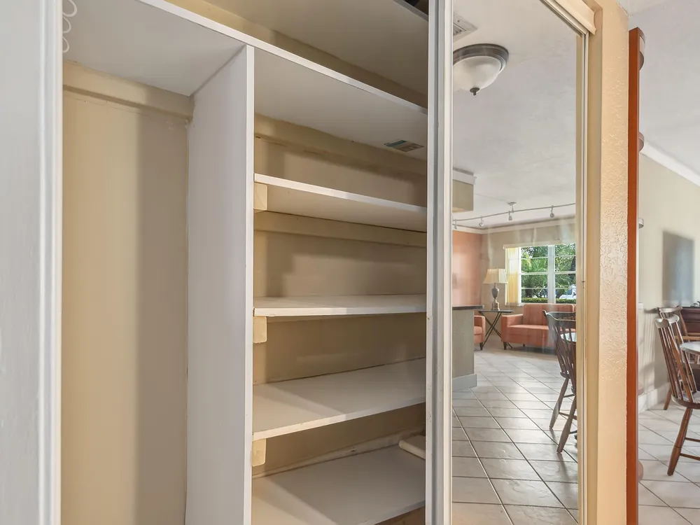 Very clean and bright 1BR, 1.5 bath condo on the 1st floor of a 4 story building in Century Village 55+ community. Kitchen and bathrooms were updated and the apartment is ready for the new owner to enjoy. Furniture is included in the sale. Large, almost 100 sq ft porch with windows. There are 2 laundry rooms on each floor. No renters allowed in this building. Century Village is one of the best 55+ communities in Florida, with resort style living, lots of amenities, including over a 1000 seat clubroom to watch shows and movies, indoor and outdoor swimming pools, courtesy bus service to get around community and even outside, medical facilities, beauty shop, tennis, boating and more. Close proximity to PBI airport, restaurants, shops and beaches.