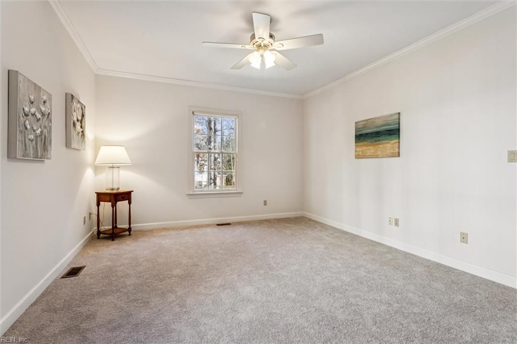 Beautifully custom-built brick home in the gated Ford?s Colony community, offering timeless Williamsburg elegance. This 4-bedroom, 2.5-bath residence with a finished bonus/5th bedroom room spans 2,830 sq ft & features a spacious first-floor primary suite with custom artwork & a spa-like bath. The main living areas showcase hardwood floors, refined trim work, a formal dining room, & a bright vaulted family room with gas fireplace & plantation shutters, opening to a charming sunroom with skylights. The kitchen offers newer appliances, granite countertops, abundant cabinetry, & a center island with new lighting. All-new carpet and fresh paint throughout complete this exceptional home. -new carpet & fresh paint throughout complete this exceptional home. Home Generator for convenience & newer HVACs (2023 and 2019).
