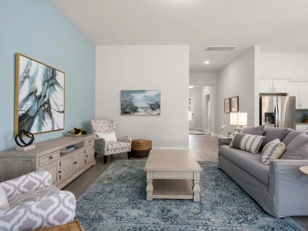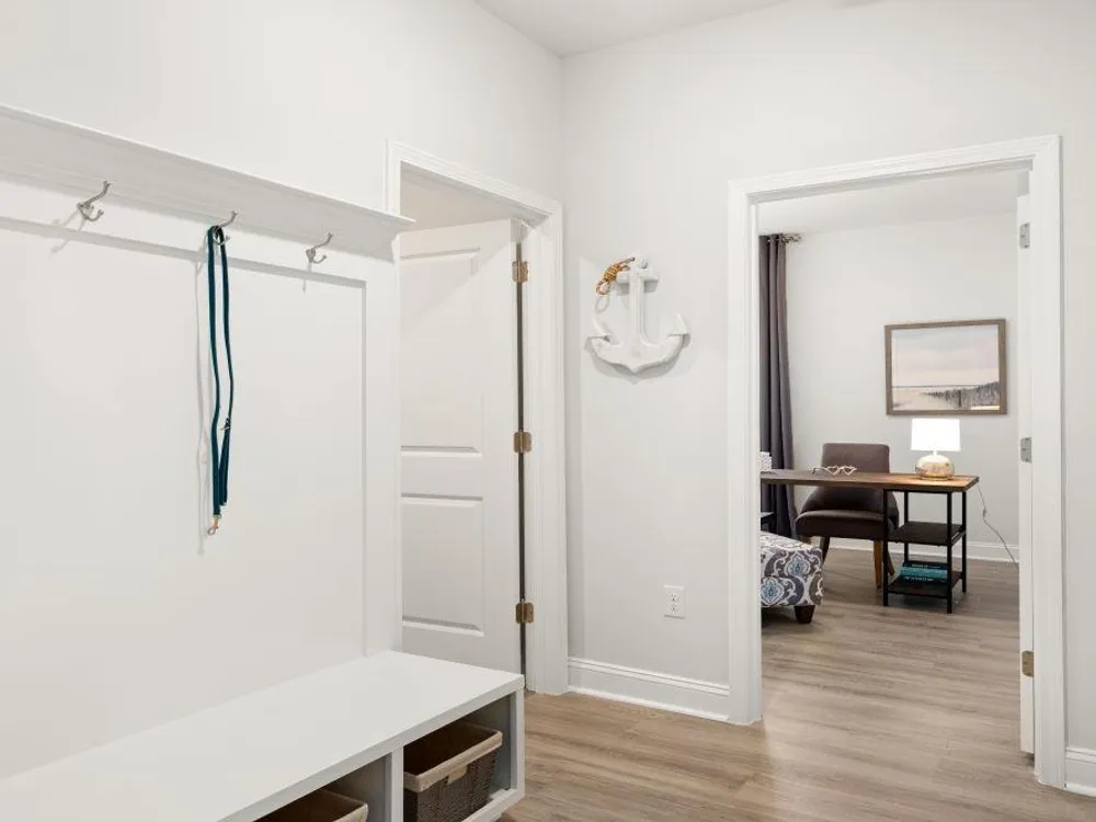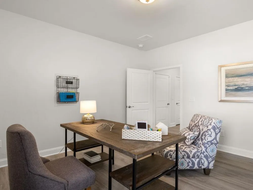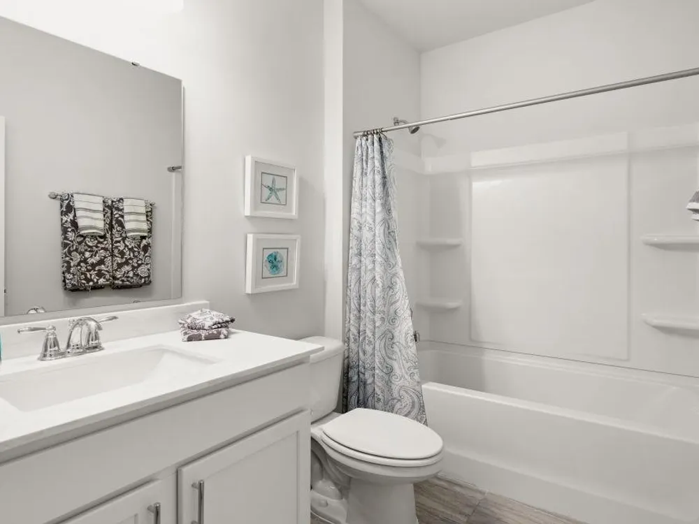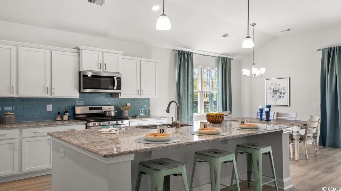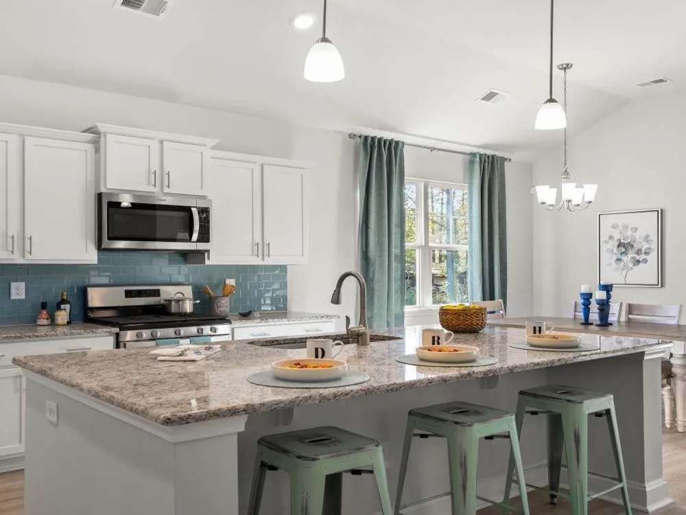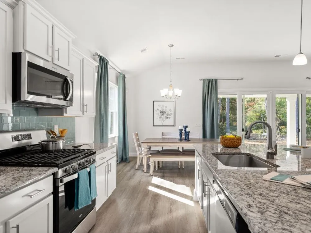 The desirable Litchfield plan is a masterfully designed single level home with a great open concept kitchen, living room, and dining area with 11' ceilings. Access to the spacious rear covered porch through a 4 panel sliding door just off the dining area creates a wonderful outdoor space to relax and unwind. The 4 panel slider also allows natural light to fill the main living area. The kitchen features include a corner walk in pantry, stainless steel appliances, granite countertops, and a large island with breakfast bar. Located at the back of the home, the private owner's suite with a tray ceiling offers dual walk-in closets, a separate linen closet, double vanity, and a 5' tile shower. At the front of the home are three secondary bedrooms creating separation from the primary suite. This is America's Smart Home! Each of our homes comes with an industry leading smart home technology package that will allow you to control the thermostat, front door light and lock, and video doorbell from your smartphone. *Photos are of a similar Litchfield home. (Home and community information, including pricing, included features, terms, availability and amenities, are subject to change prior to sale at any time without notice or obligation. Square footages are approximate. Pictures, photographs, colors, features, and sizes are for illustration purposes only and will vary from the homes as built. Equal housing opportunity builder.)