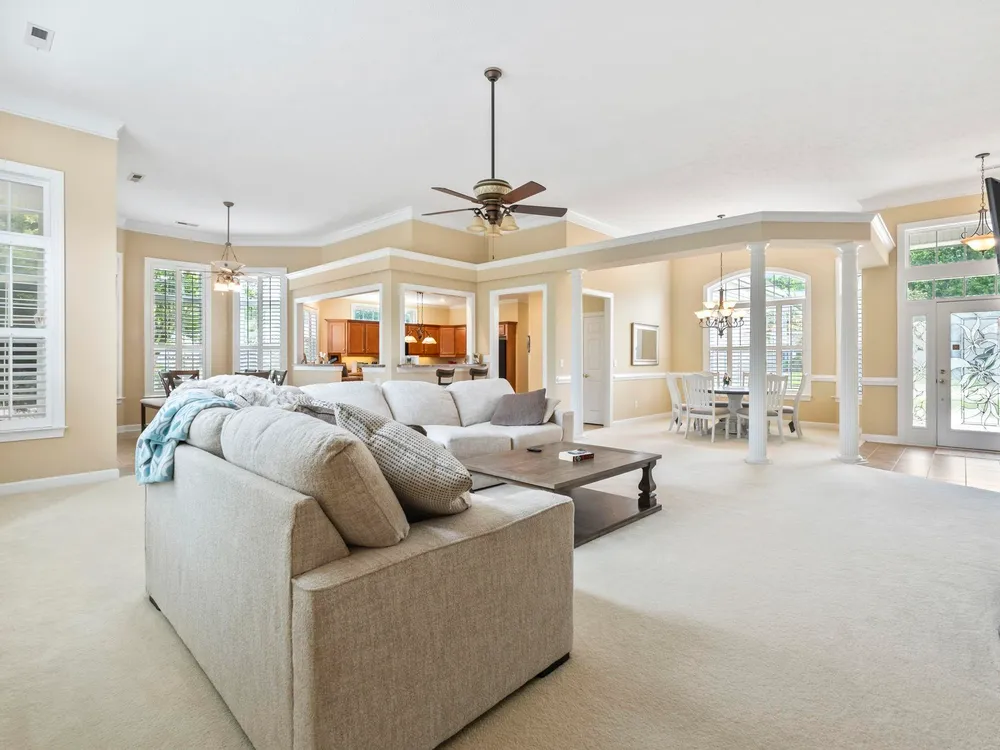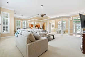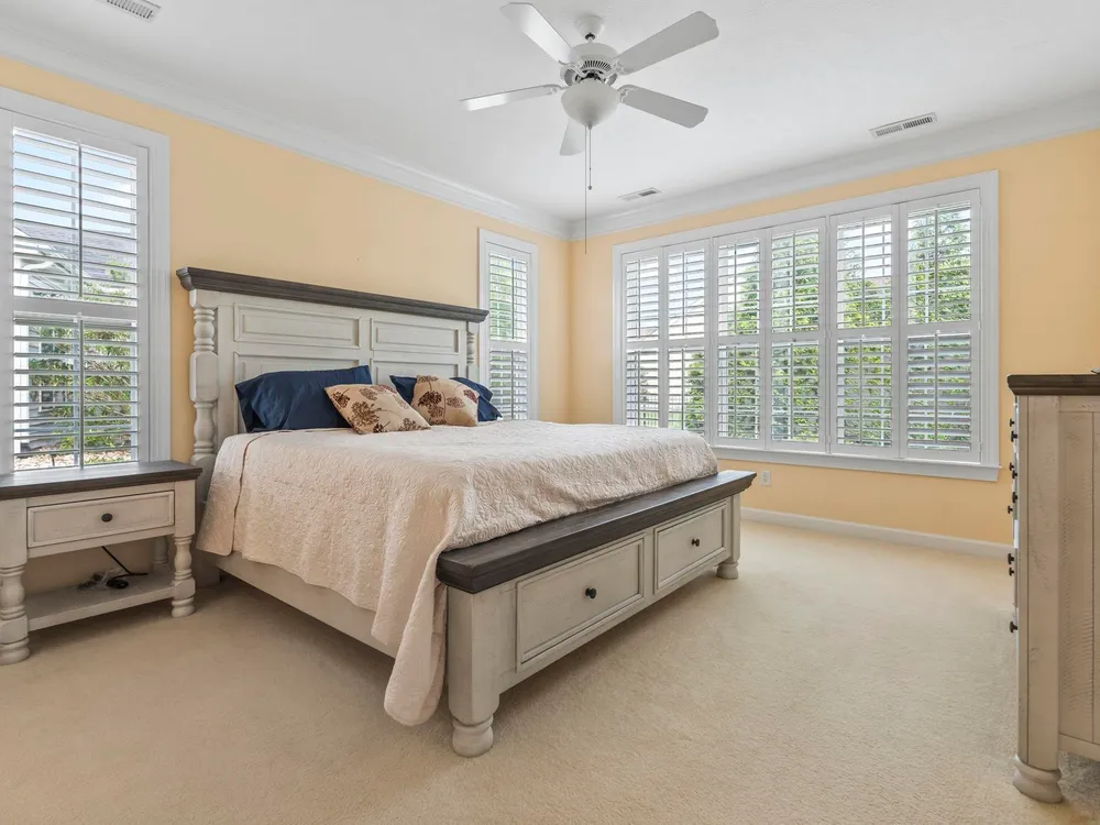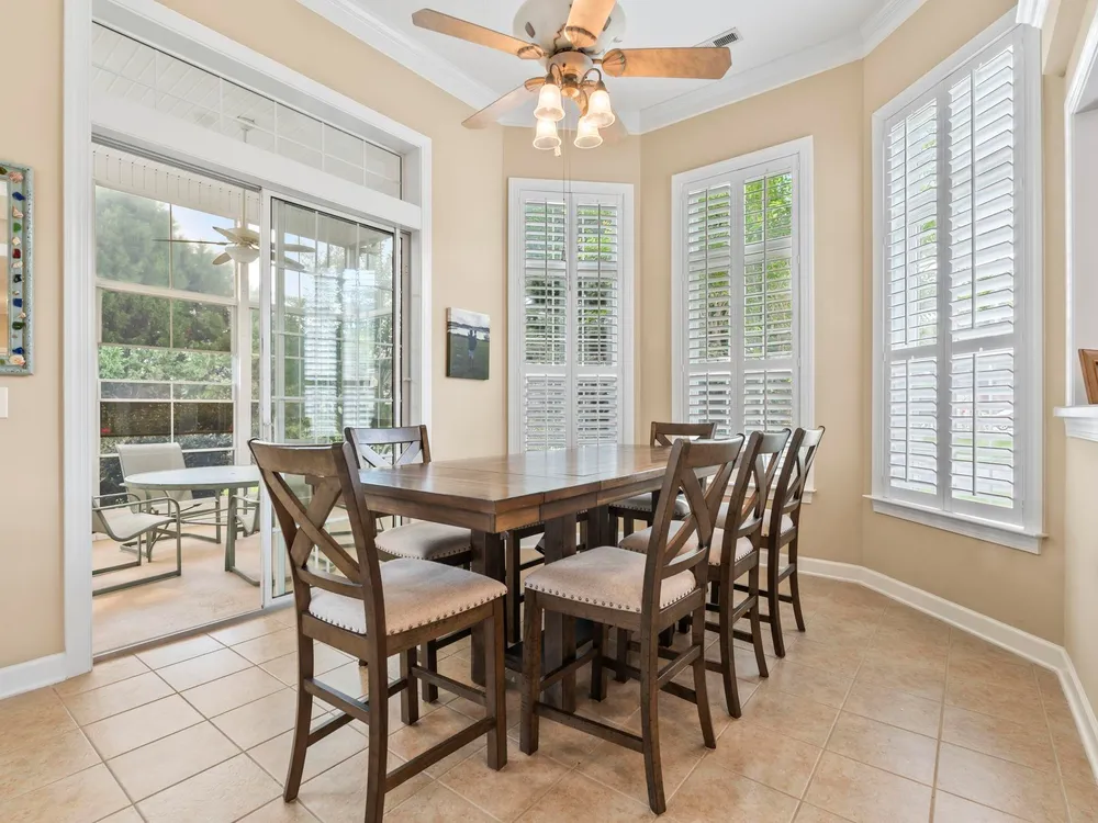 Welcome to this popular Brookhaven model located in the gated community of The Bays in the Willow Bay development on a corner lot with a 2 car garage. Bright and airy describes this spacious open floor plan that is perfect for entertaining with 12 foot ceilings, decorative molding and plantation shutters throughout. Center island in the kitchen with plenty of counter tops. Roof replaced in 2021. The finished bonus room could be used as a 4th bedroom with an attached huge storage room located on the upper level. Spacious porch with EZ Breeze windows are perfect for year round use which overlooks your patio and rear yard. There is also natural gas in the street if you which to convert. The community offers 2 pools, clubhouse with exercise room, full kitchen and fireplace. There is an outdoor pavillion with fireplace and full kitchen. There are tennis/pickleball courts, playground, soccer field + more. Only a few miles to the area beaches and the Marsh Walk. Golf cart ride to stores and TPC golf course. All measurements to be verified by buyers.