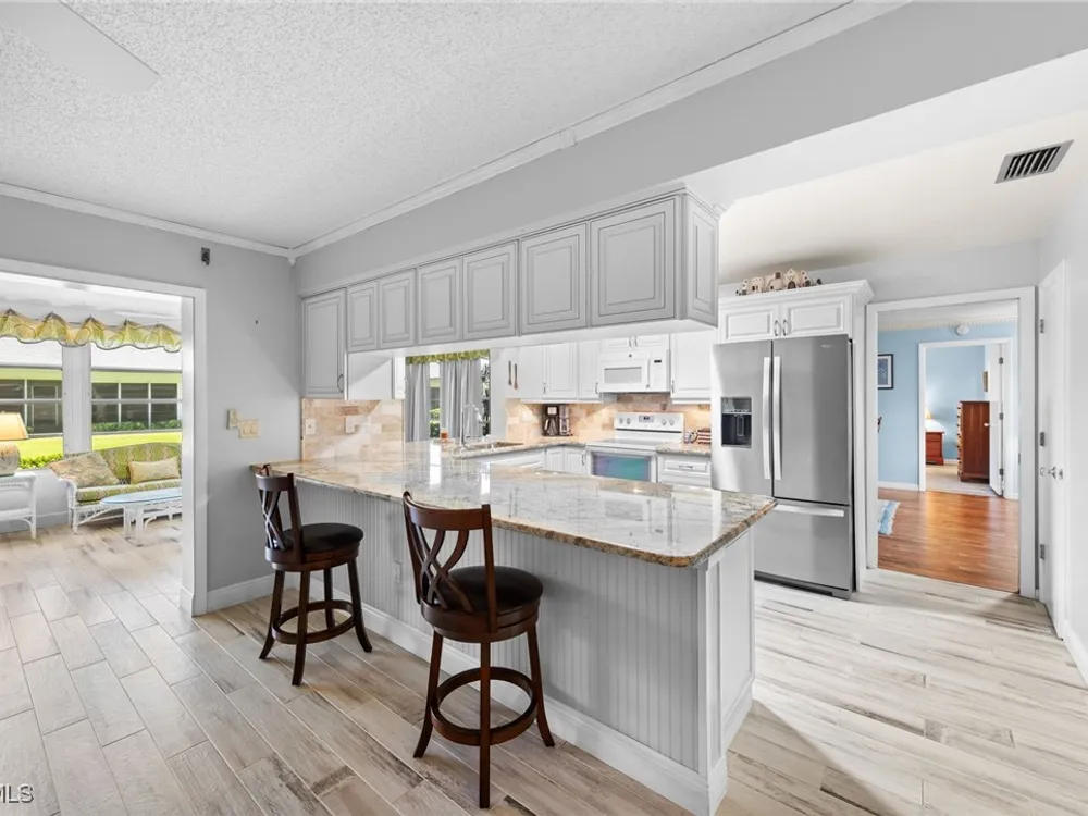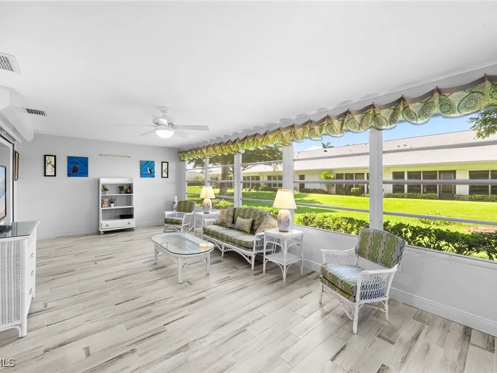 Your Southwest Florida Retreat – Updated Villa Just Minutes from the Coast! Encompassing comfort, convenience, and community, this updated 2-bedroom, 2-bathroom villa in the 55+ Brandywine neighborhood of Myerlee offers 1,533 sq. ft. of seamlessly designed living space. The primary suite features dual sinks, a walk-in shower, and a spacious walk-in closet, while the guest bedroom also with its own walk-in closet sits near the guest bath for privacy and ease. The home boasts a chef's kitchen, shining with white cabinetry and granite countertops, transitioning into the dining, living, and family room. The lanai-converted Florida room bathes the home in natural light, displaying ample opportunity for additional dining or entertaining. The home is geared with a brand-new HVAC system and updated flooring with a 2-car garage. An added bonus, this home is being offered partially furnished, making your transition simple and move-in ready! Brandywine’s amenities encompass an active, social lifestyle: two pools (one heated), a spa/hot tub, tennis and pickleball courts, bocce, billiards, an exercise room, a hobby room, a library, and a welcoming clubhouse for events and gatherings. Located just 15 minutes from Fort Myers Beach, you’ll have quick access to sunsets, waterfront dining, and coastal recreation. This villa isn’t just a home, it’s your opportunity to enjoy a lifestyle in one of the most sought-after 55+ communities in Southwest Florida.