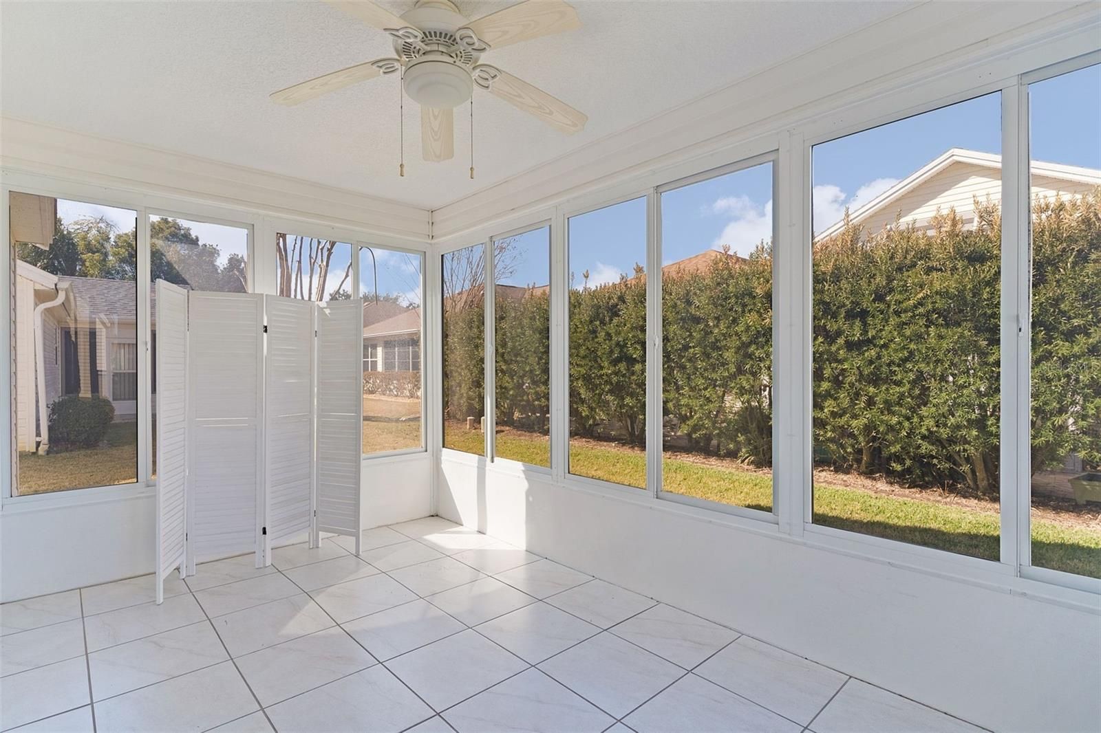 ~NO BOND~ ~2022 ROOF~ ~2019 HVAC~ ~2022 HOT WATER HEATER~ ~ENCLOSED LANAI~ Welcome to your dream home in the desirable Village of GLENBROOK! This beautifully maintained CALHOUN model offers the perfect blend of comfort, style, and peace of mind. Enjoy a backyard featuring a lush privacy hedge—ideal for entertaining guests or relaxing during a quiet evening at home. Inside, HIGH, VAULTED CEILINGS create a bright, open feel, enhanced by 2 SOLAR TUBES that flood the entry and living area with natural light. The entry features CERAMIC tile, while the living and dining areas showcase durable LAMINATE flooring. The kitchen also offers CERAMIC tile flooring, laminate countertops, a tile backsplash, and a functional layout perfect for everyday living. The spacious primary suite features carpet, his-and-her WALK-IN CLOSETS, and an EN-SUITE bath with CERAMIC tile flooring, a tile walk-in shower, and DUAL SINKS with laminate countertops. The guest bedroom includes carpet and a walk-in closet, while the guest bath offers CERAMIC tile flooring, a tub/shower combo and laminate counters. Relax year-round in the ENCLOSED LANAI with CERAMIC tile flooring, seamlessly extending your living space and bringing the outdoors in. An INSIDE LAUNDRY ROOM with laminate flooring adds convenience. This home checks all the boxes—minutes from Glenview Country Club, Savannah Center, and numerous Recreation Centers and Executive Golf Courses. It is a short golf cart ride to both Spanish Springs and Lake Sumter Landing. An abundance of shopping, dining and medical along CR 466 is all at your fingertips.