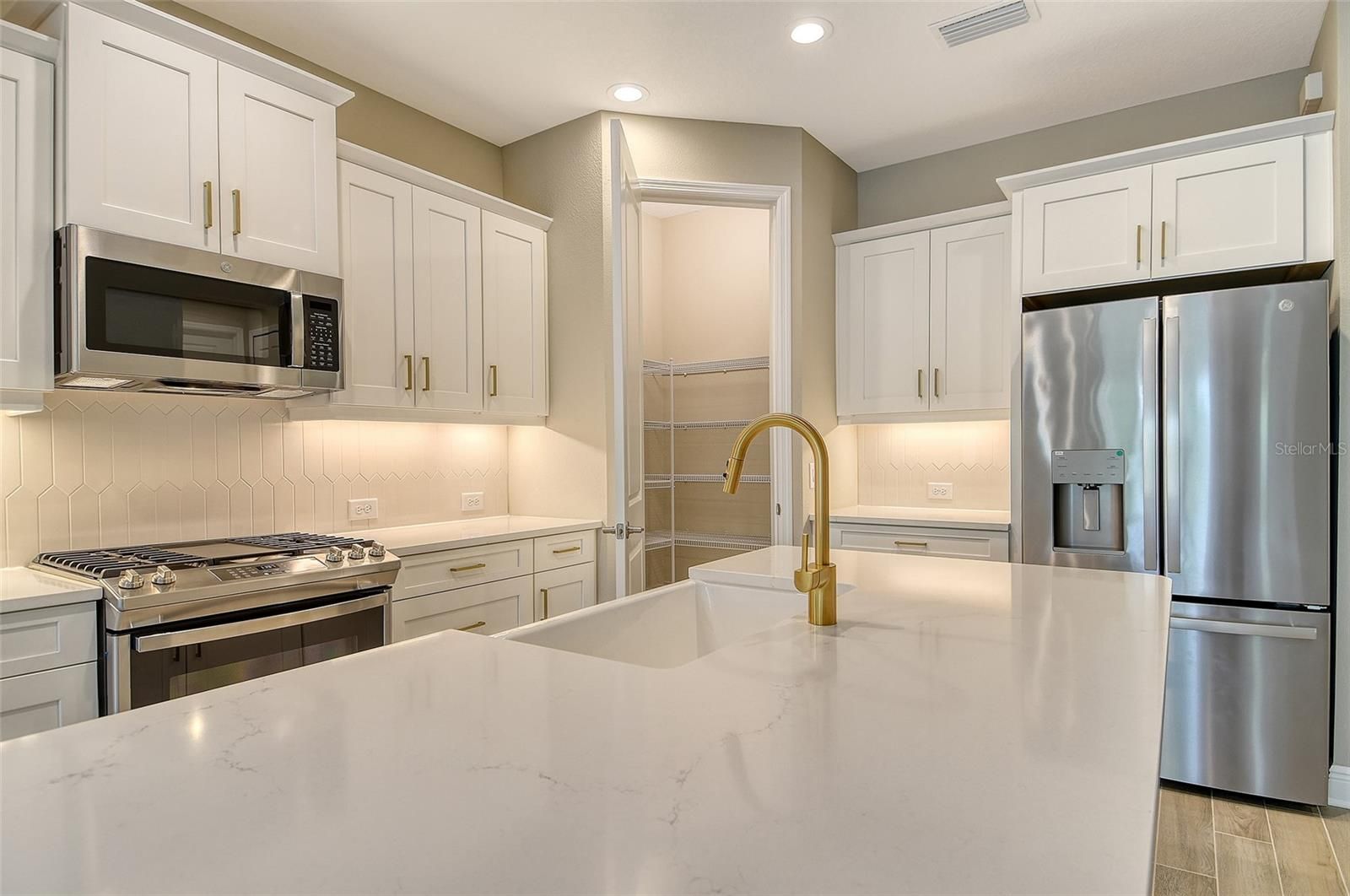 This upgraded Tidewinds 2 villa offers the perfect blend of style and functionality. The kitchen features white cabinets, quartz countertops, and a large island—ideal for entertaining. The primary suite includes dual closets and split vanities for added convenience. A pocket sliding glass door opens the great room to a spacious, covered, and screened lanai, perfect for indoor-outdoor living. Impact windows and smart home features provide peace of mind. Lawn maintenance and community amenities are included in the low HOA.
