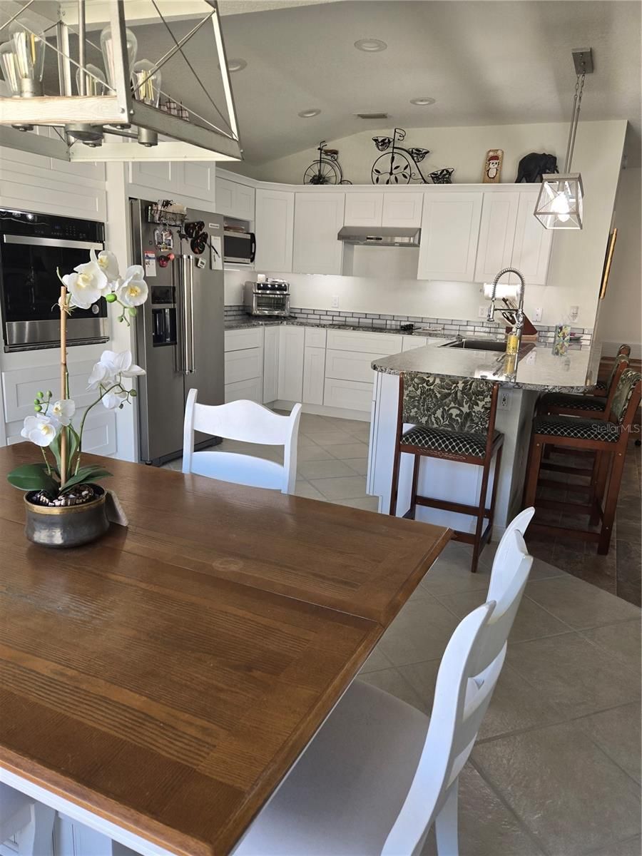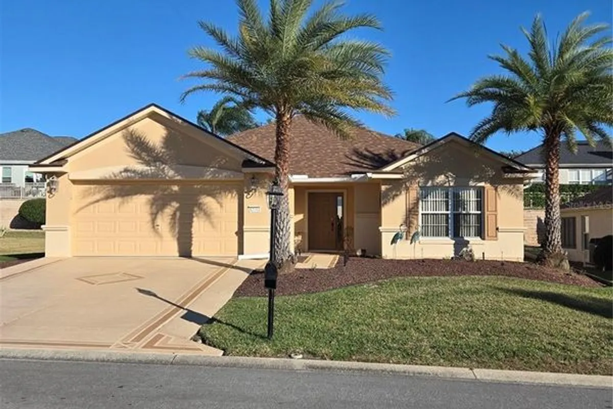 Located in the desirable Del Webb Spruce Creek Golf & Country Club in Summerfield, this extensively updated expanded Citation Model combines quality craftsmanship with thoughtful design. Surrounded by scenic golf views, ponds, and tree-lined streets, the community sets the tone for relaxed, active living. Inside, the home offers 2 bedrooms, 2 bathrooms, a den, and an added 10' x 15' flex room that includes a 9-foot closet along with built-in cabinetry and countertops, providing valuable additional living space perfect for work or creative pursuits. Natural light fills the home, enhancing the open and inviting layout. 2025 Roof, 2021 A/C. The fully remodeled kitchen features 23 solid wood cabinets, a generous 10.5-foot granite breakfast bar, specialty cabinetry, two pantries, and a built-in work desk. Under-cabinet and upper cabinet lighting add warmth and sophistication, making this kitchen both practical and impressive. Designed for entertaining, triple sliding glass doors lead to a screened lanai, while an additional set of quadruple sliders opens to a spacious 29’ x 18’ poured concrete patio. Surround sound in the common areas adds to the entertainment appeal. Recent improvements include gutters, garage door opener, and bottom garage seal installed in 2025, along with a whole-house water filtration system and electrical surge protection. The garage also features a dedicated dog wash station, and the landscaping has been thoughtfully designed for low-maintenance upkeep. With quality upgrades throughout and meticulous care evident in every detail, this home offers comfort, functionality, and peace of mind in one exceptional package.
