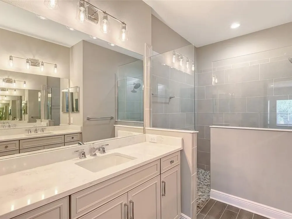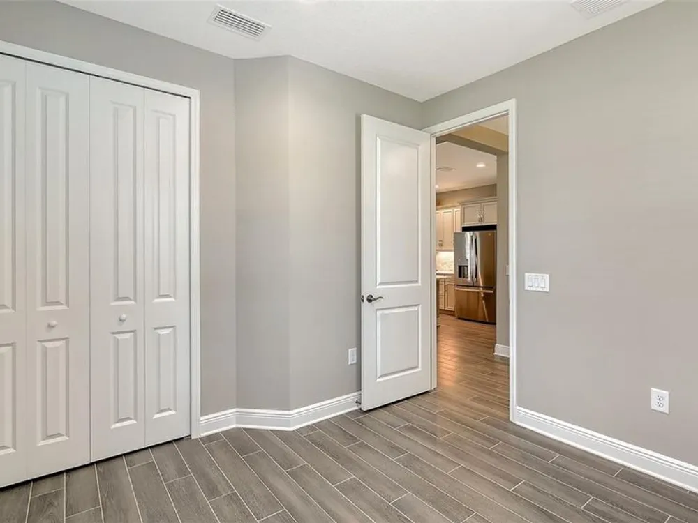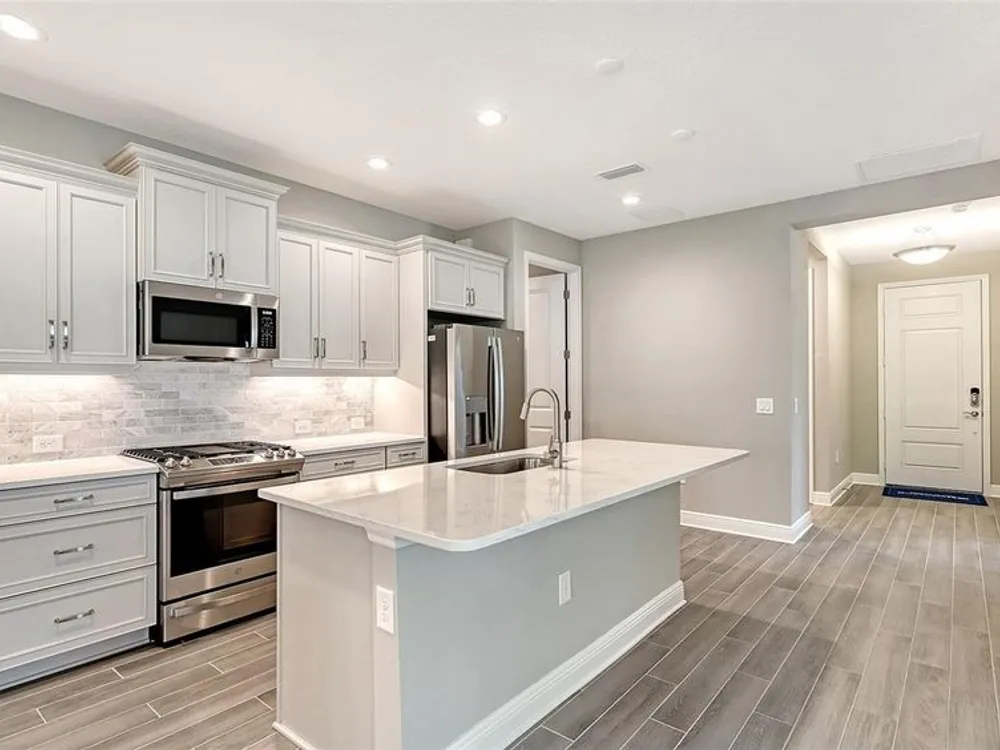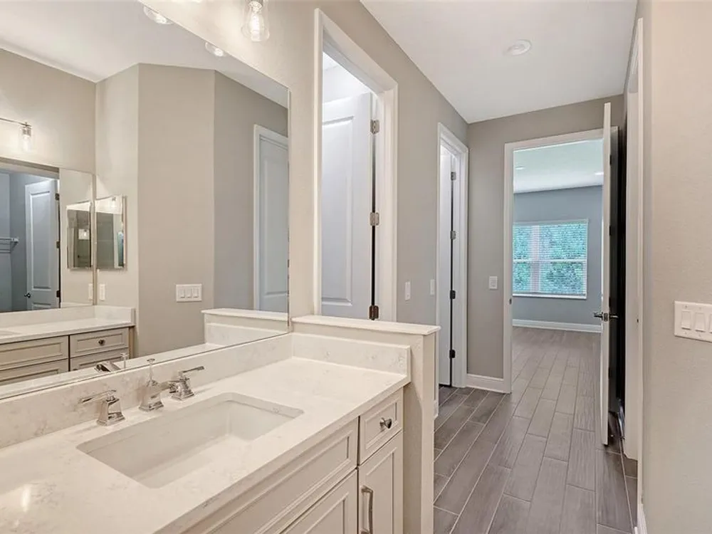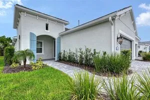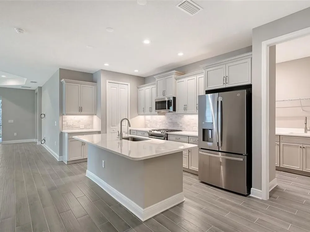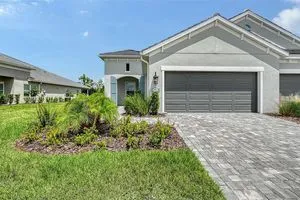 Step into this bright and spacious Sandcastle 2, where thoughtful design and modern upgrades create a welcoming retreat. Featuring wood-look tile flooring throughout, 8’ interior doors, and 9'4" ceilings, this home feels open, airy, and full of natural light. The upgraded kitchen is perfect for entertaining, complete with white cabinetry, quartz countertops, and a large center island that serves as the heart of the home. The owner’s suite offers both comfort and convenience, with a generous walk-in closet and split vanities in the en-suite bath. A pocket sliding glass door seamlessly connects the great room to a large, covered, and screened lanai, creating the ideal space for indoor-outdoor Florida living. Additional features include impact-resistant windows and smart home technology, providing security and peace of mind. Lawn maintenance and resort-style amenities are included in the low HOA fee. Located in the amenity-rich, natural gas community of Grand Palm, just minutes from Downtown Venice, Wellen Park, Gulf beaches, and I-75—this home combines luxury living with an unbeatable location.