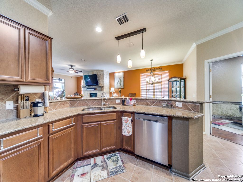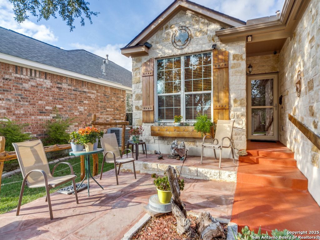 Lovely and immaculate low-maintenance 3 bedroom/2 bath PLUS STUDY for the price of a 2 bedroom/2 bath in the exclusive over 55 Far-West San Antonio Community of Del Webb's Hill Country Retreat. So many upgrades and amenities - from the beautiful rock fireplace to the incredibly useful rack storage in the garage! This is a healthy/active homeowner's dream and neighbors out walking are welcome to stop for a visit at the tiered custom front flagstone patio. Yet privacy awaits on the back covered patio that stretches along of the back of the home against a lovely rock wall with blooming flowerbeds. This flowing floorplan offers an open kitchen and upgracurved breakfast bar adjoinging the dining room and the living room. Paid-off solar panels make this a low utility property, An incredible water filtration system offers pure, healthy water right at your fingertips. Quality furnishings can convey with an acceptable offer for an easy, quick move-in. Hill Country Retreat includes a 28,000 square-foot clubhouse, aptly named "The Resort" with a state-of-the-art fitness center and an indoor pool with lap lanes. Outdoor amenities include pickleball, tennis and bocce ball. New HVAC in 2025 and so much more- come see the lifestyle you have waited your whole life for!