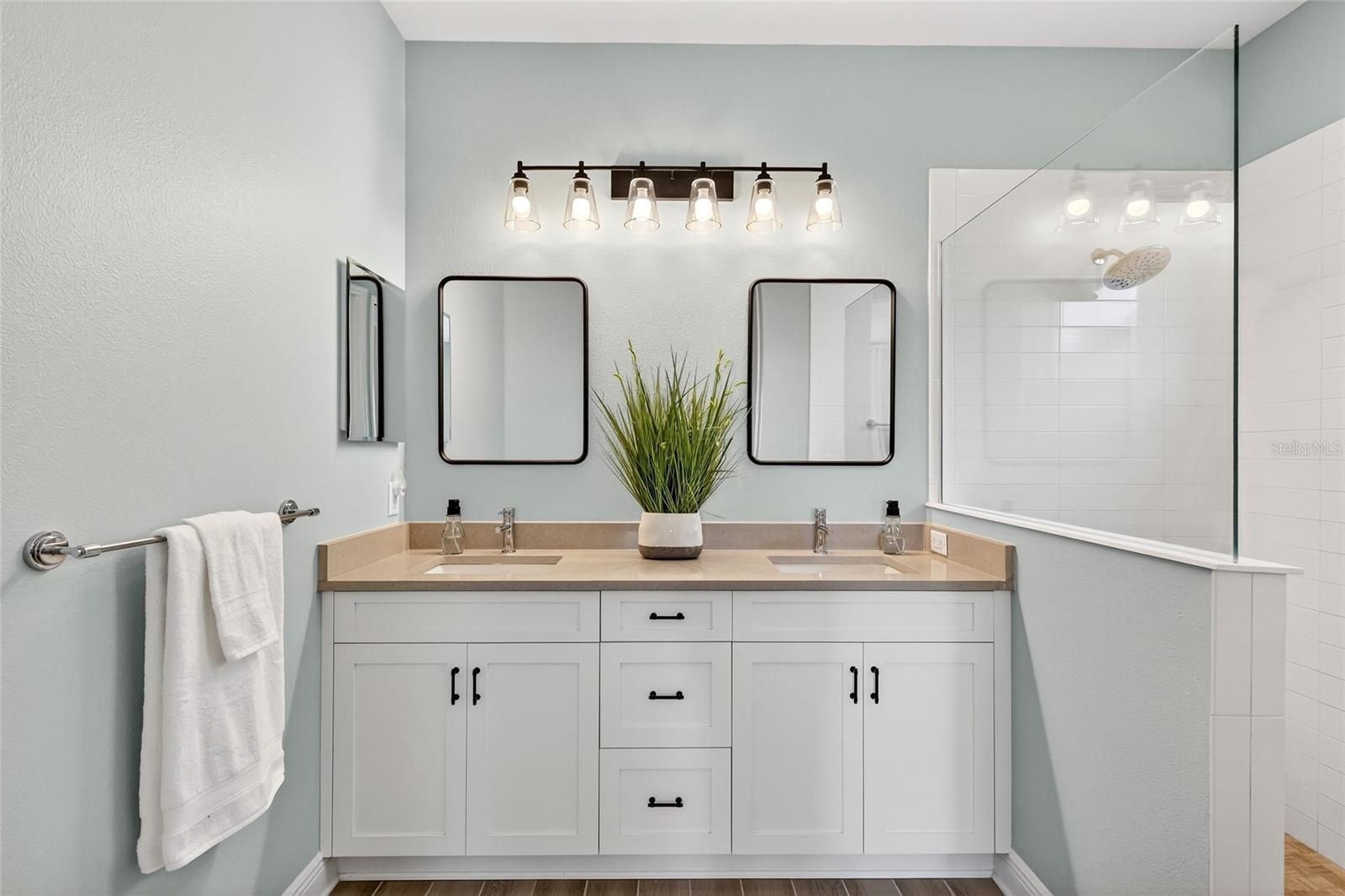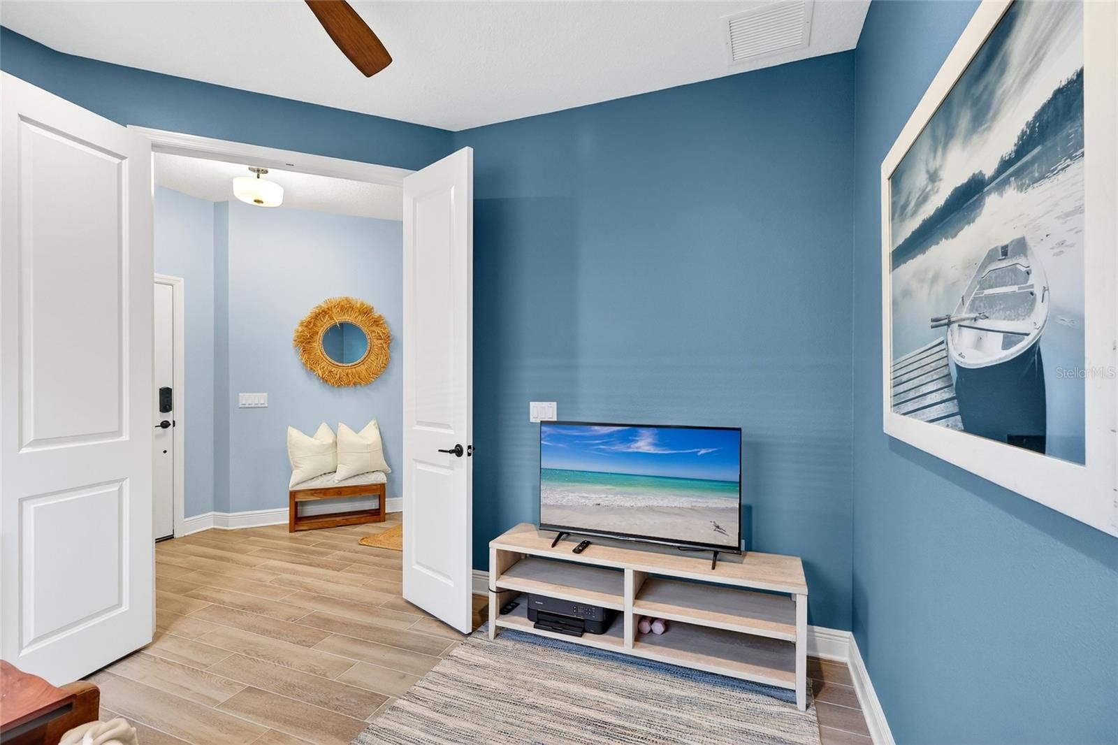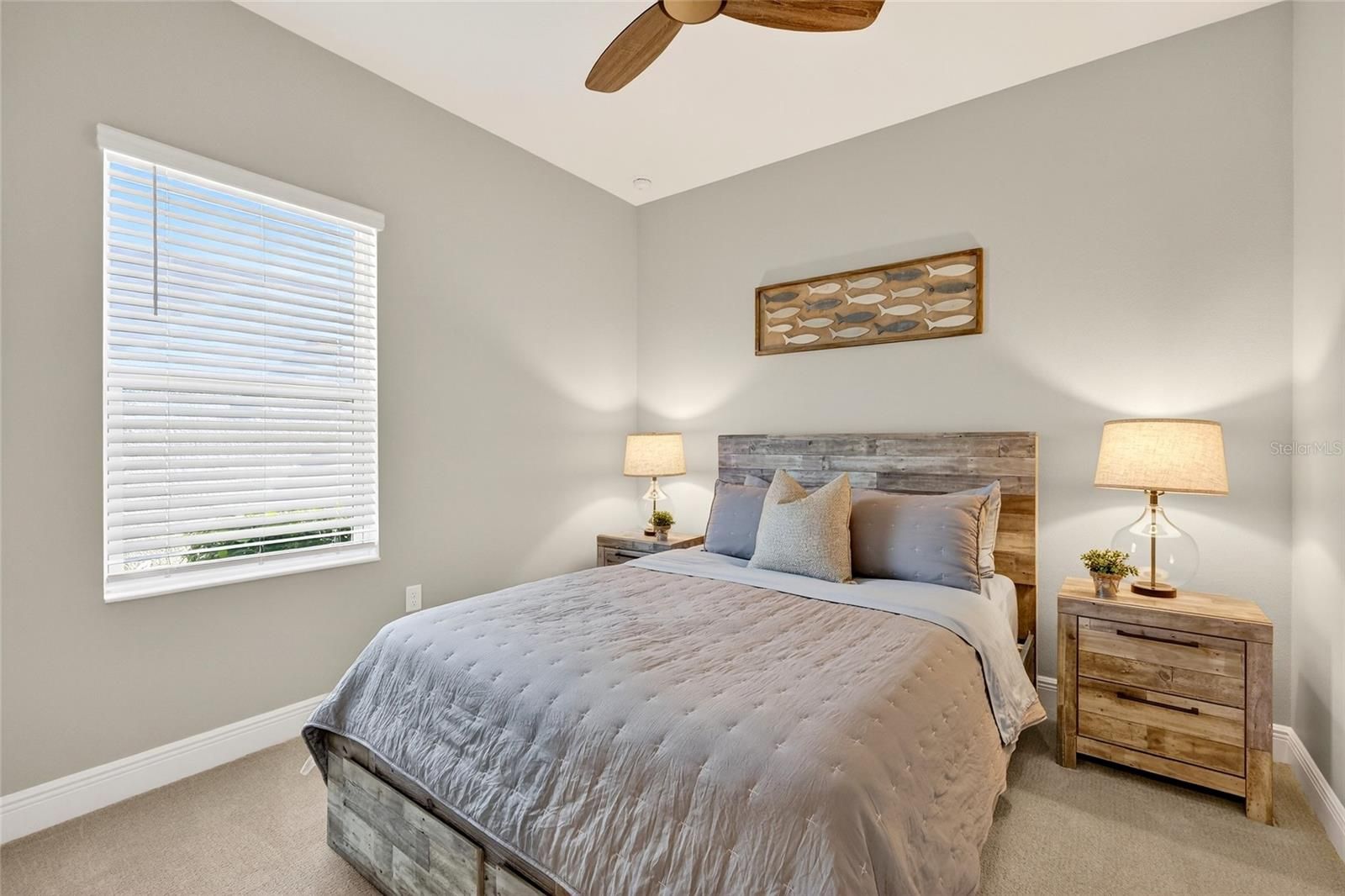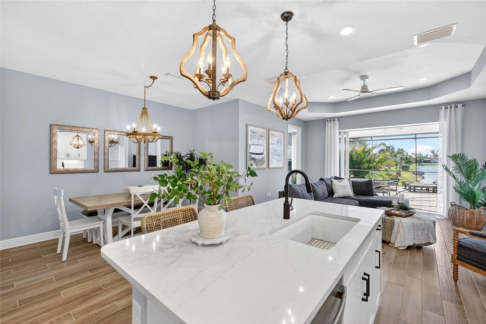 This 3-bedroom, 2-bath home with a den offers a pool, a water view, and standout storm protection with impact windows and doors plus automated hurricane screens on the covered lanai. Enjoy an easy indoor-outdoor layout with a pocket sliding door that opens wide to the lanai and view. The kitchen is finished with quartz countertops, stainless appliances, an island, a single-basin undermount sink, upgraded pendants and chandelier, and a custom pantry. Inside, wood-look tile flooring pairs with tray ceiling detail, quartz countertops throughout, and upgraded carpet in the bedrooms. The primary suite includes a barn door and a custom walk-in closet. Comfort and efficiency upgrades include a smart thermostat, UV light in the furnace, and spray foam insulation. Outdoors, the pavered lanai is set up for an outdoor kitchen with pre-plumb, complemented by the pool and water view, plus a Google Nest doorbell. The laundry room includes added cabinetry, and the garage features epoxy floors. HOA COVERS: Lawn care, Swimming Pool and Spa, Fitness Center, Clubhouse with Catering Kitchen, PickleBall, Bocce Ball, Manager, Onsite Activities Director, Security Gates. LOCATION: Centrally located. Just outside the gates are A+ schools, Gullett Elementary, Lakewood Ranch High School, and Mona Jain Middle School, LECOM, & Manatee Tech East Campus. Minutes to shopping, restaurants, gyms, salons, bars, etc. Minutes to downtown, Sarasota International Airport, the top rated beaches in the country, UTC Shopping.