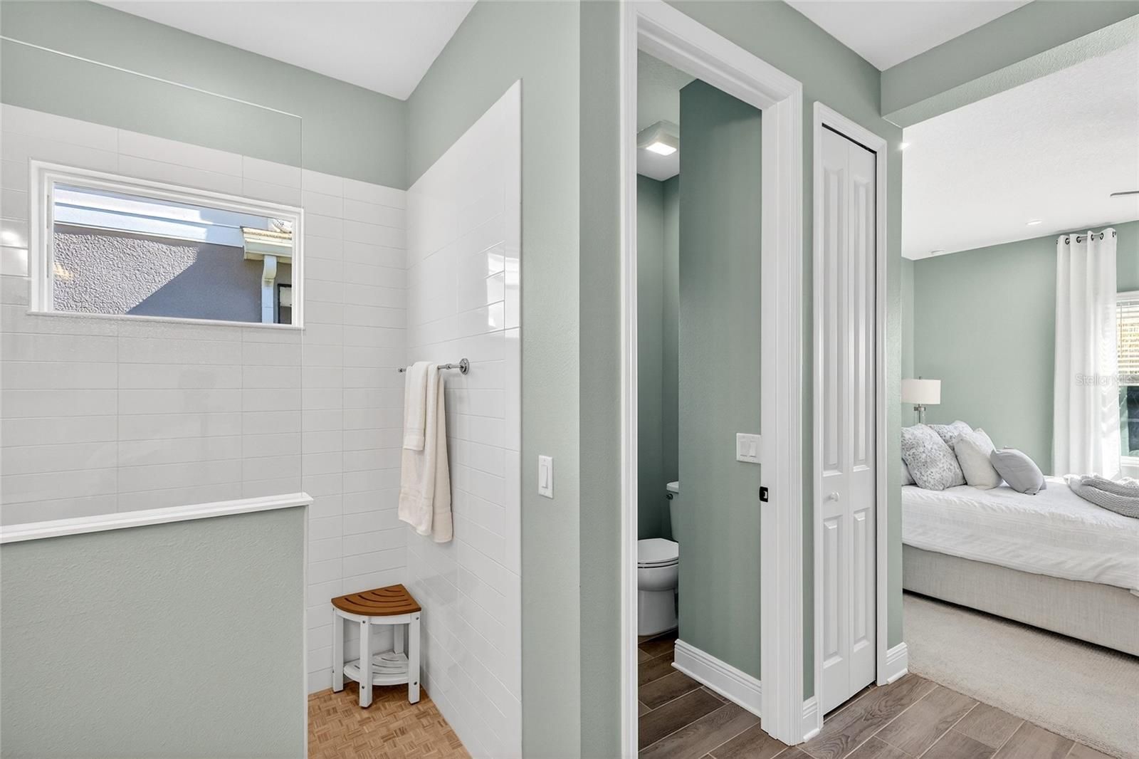 - Ceiling Fan(s), Crown Molding, Eat-in Kitchen, High Ceilings, Kitchen/Family Room Combo, Living/Dining Room, Open Floorplan, Main Level Primary, Stone Counters, Thermostat, Tray Ceiling(s), Walk-In Closet(s)