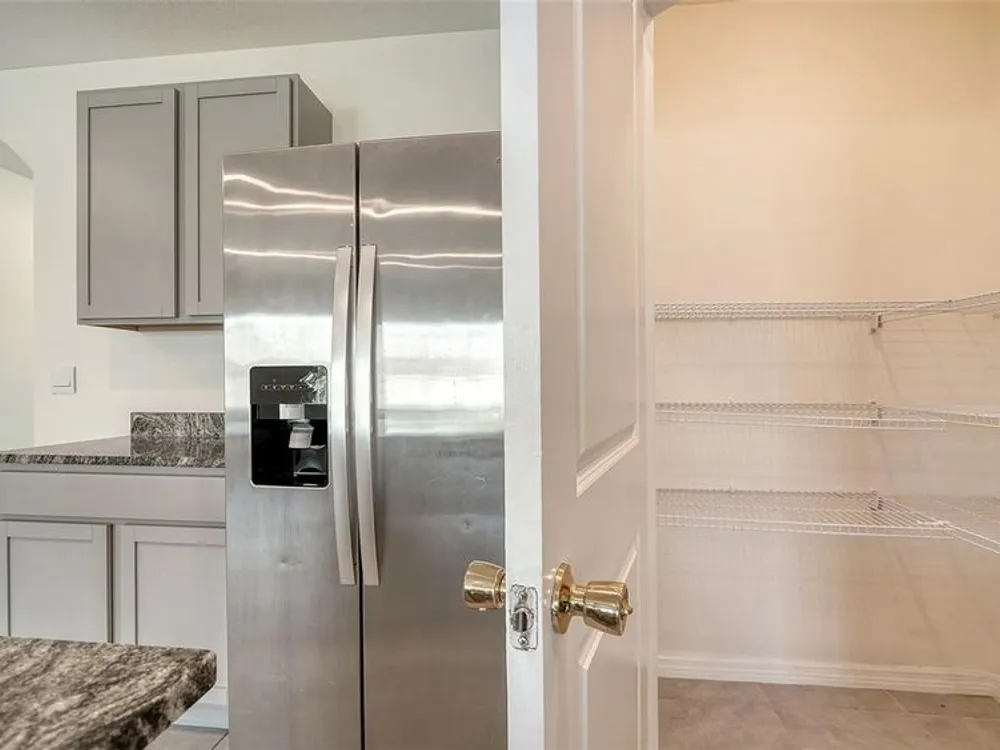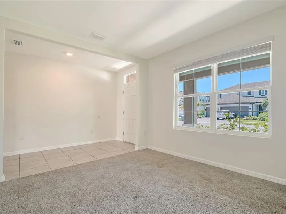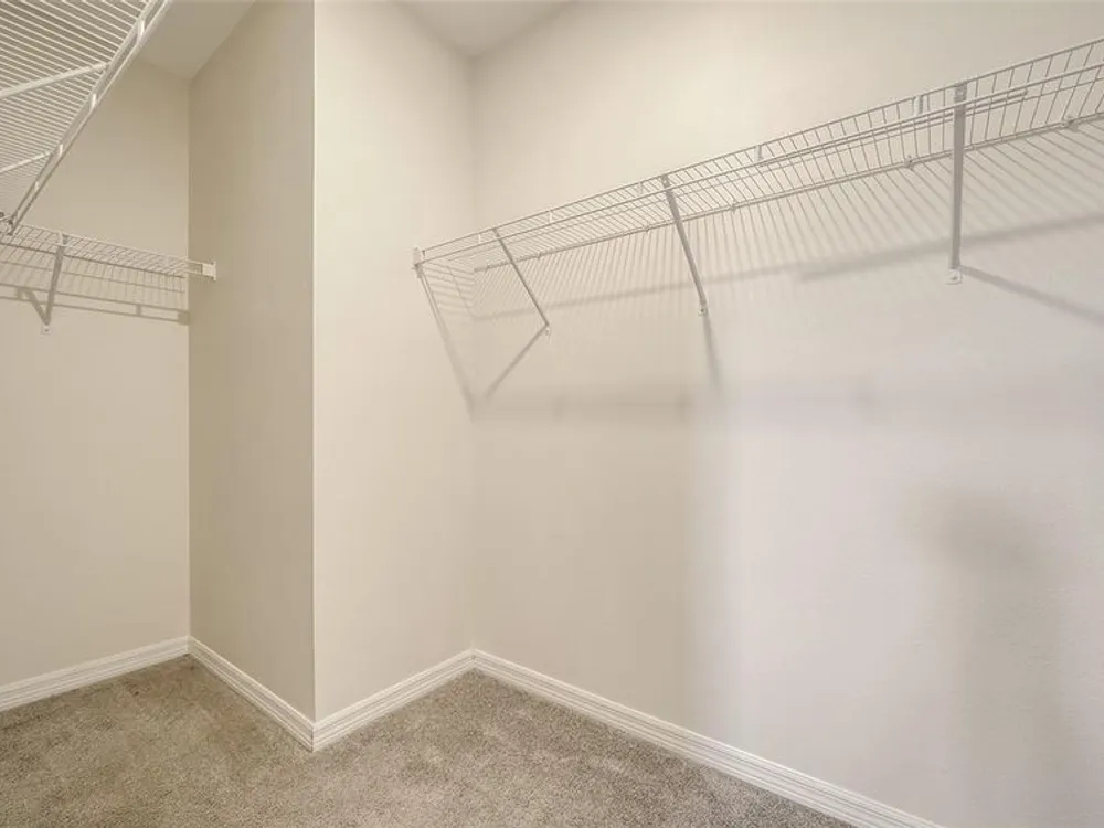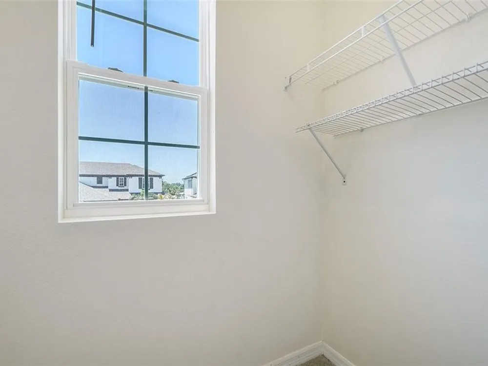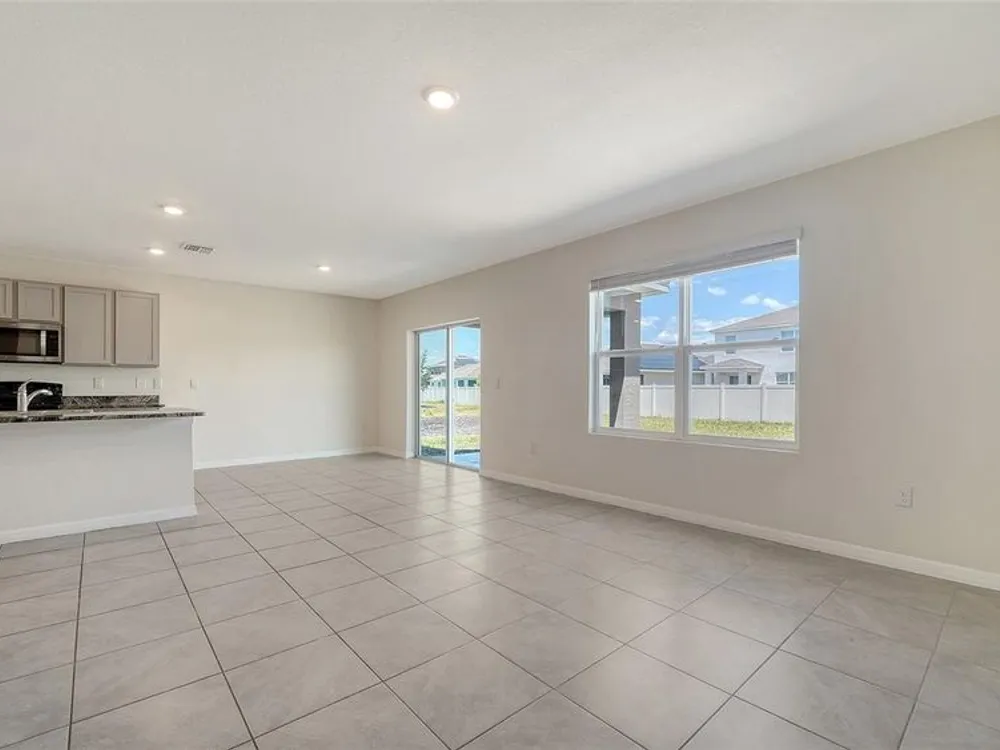 - Living/Dining Room, Open Floorplan, Stone Counters, Thermostat, Walk-In Closet(s), Window Treatments
